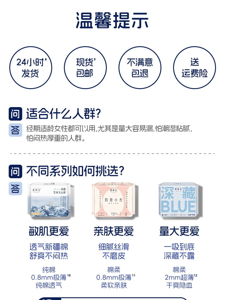 她研社卫生巾奶滑小方/雪域天山棉/深藏BLUE