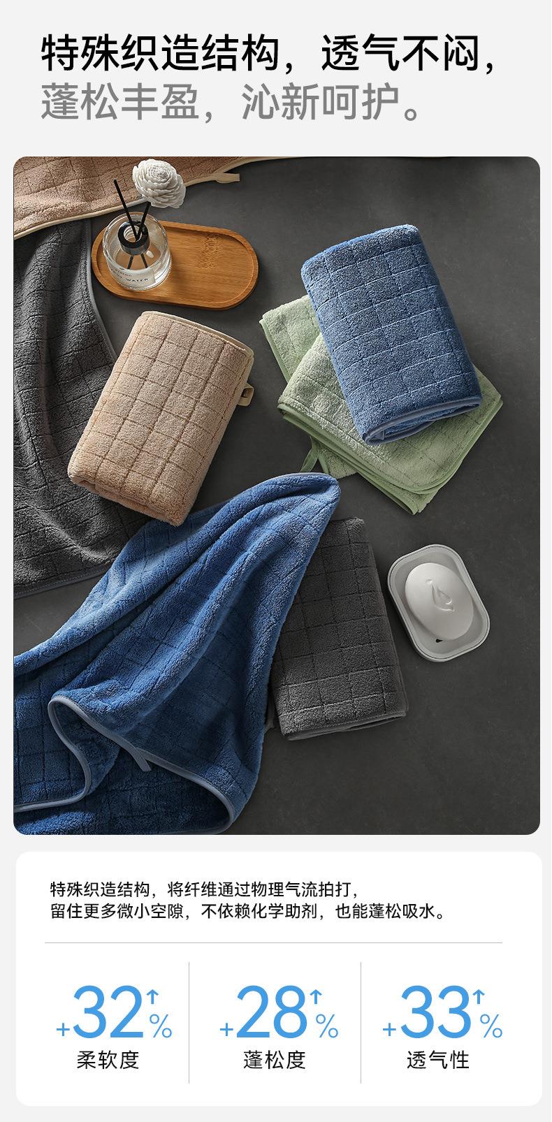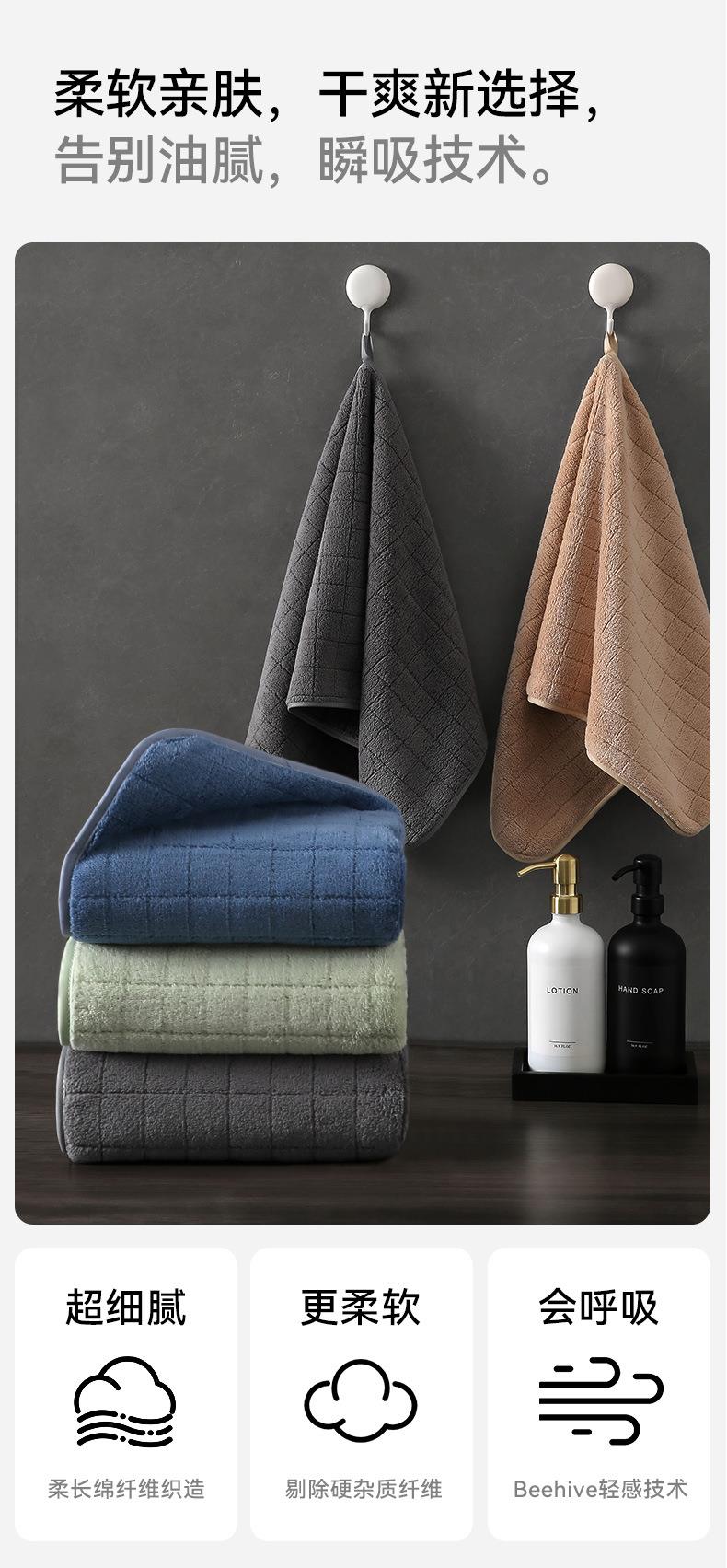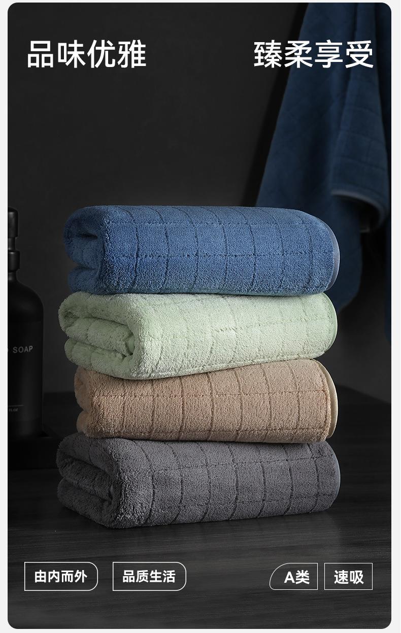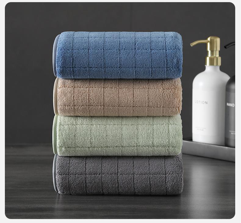 三利毛巾珊瑚绒毛巾成人洗脸巾柔软吸水干发巾家用洗澡巾方格面巾