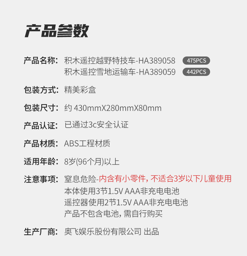 奥迪双钻积木遥控雪地运输车 HA389059