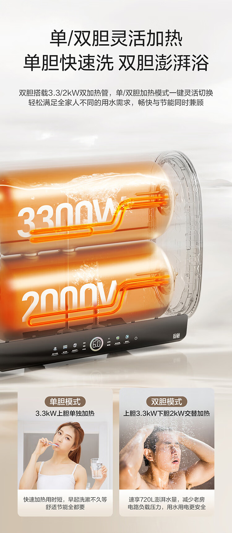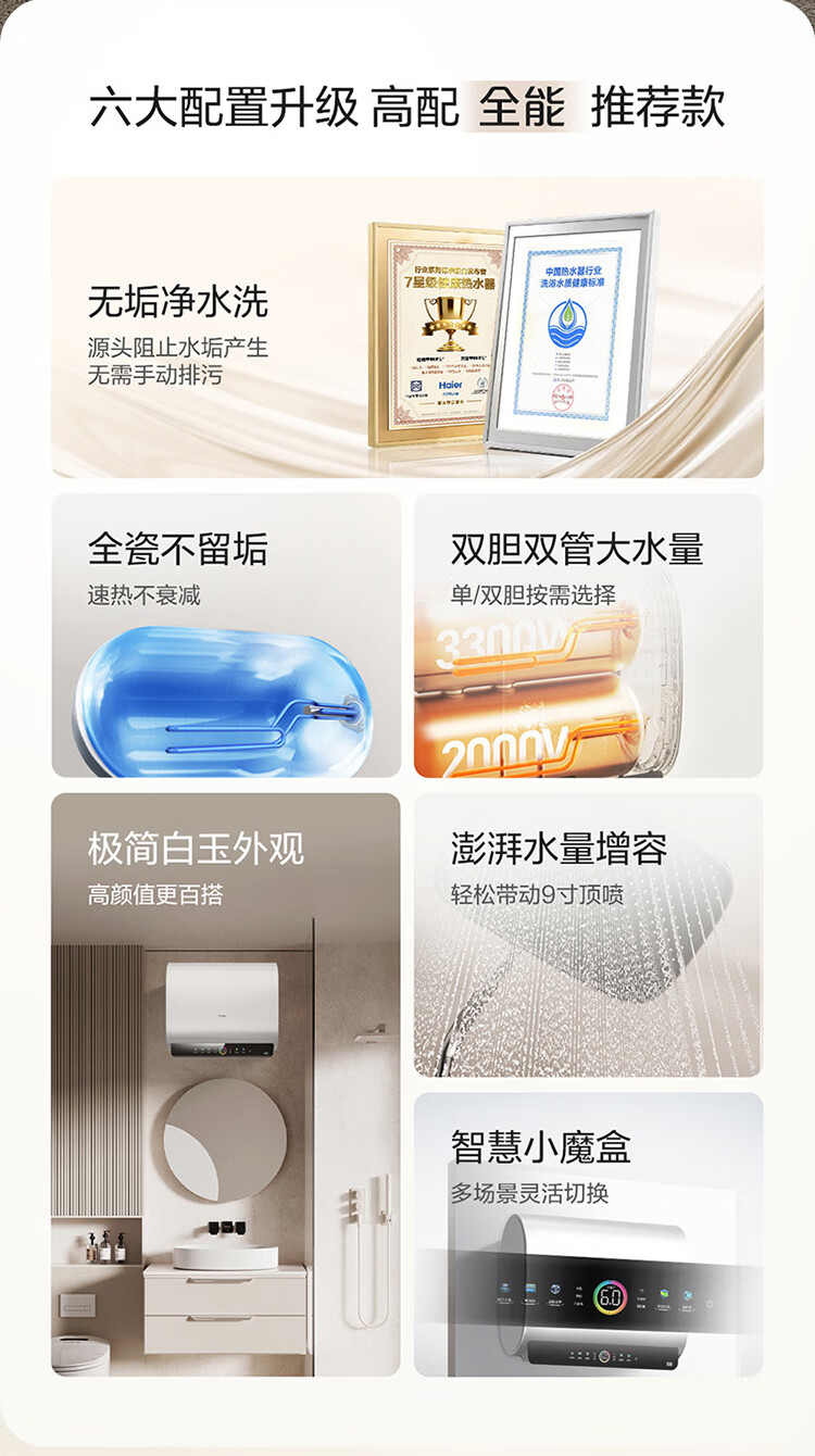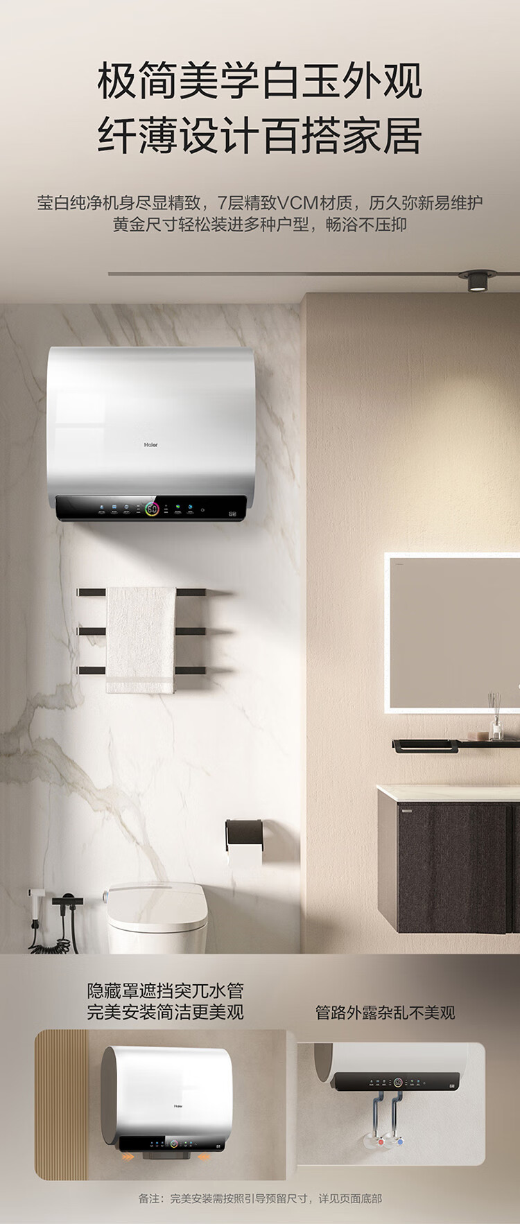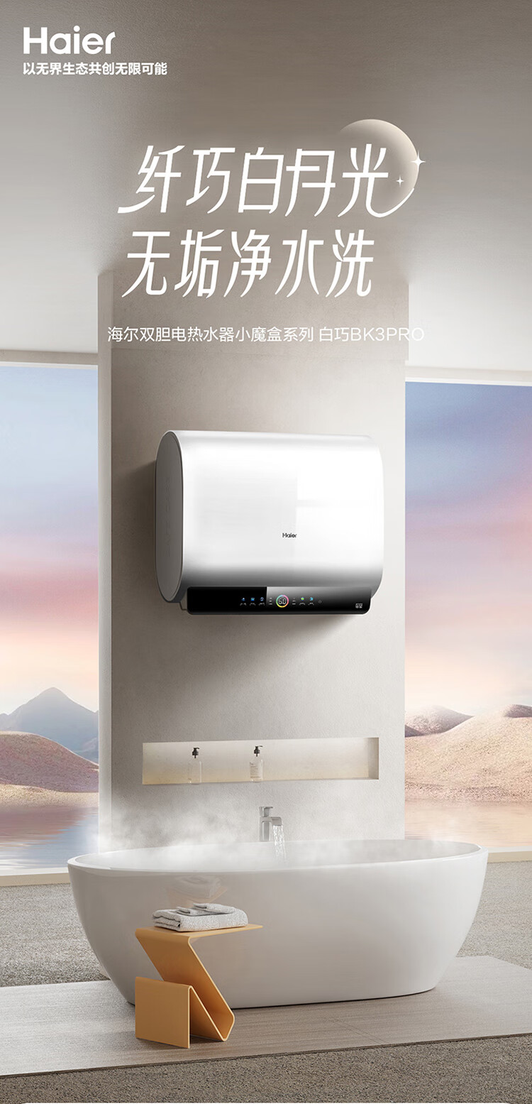 海尔(Haier)80升小魔盒BK3pro双胆扁桶鲜活水免清洗镁棒免更换电热水器3300W一级能效BK3PRO