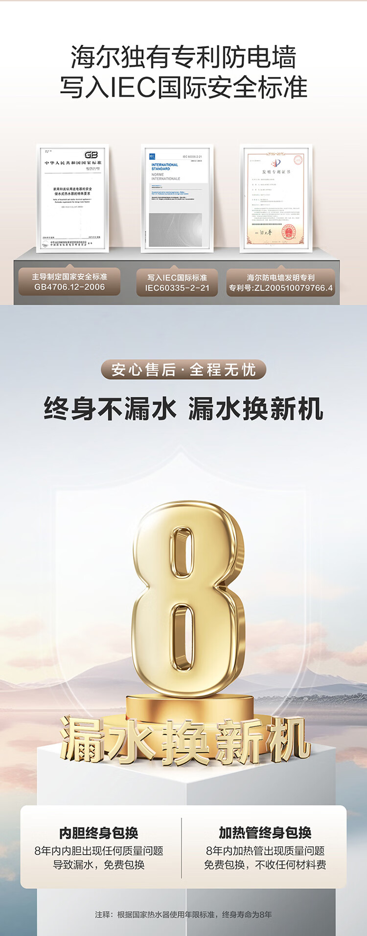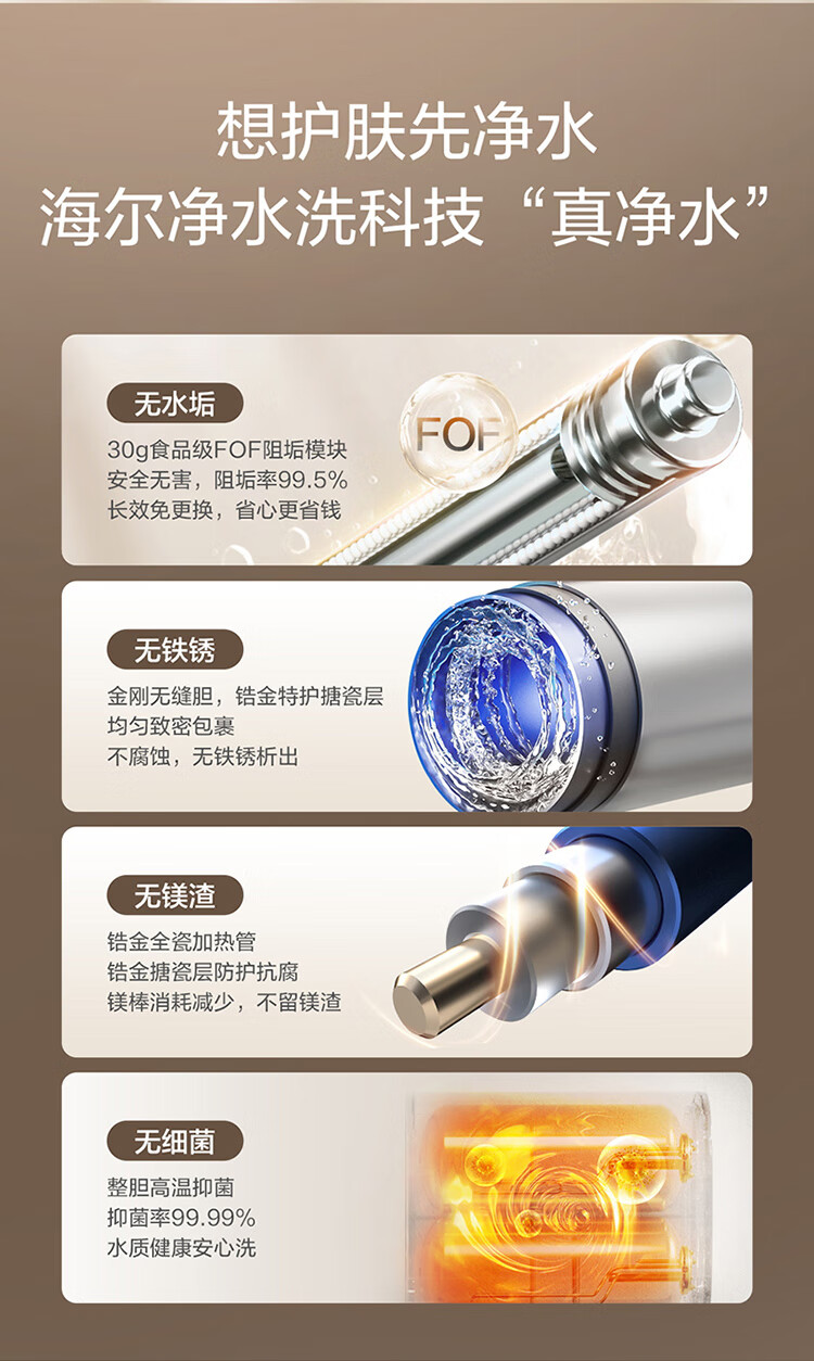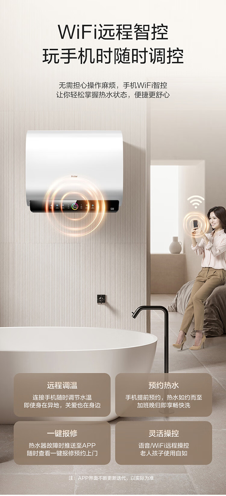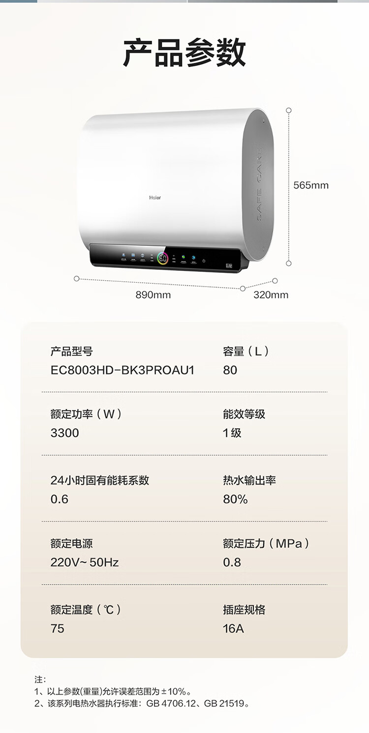 海尔(Haier)80升小魔盒BK3pro双胆扁桶鲜活水免清洗镁棒免更换电热水器3300W一级能效BK3PRO