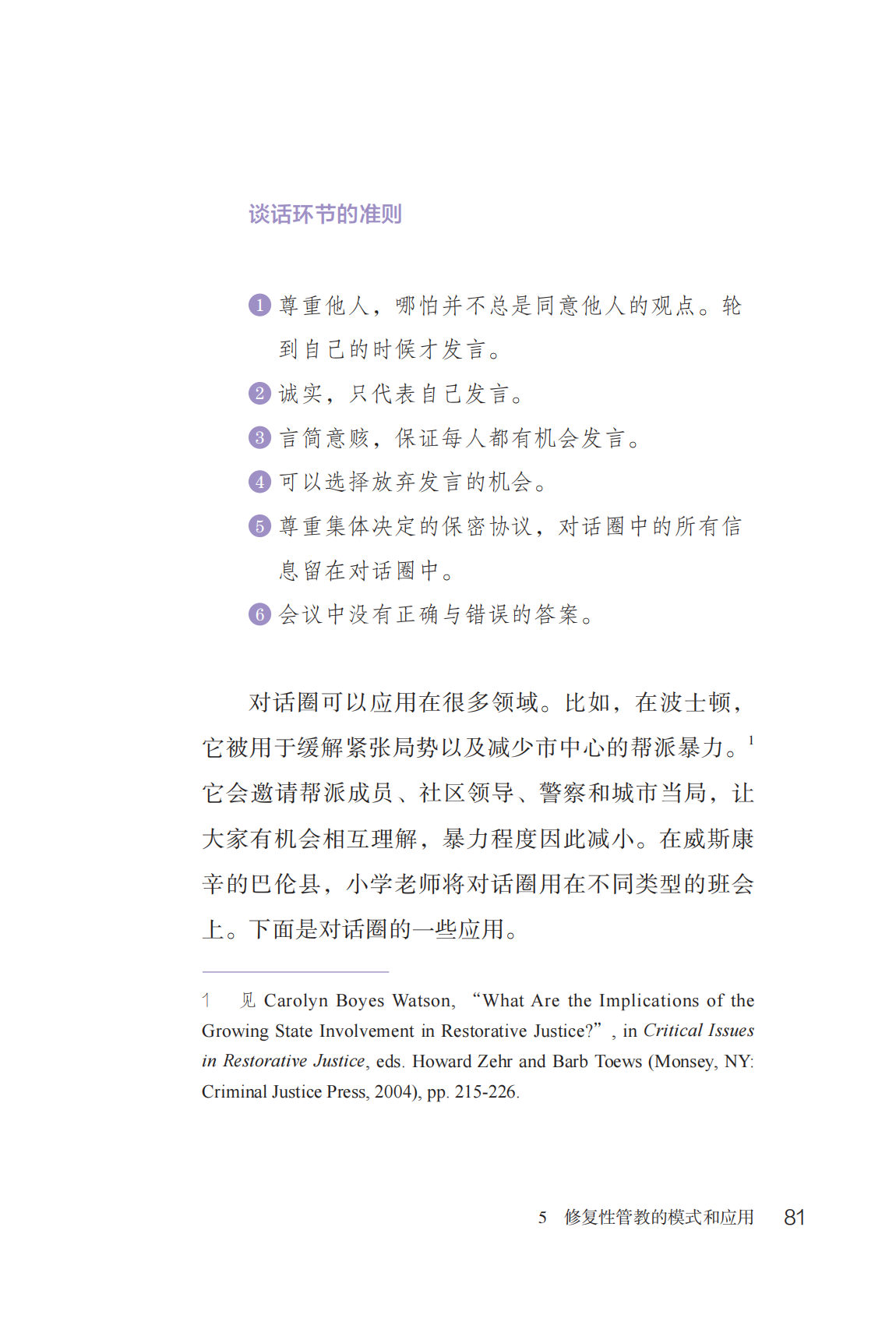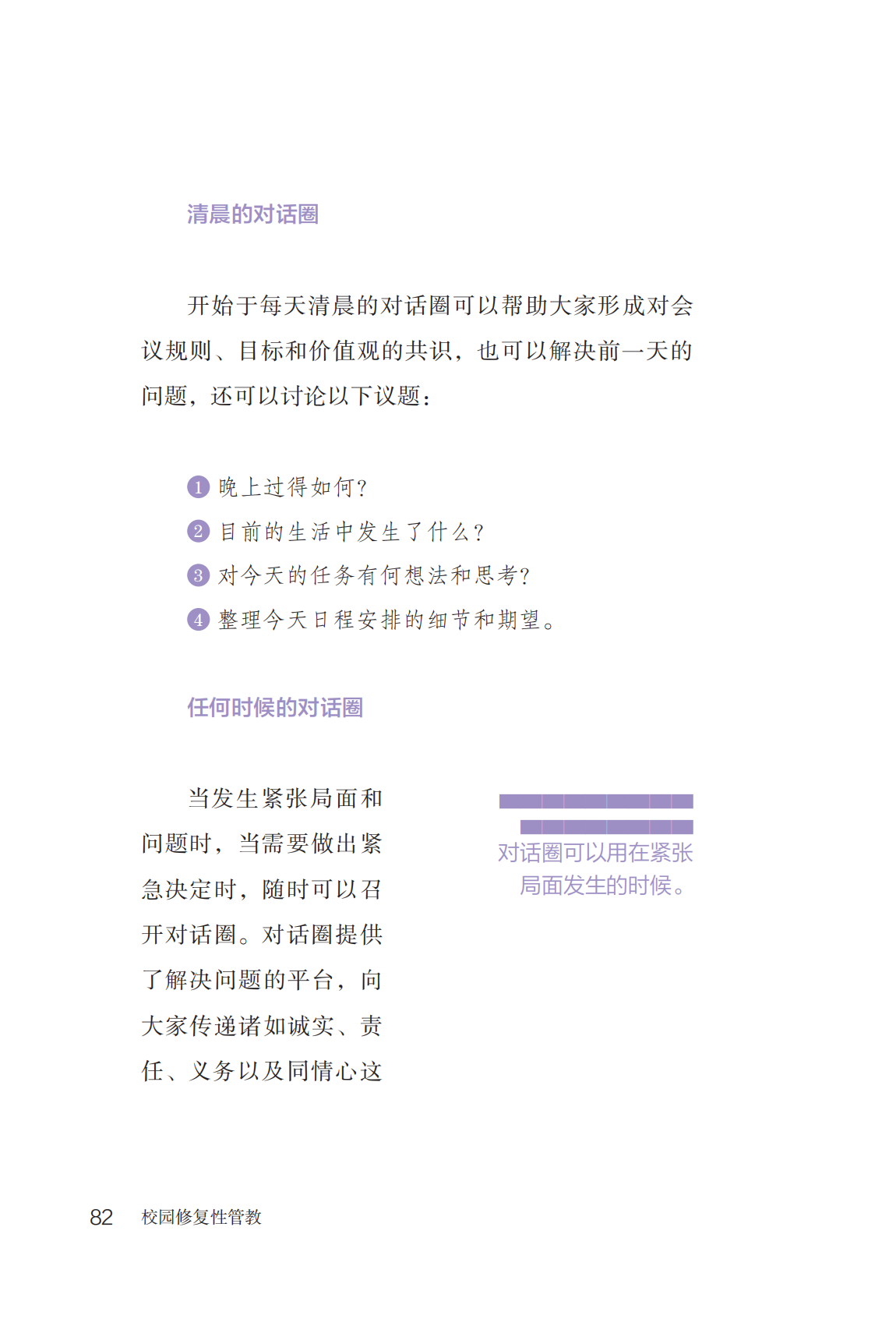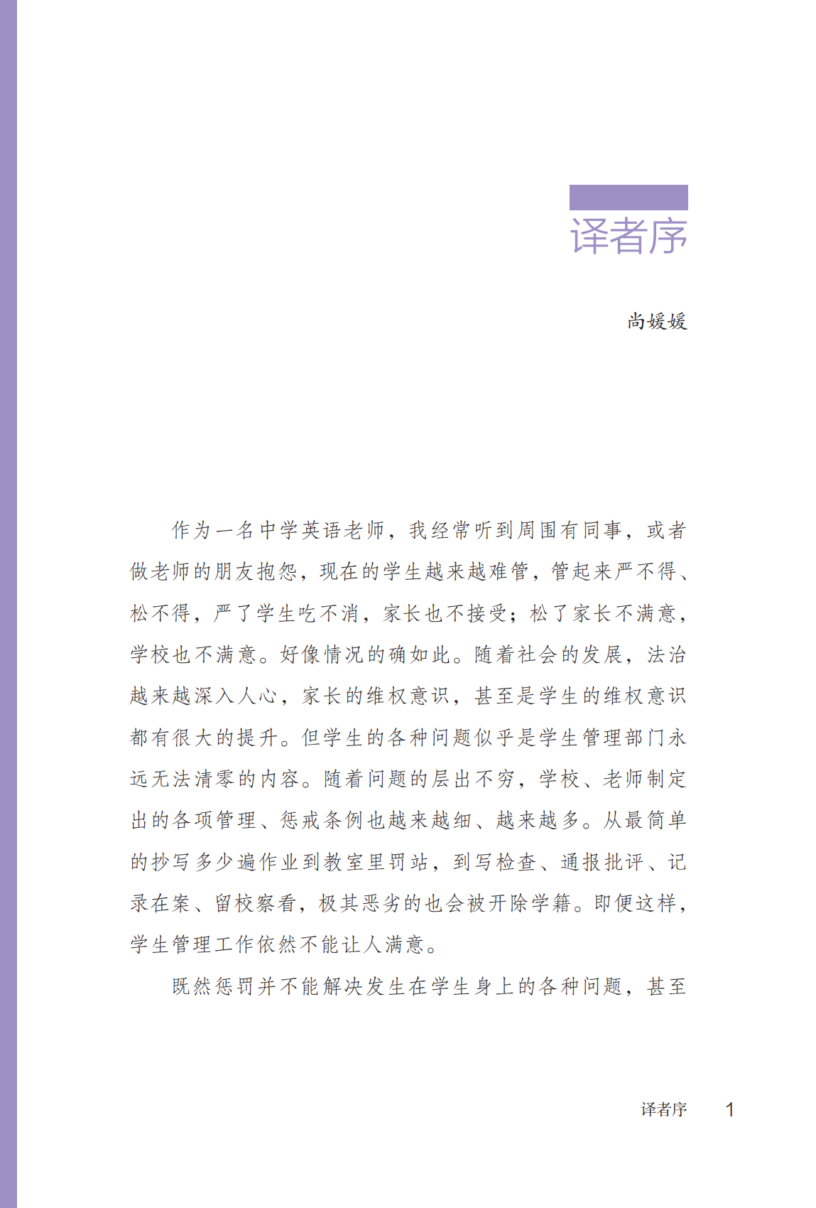 制定什么样的学校管教措施、遵循什么样的原则、基于什么样的价值观,可以帮助学生、家长和老师共同面对孩子成长过程中不可避免的问题,促进共同进步呢?本书从将校园修复性正义作为一种思想体系和准则,指导学校教师和管理者在共情、包容、理解的基础上,运用不同形式的修复性管教措施,阻止并预防孩子们的不当行为,同时联合家长、社区帮助孩子学会自我管理、善待他人、培养责任感,以便其将来能更好地学习、生活和成长。本书不仅全面介绍了什么是校园修复性管教,还提供了一些可以直接运用的修复性模式和方法,有利于教育工作者根据学校和学生的特点创建“和平课堂”。本书适合教育工作者、家长和学生共同阅读,携手共建和平校园。