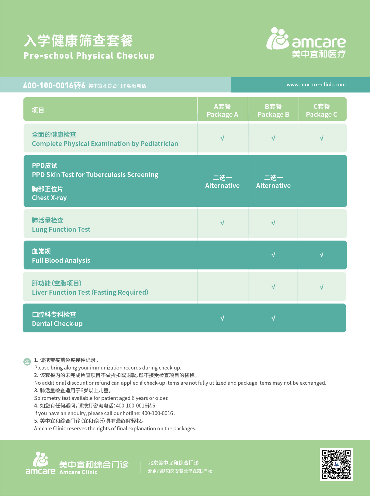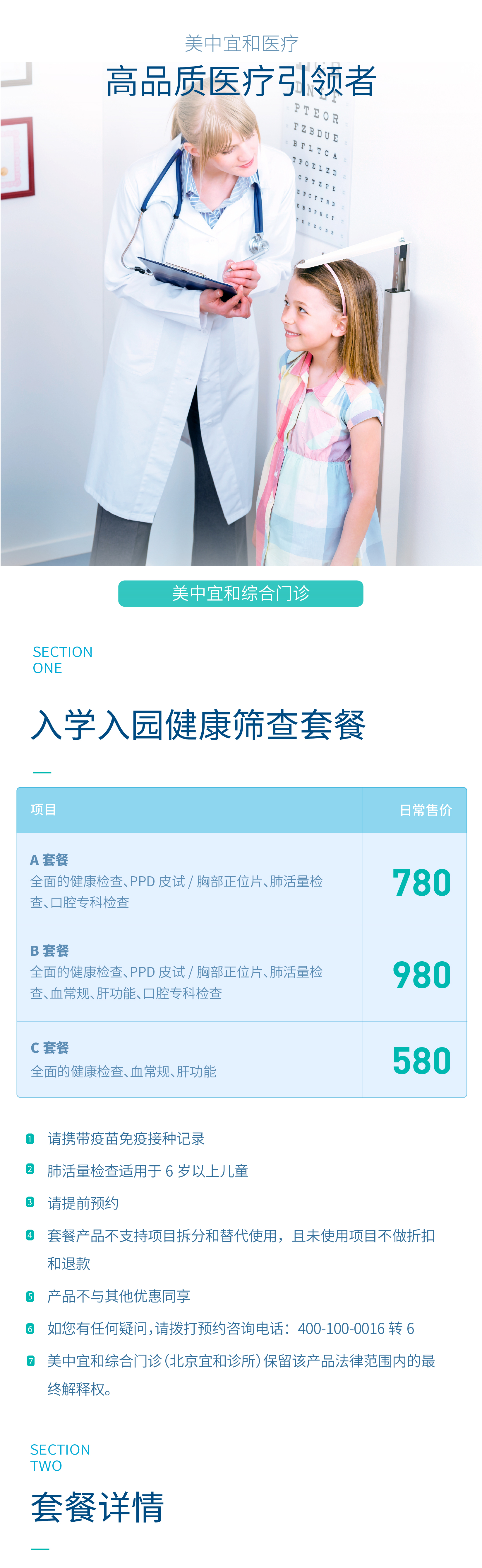 入学入园健康筛查B套餐(适用于北京美中宜和门诊部)