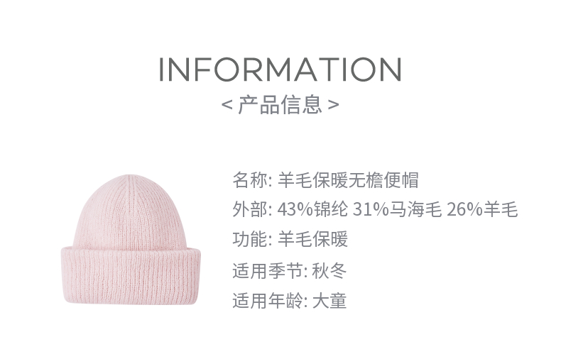 reima女孩儿童大童帽子秋冬新款羊毛保暖洋气可爱休闲针织帽
