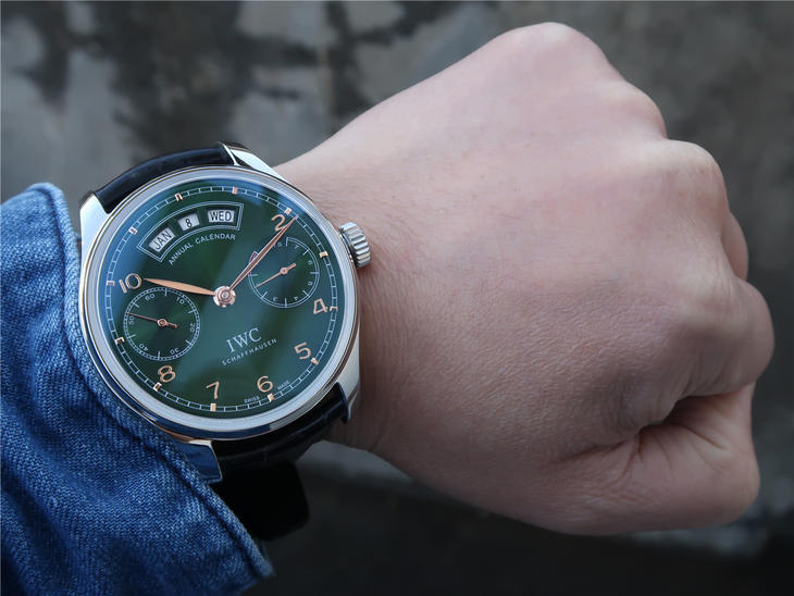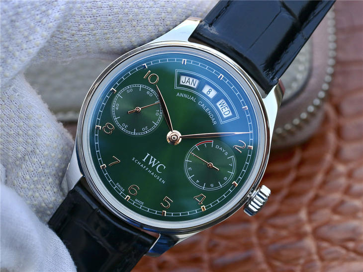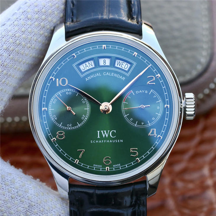 万国葡萄牙万年历腕表系列 镜面为双面防反光拱形边缘蓝宝石玻璃表镜,夜蓝色的表盘。年历的显示设计简洁利落,以三个独立的半圆形 整个手表基于正品original原版开模的super copy版本‼️‼️