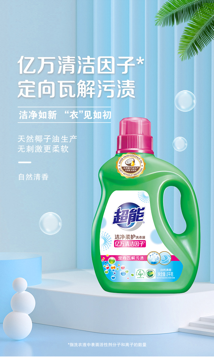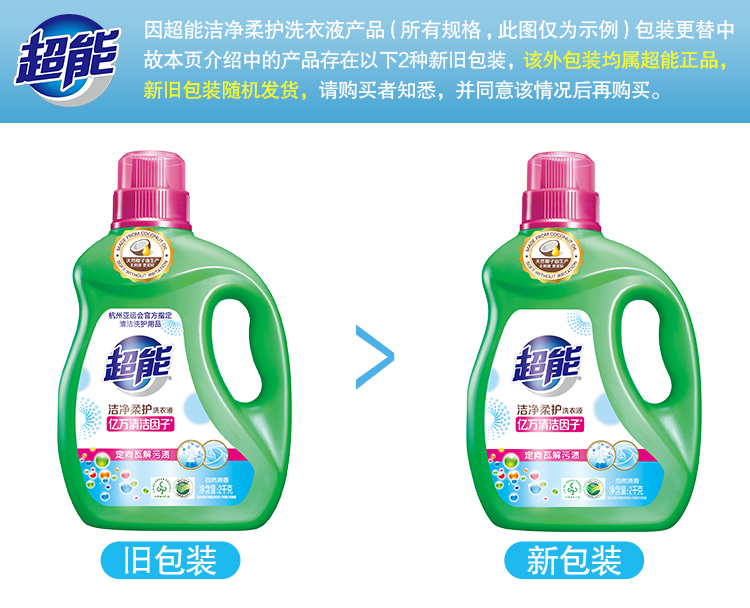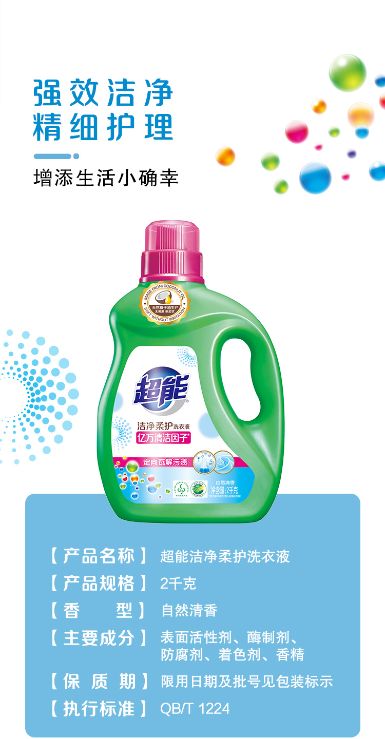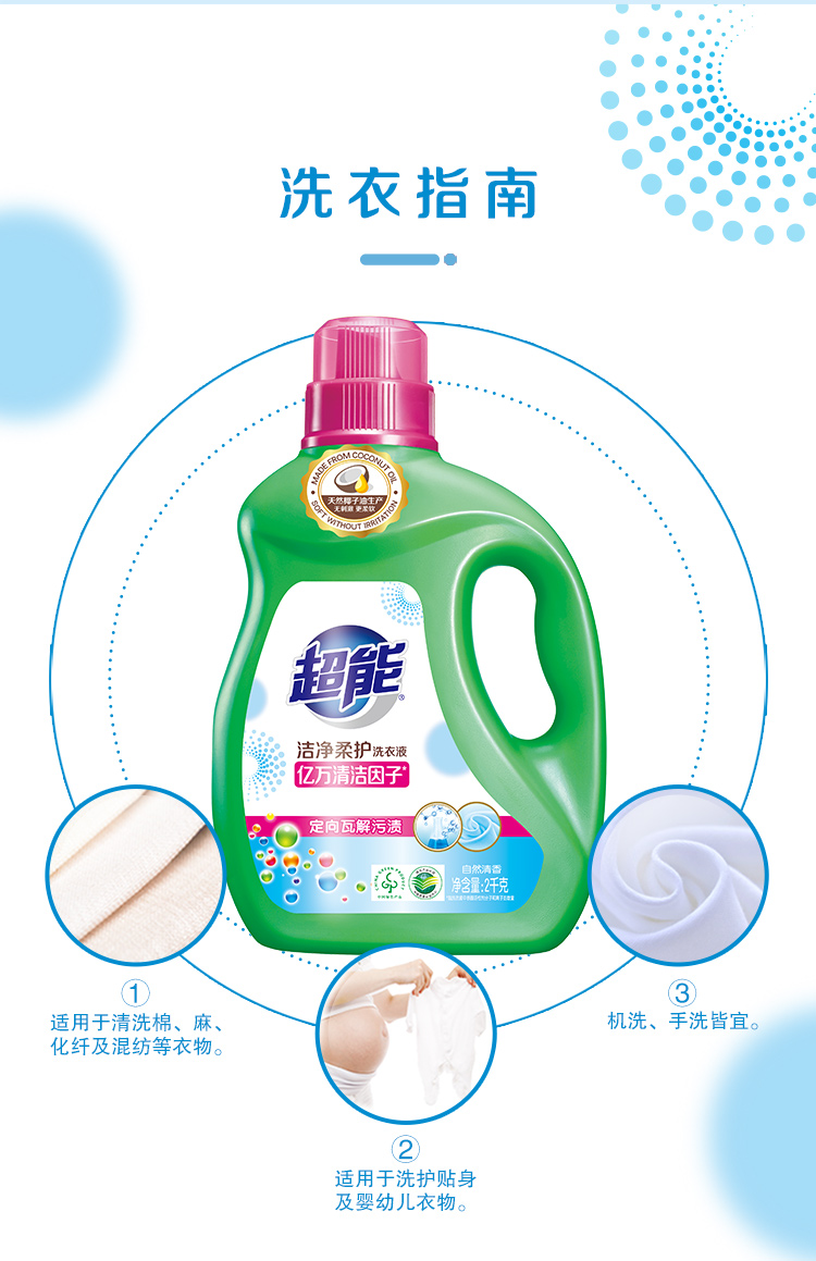 超能洁净柔护洗衣液2kg(非单卖品)瓶装