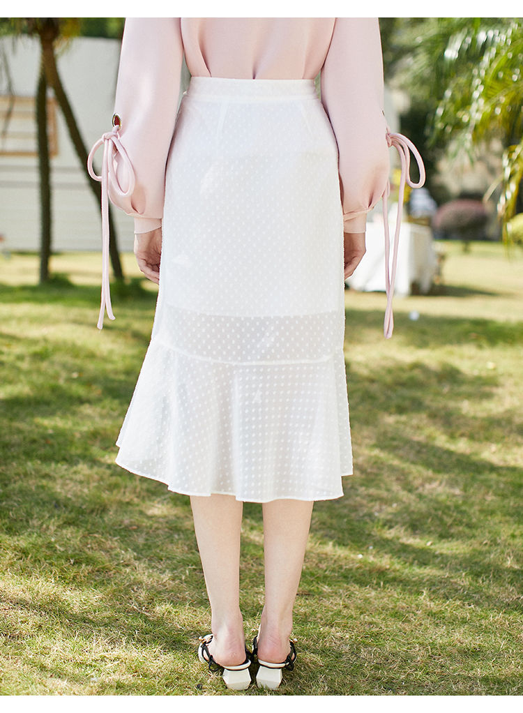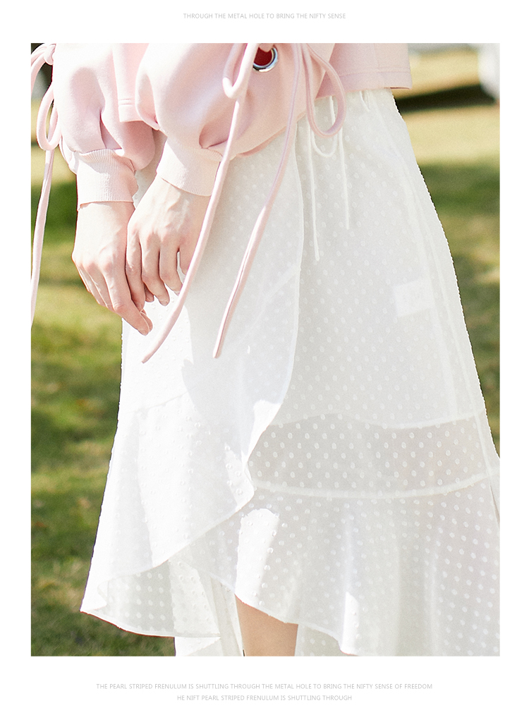 欧芮儿2019春装新款白色网纱拼接半身裙不规则下班鱼尾裙半裙