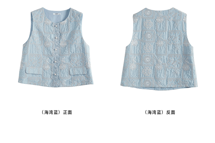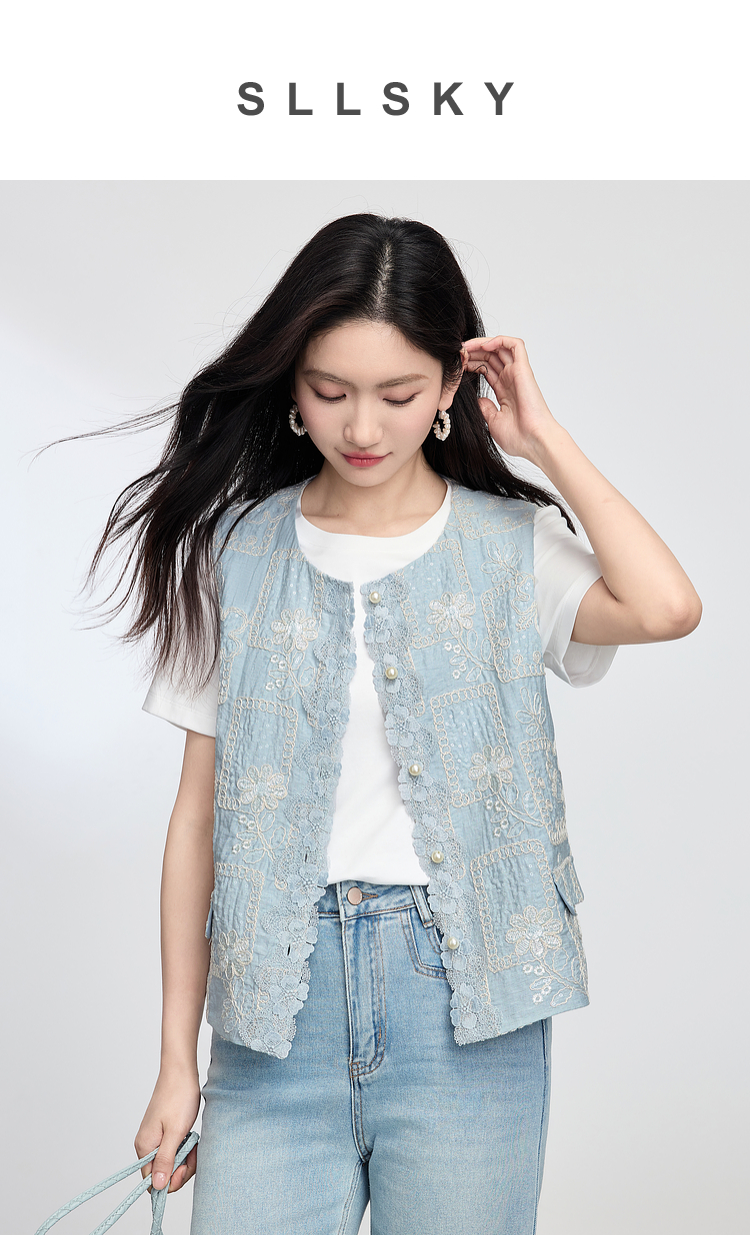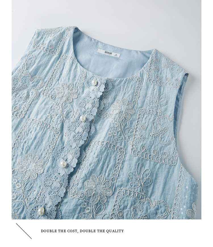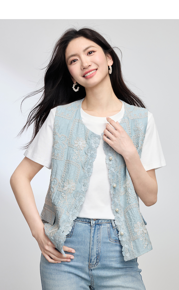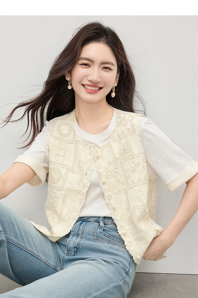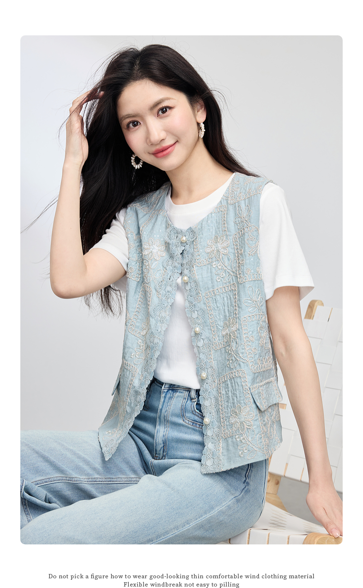 【年货节】熙世界国风蕾丝绣花马甲背心女夏薄款2025新中式圆领无袖坎肩上衣