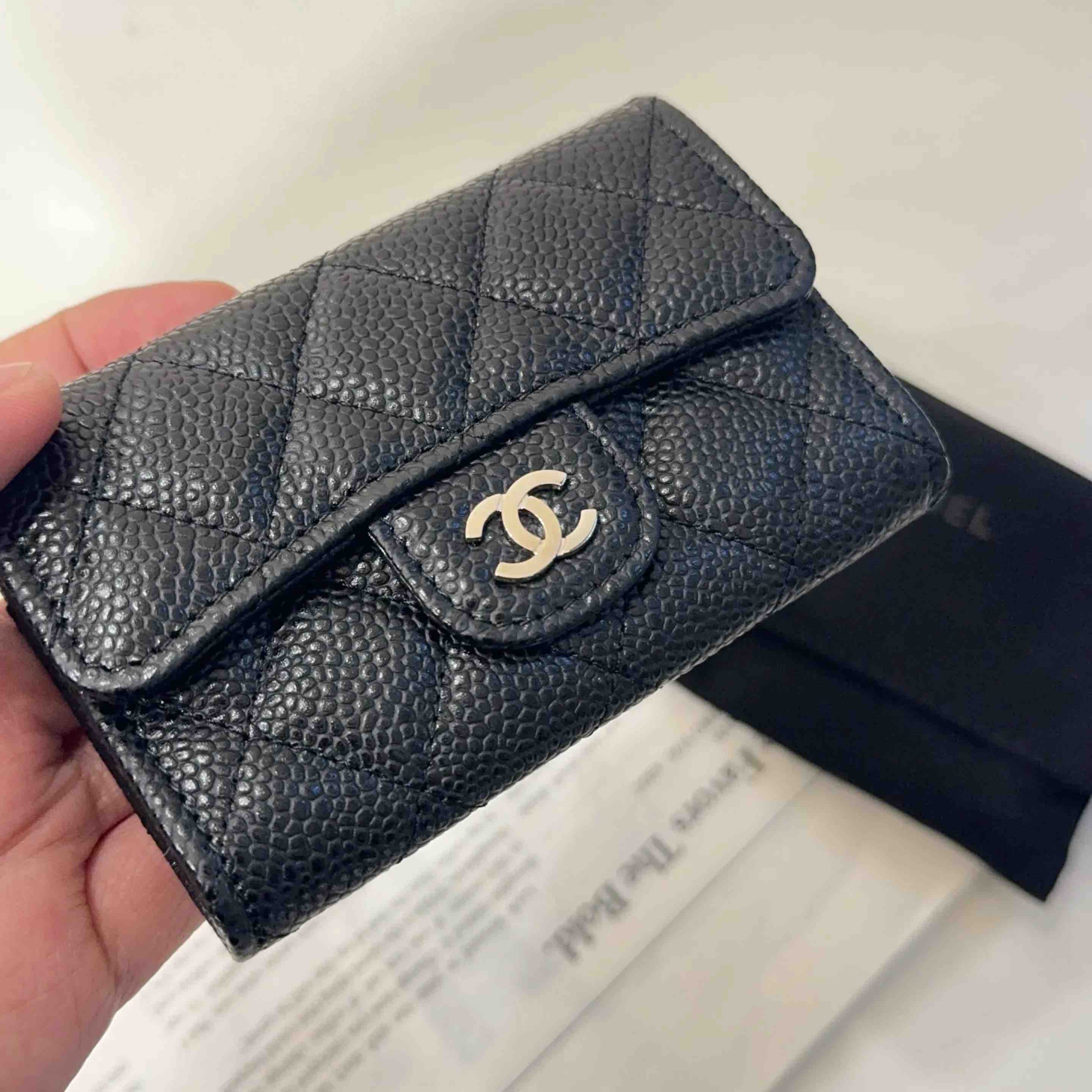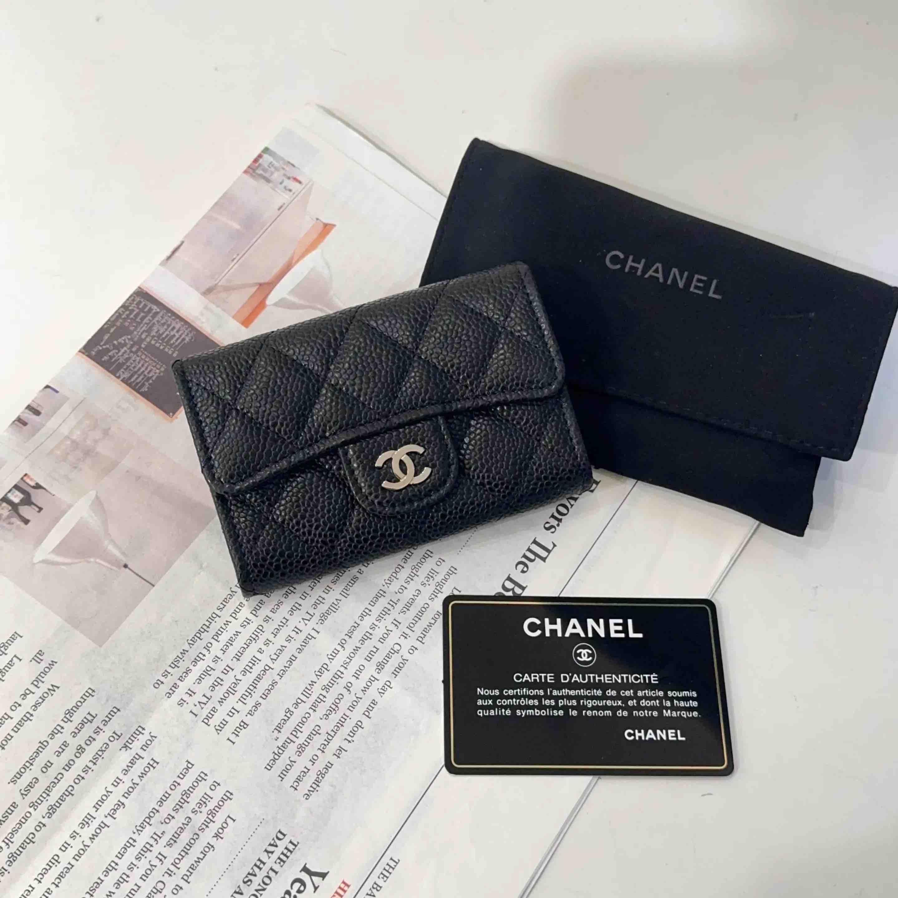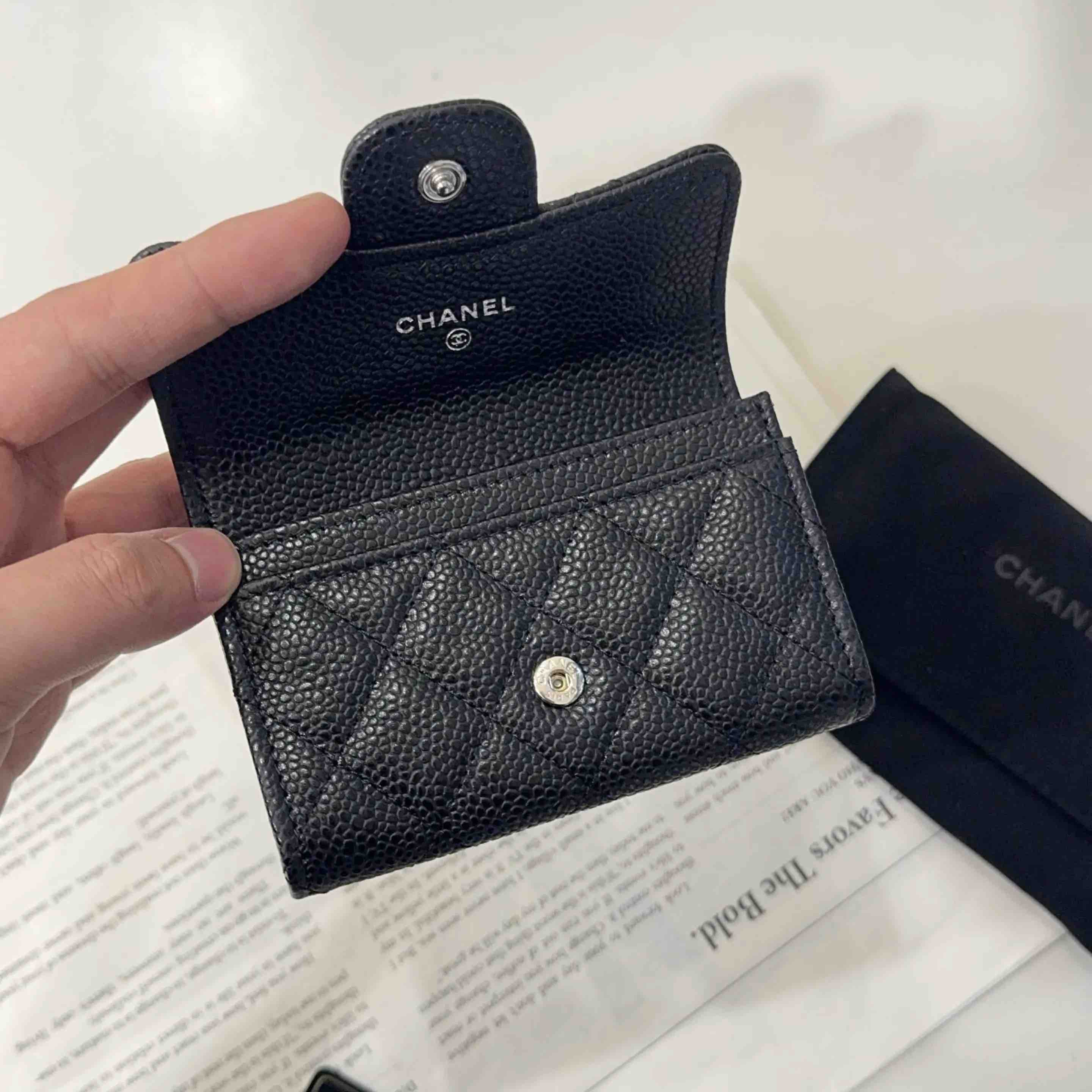 【商品详情】正品二手 Chanel CF 黑银 荔枝纹牛皮 钱包🥖99新 11*7 镭射30开 配件:卡 防尘袋。经典入门级首选黑金牛