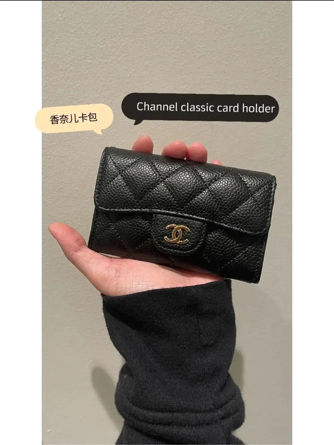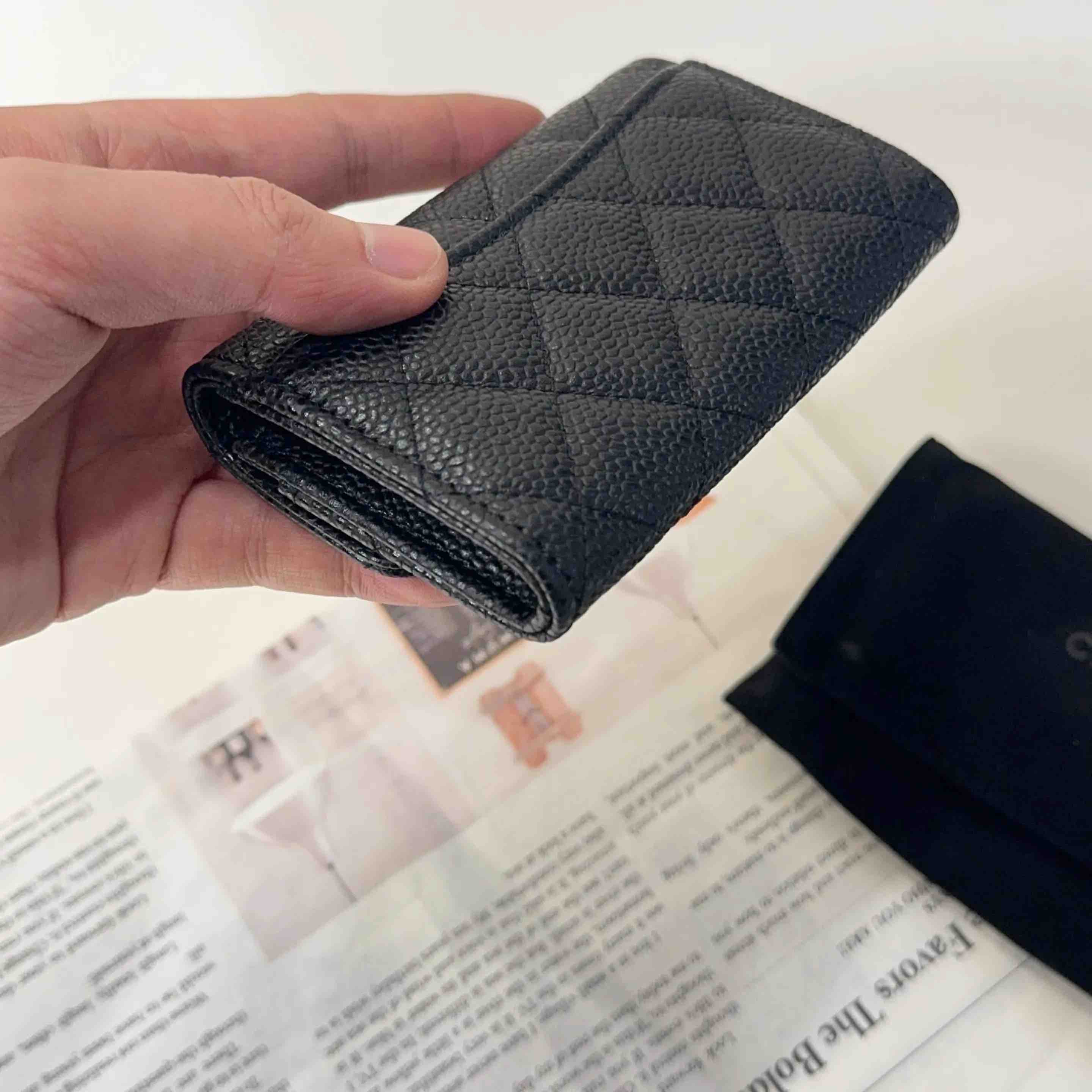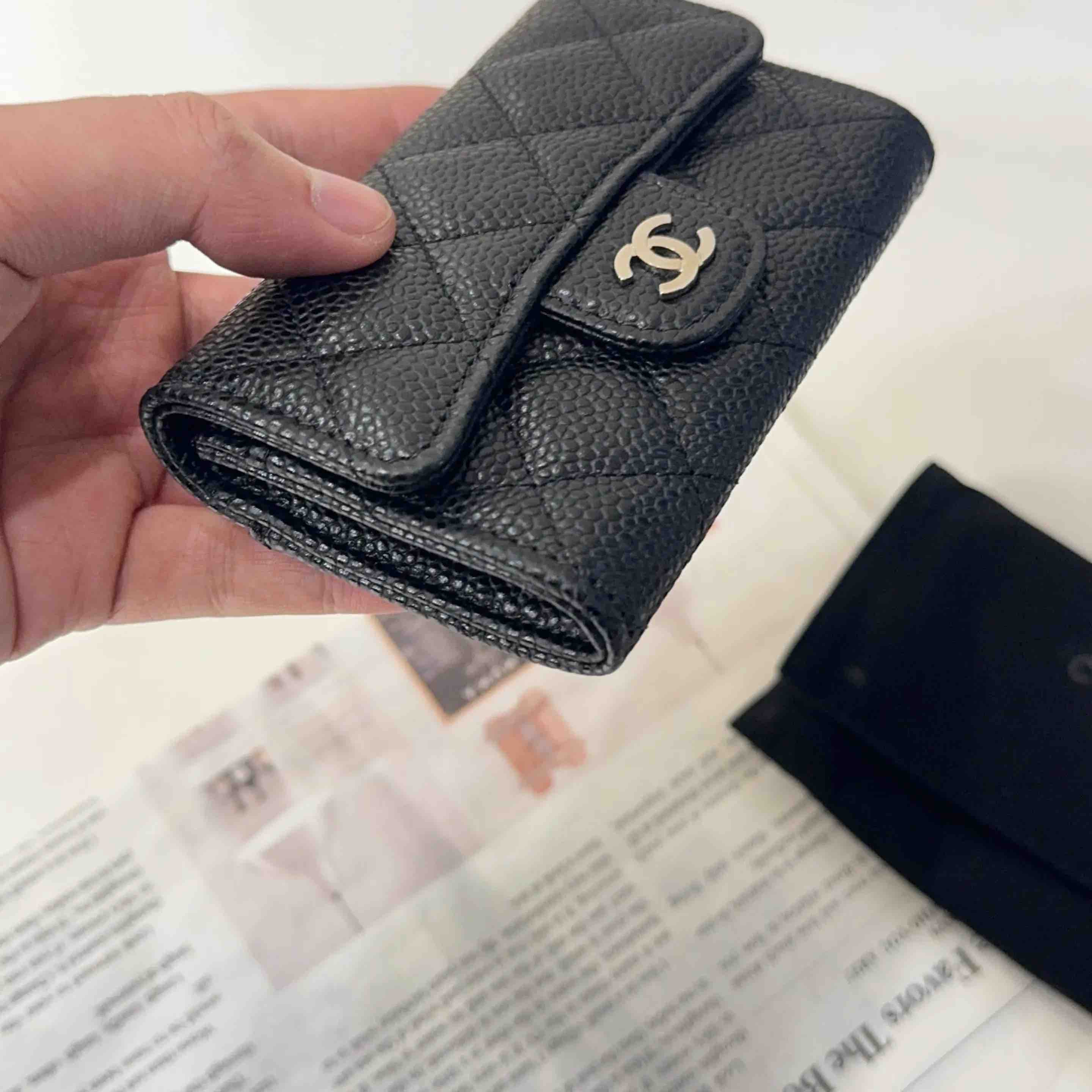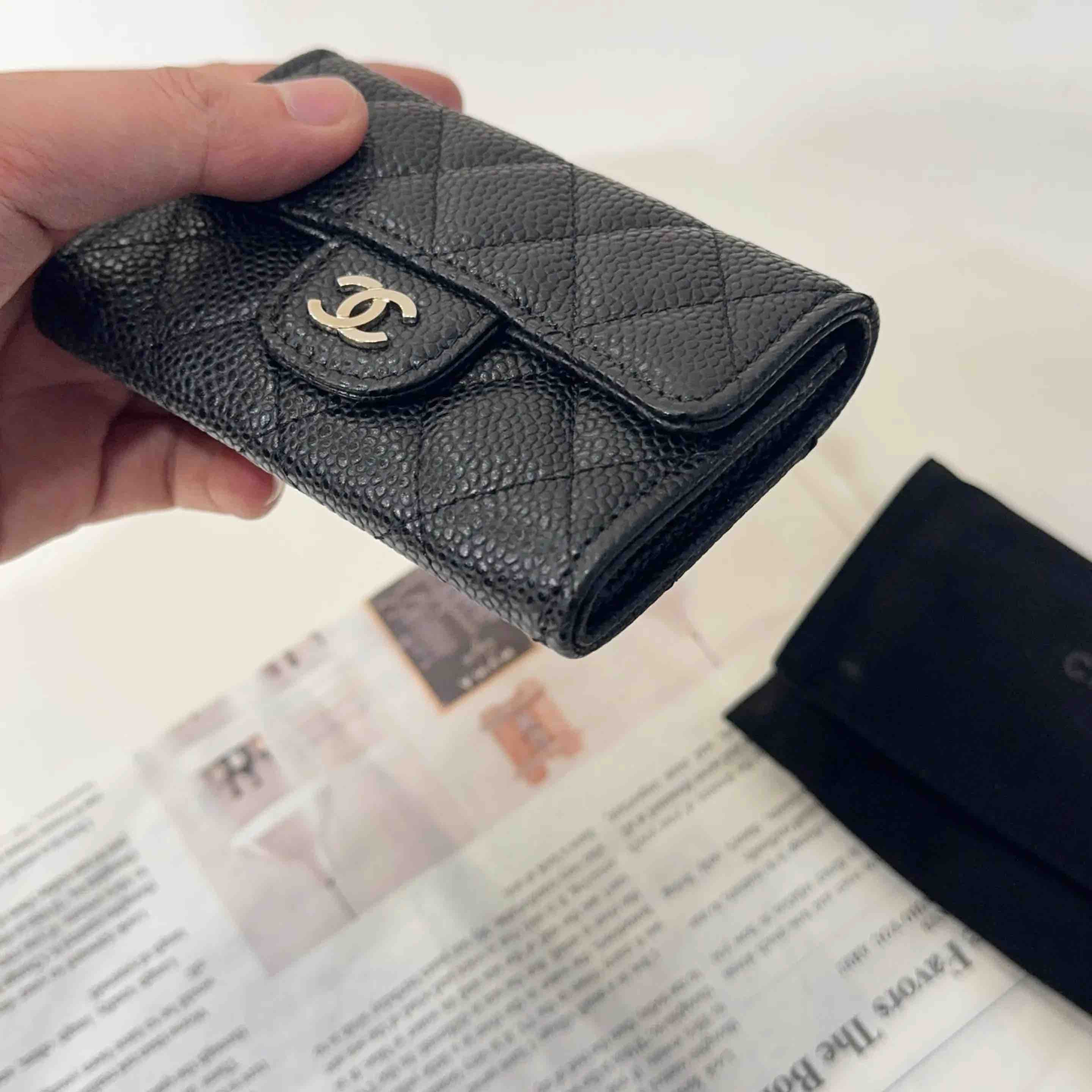【商品详情】正品二手 Chanel CF 黑银 荔枝纹牛皮 钱包🥖99新 11*7 镭射30开 配件:卡 防尘袋。经典入门级首选黑金牛