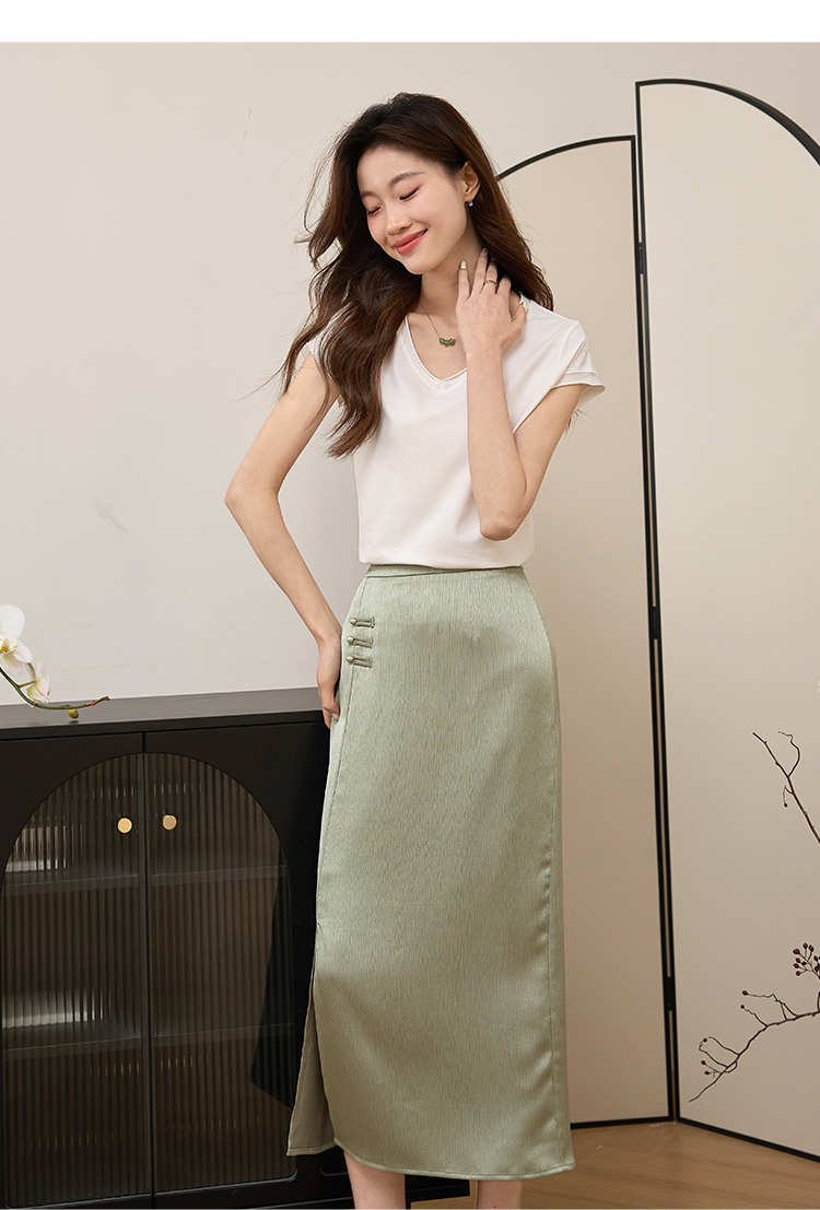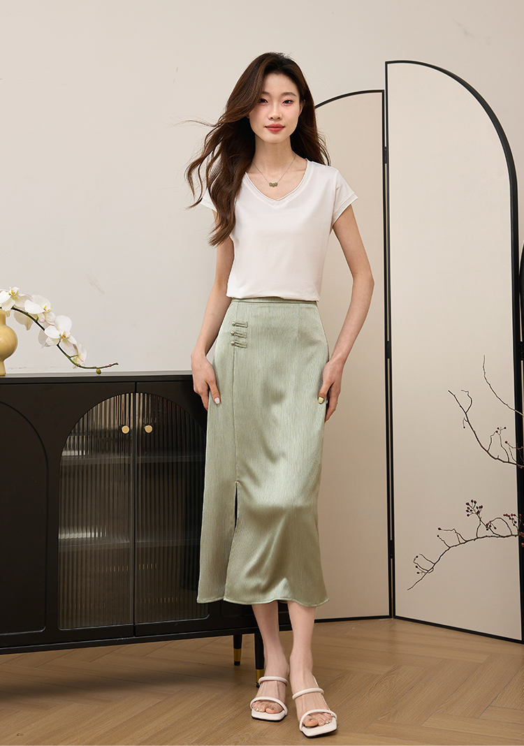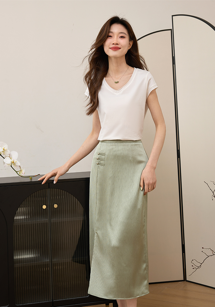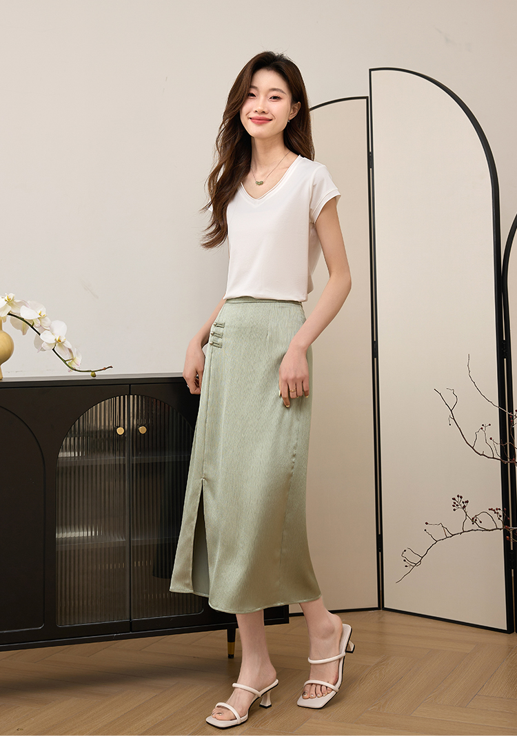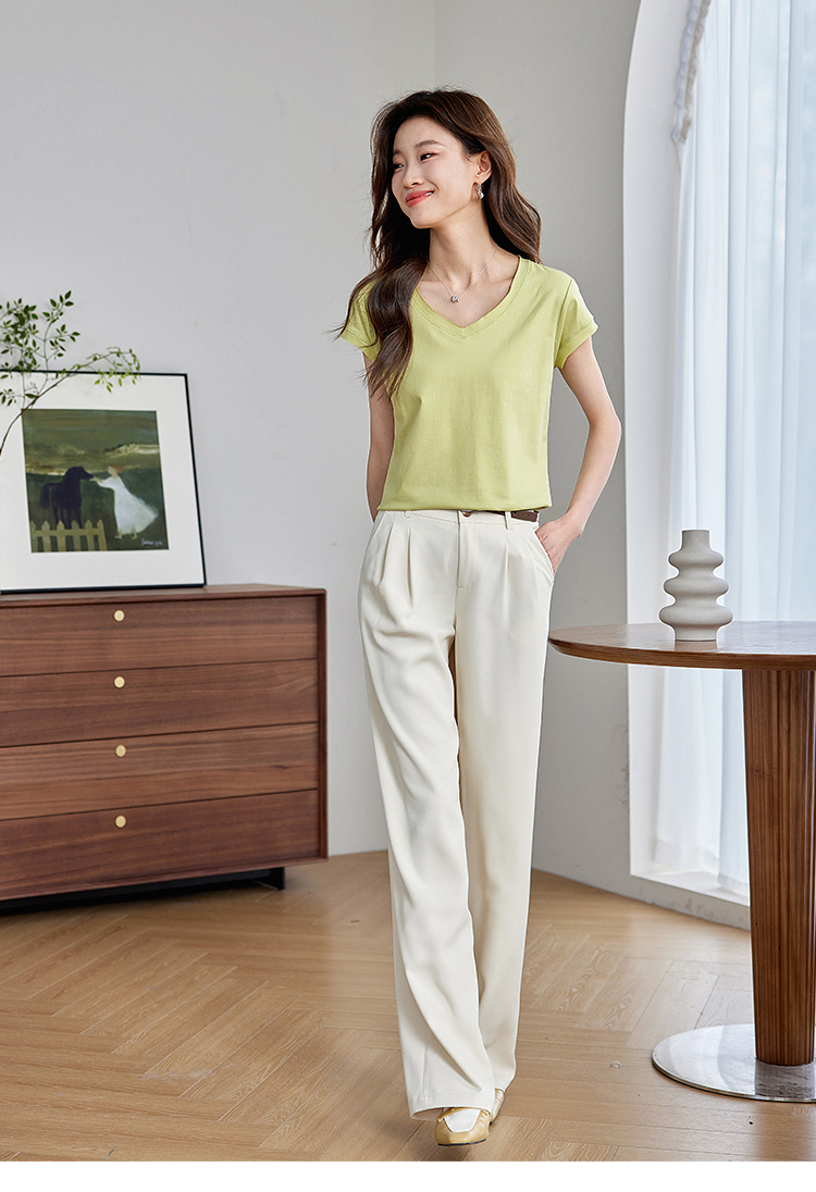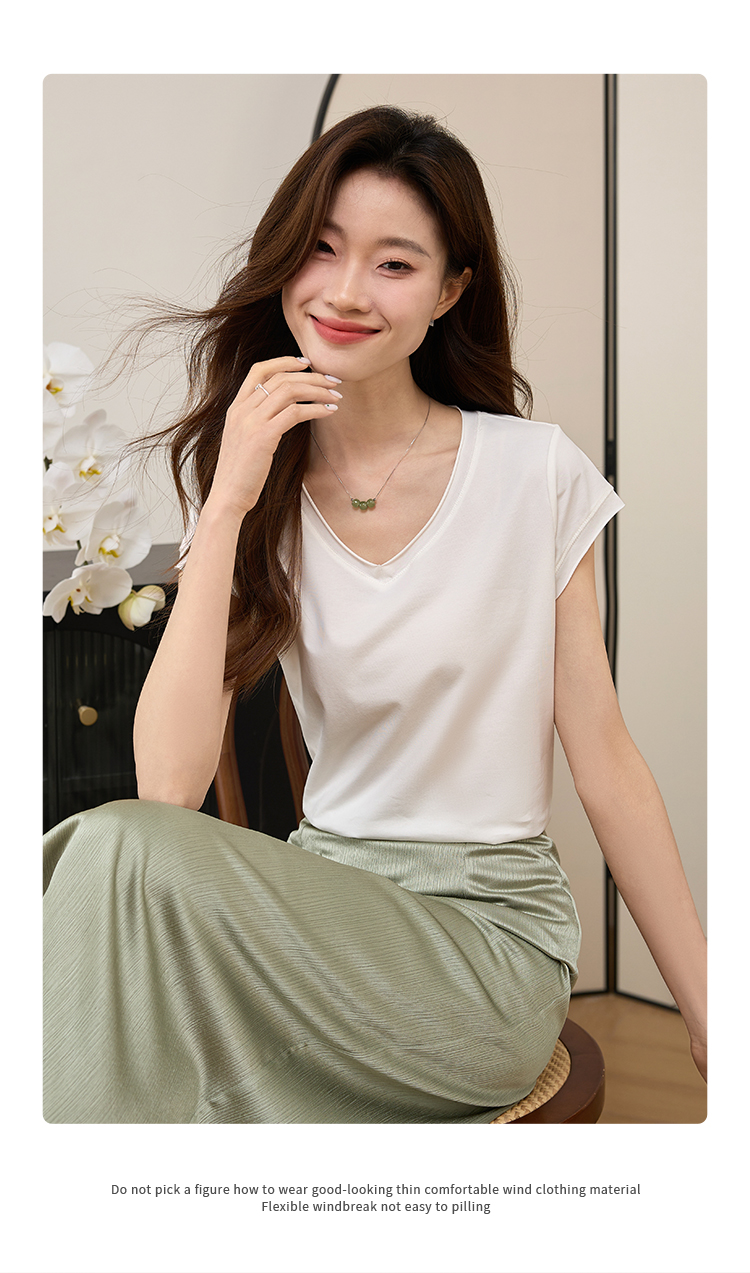 【专属特价】熙世界多色短袖基础款卷边纯色体恤打底外穿V领百搭T恤上衣166ST253