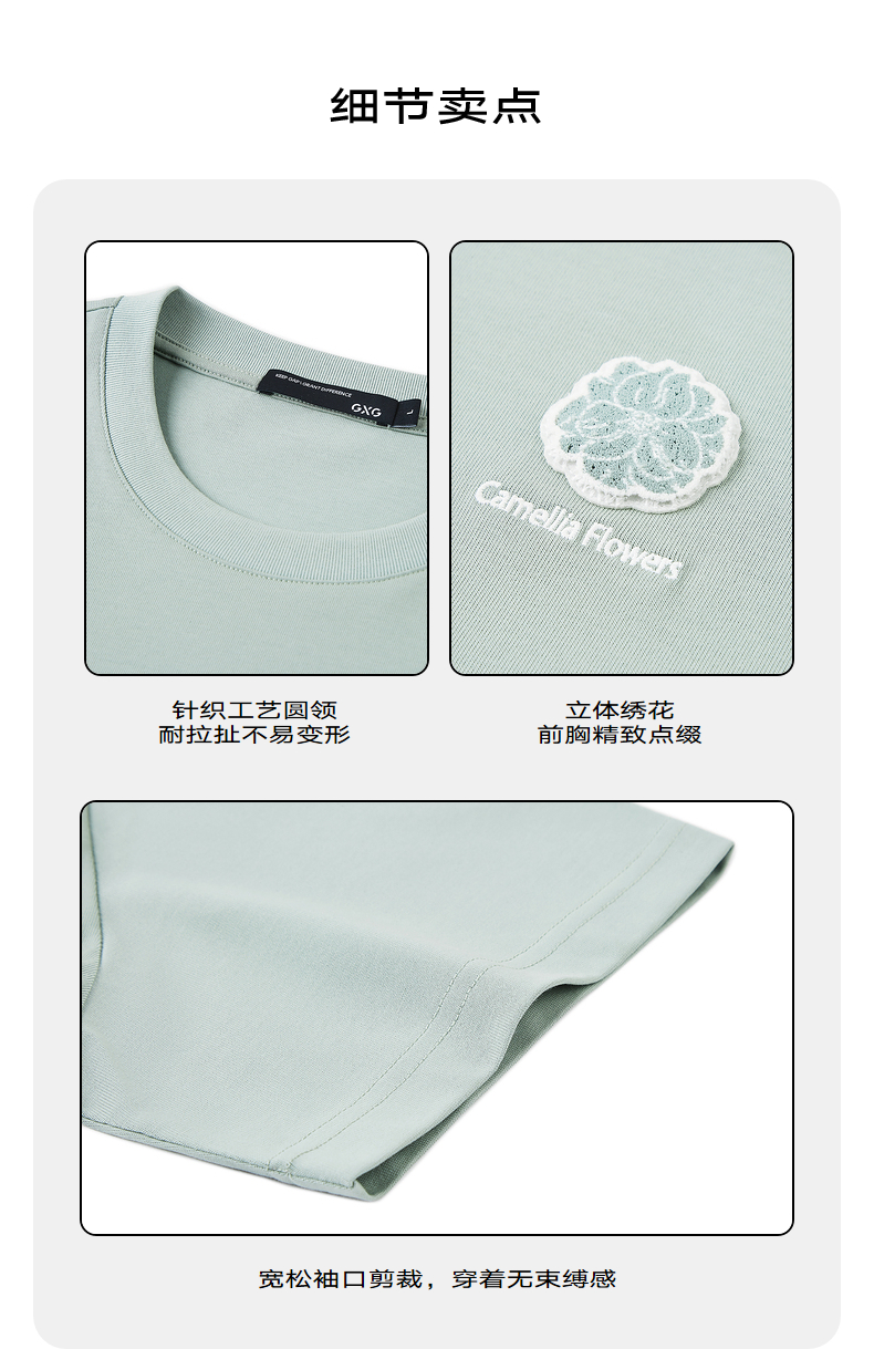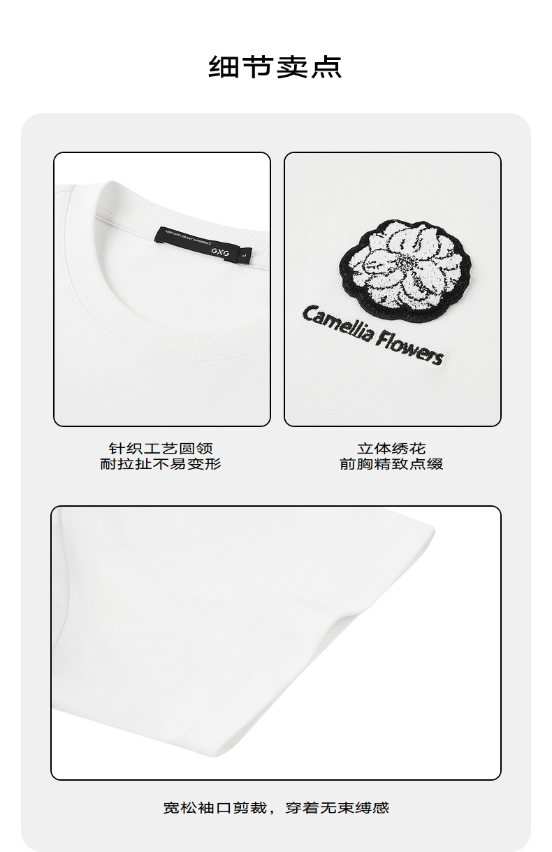 GXG男装 夏季凉感立体绣花宽松舒适休闲短袖t恤男
