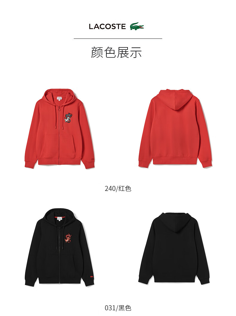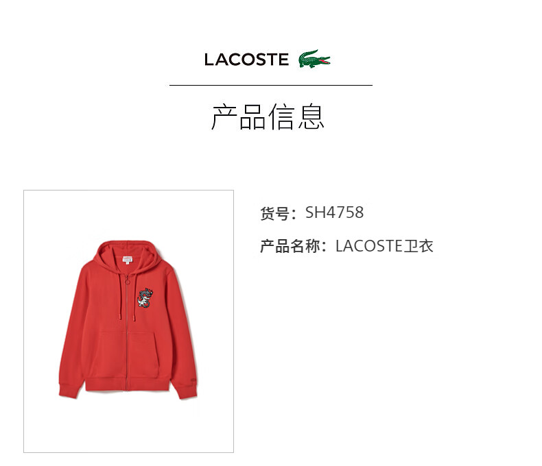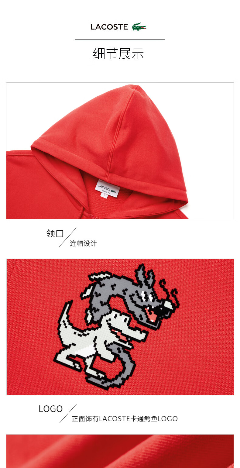 【海南专供价】Lacoste法国鳄鱼新款龙年新年系列男女同款连帽卫衣外套SH4758-98
