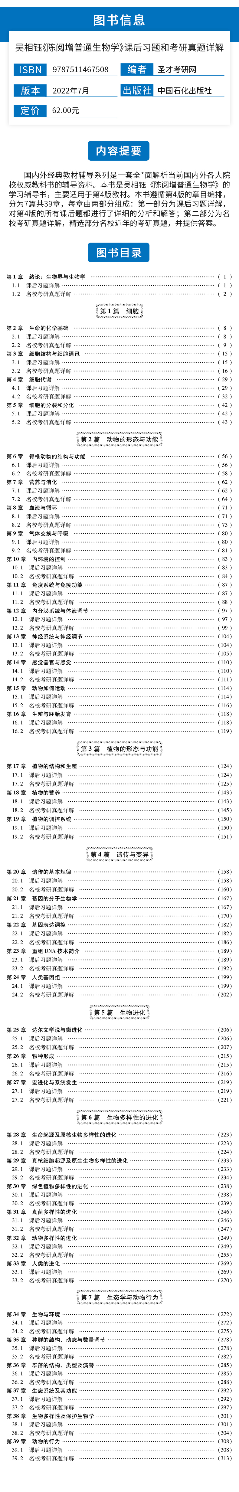 书名:吴相钰《陈阅增普通生物学》课后习题和考研真题详解