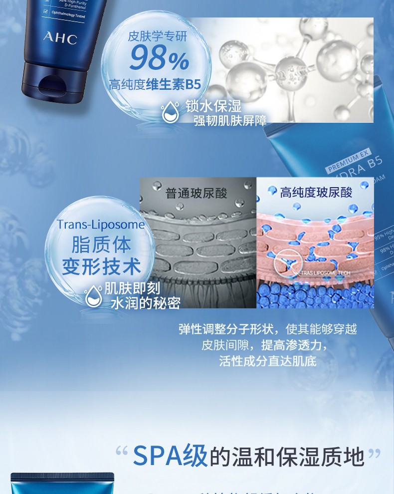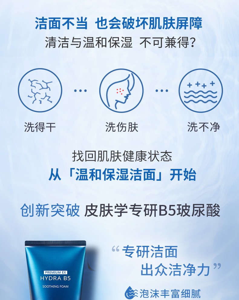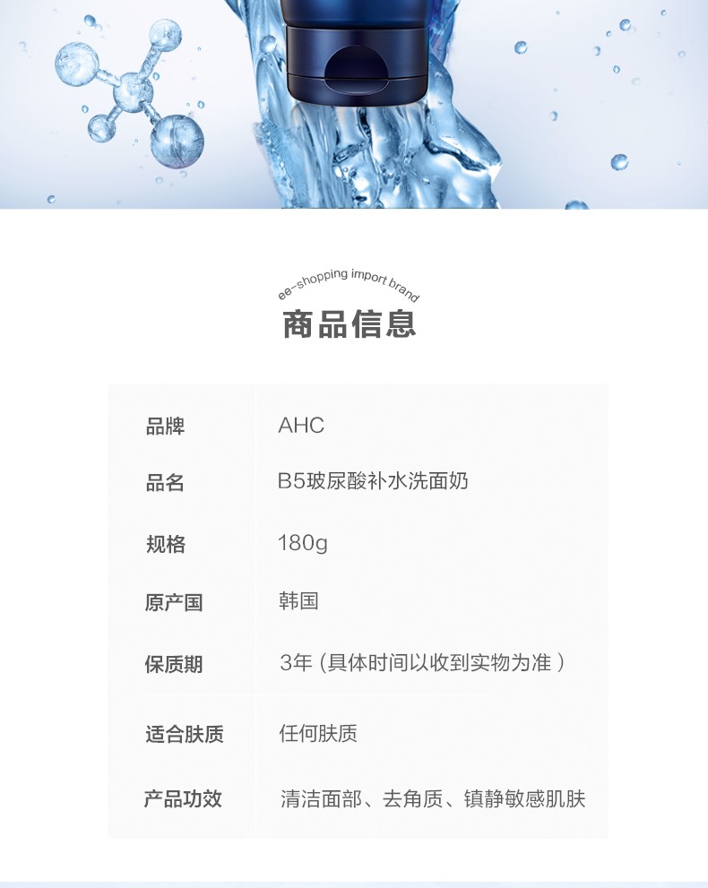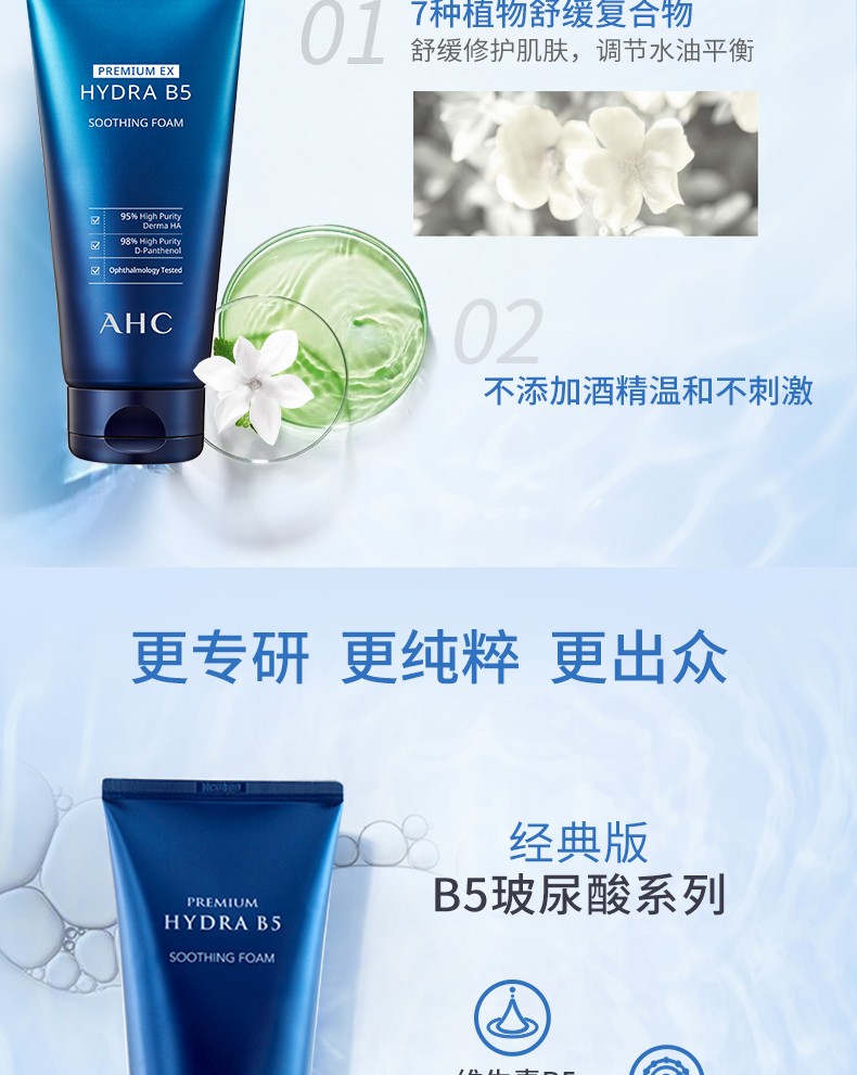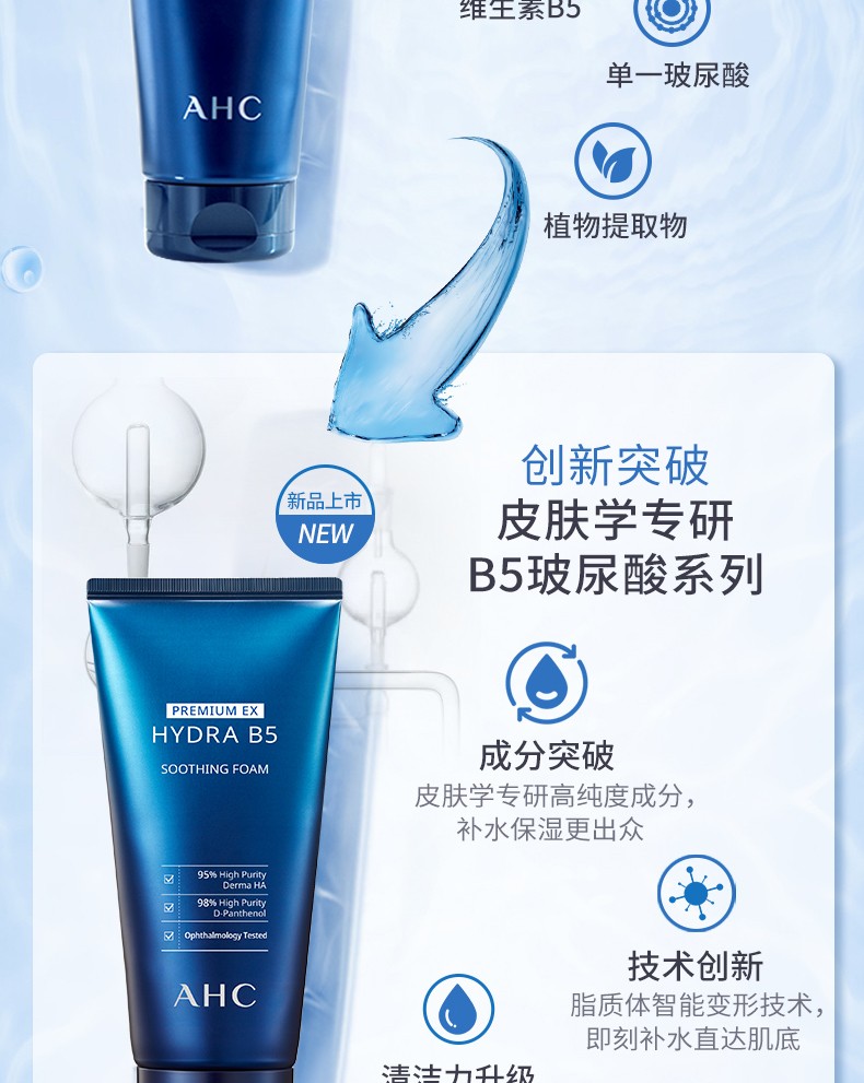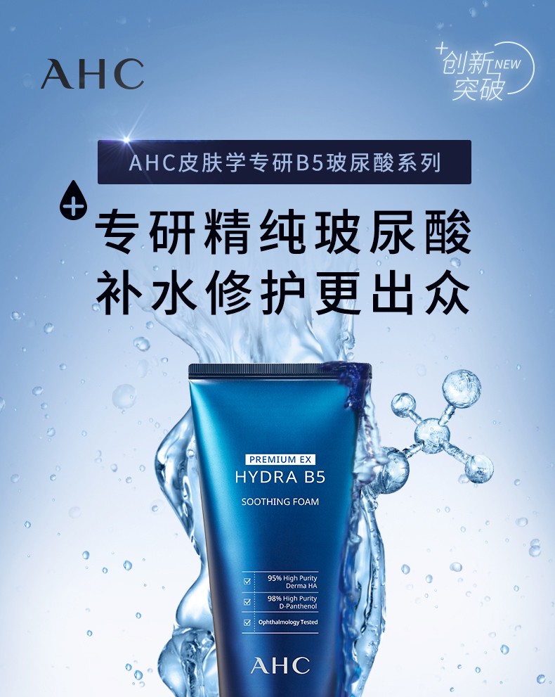 AHC 爱和纯专研B5玻尿酸水盈洗面奶180ml 清洁补水 深层洁面保湿
