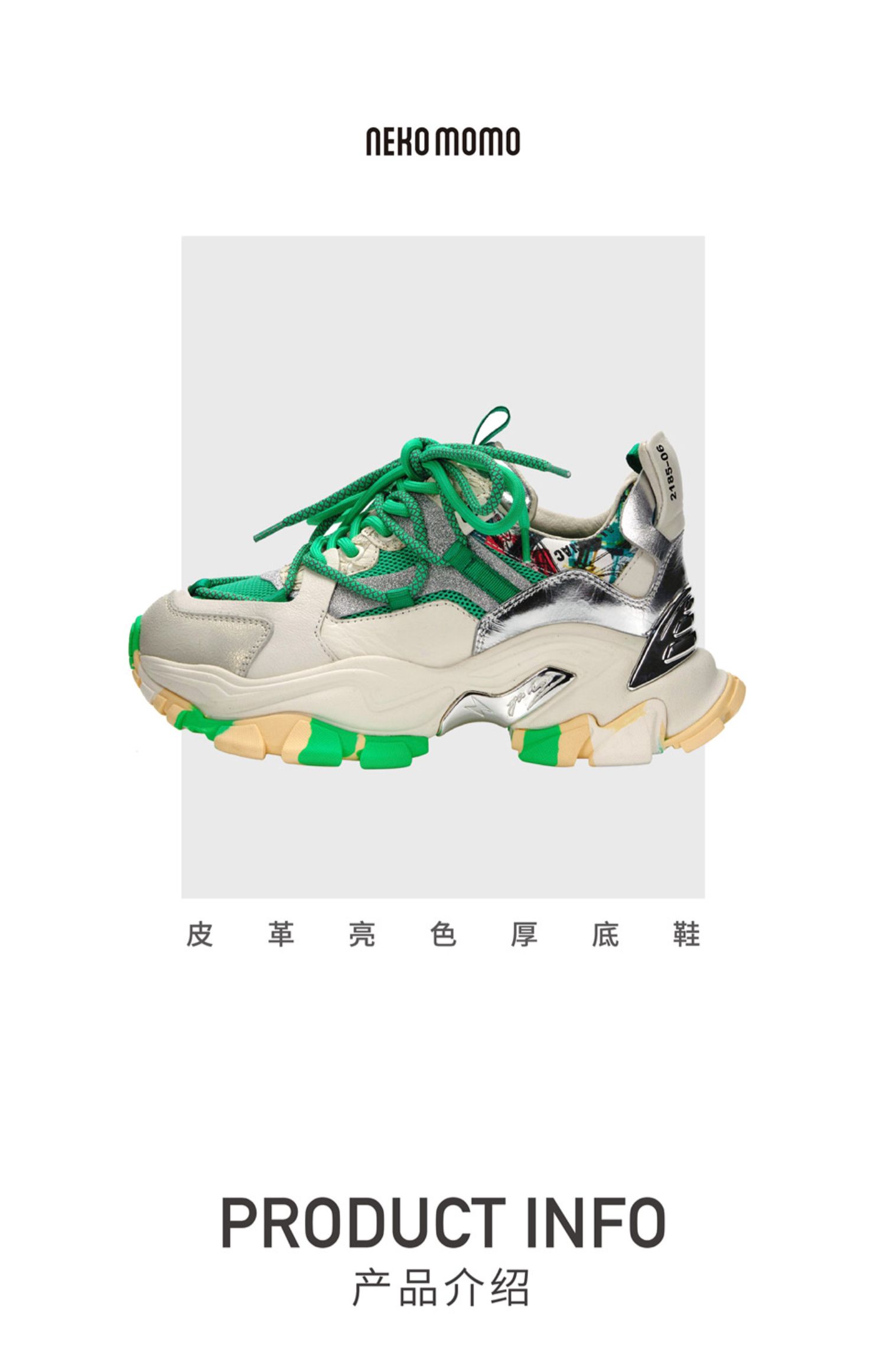 nekomomo老爹鞋女潮ins复古2022秋冬新款牛皮超轻厚底增高运动鞋35891