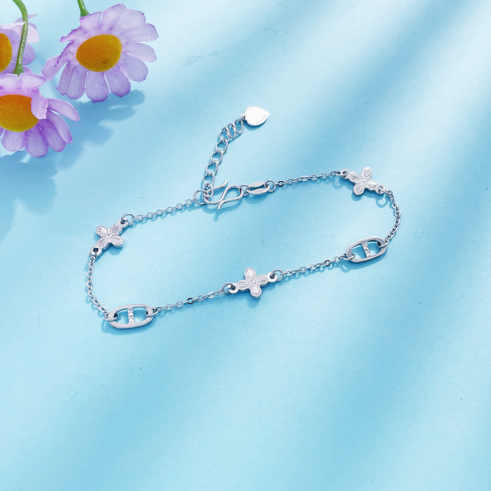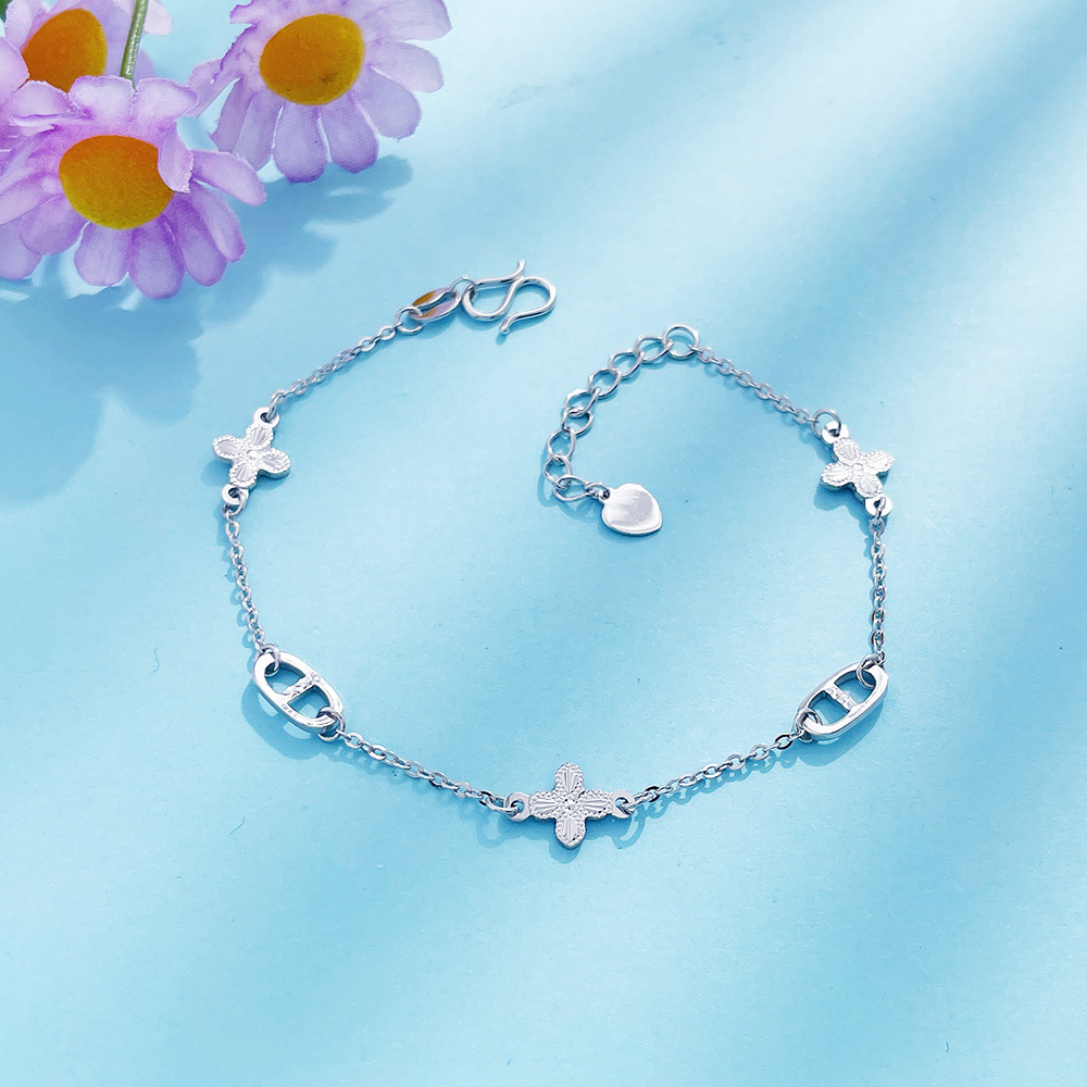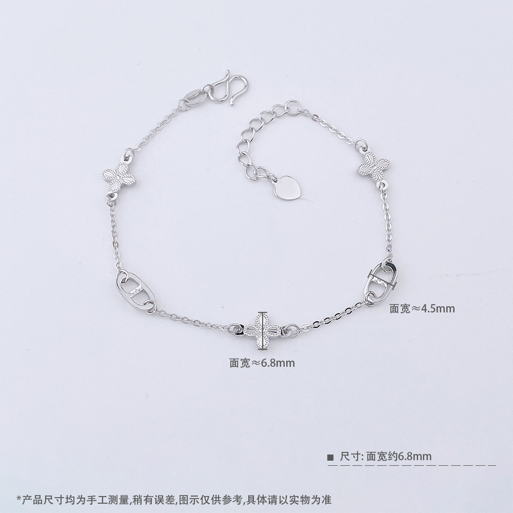 【限时8.8折】【线上铂金馆】PT950 【精品】铂金镂空CNC猪鼻子幸运四叶草间款调节手链(BFPTSL00013)预售产品下单后不退款不退货不换货不补差价)