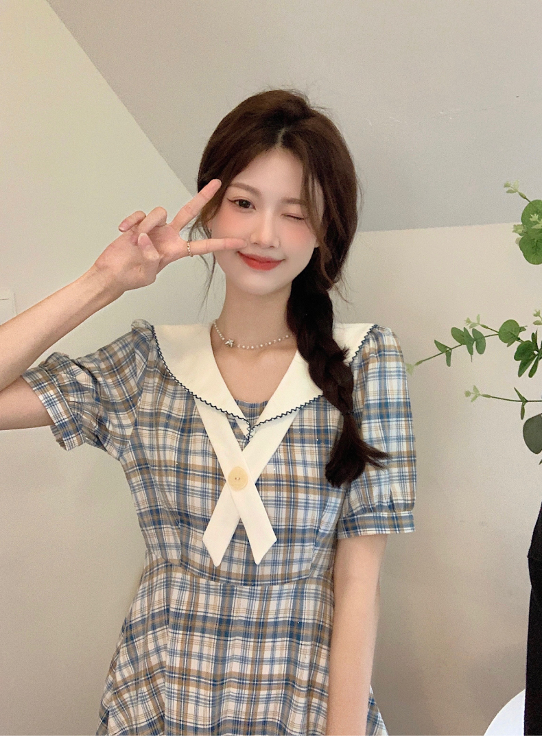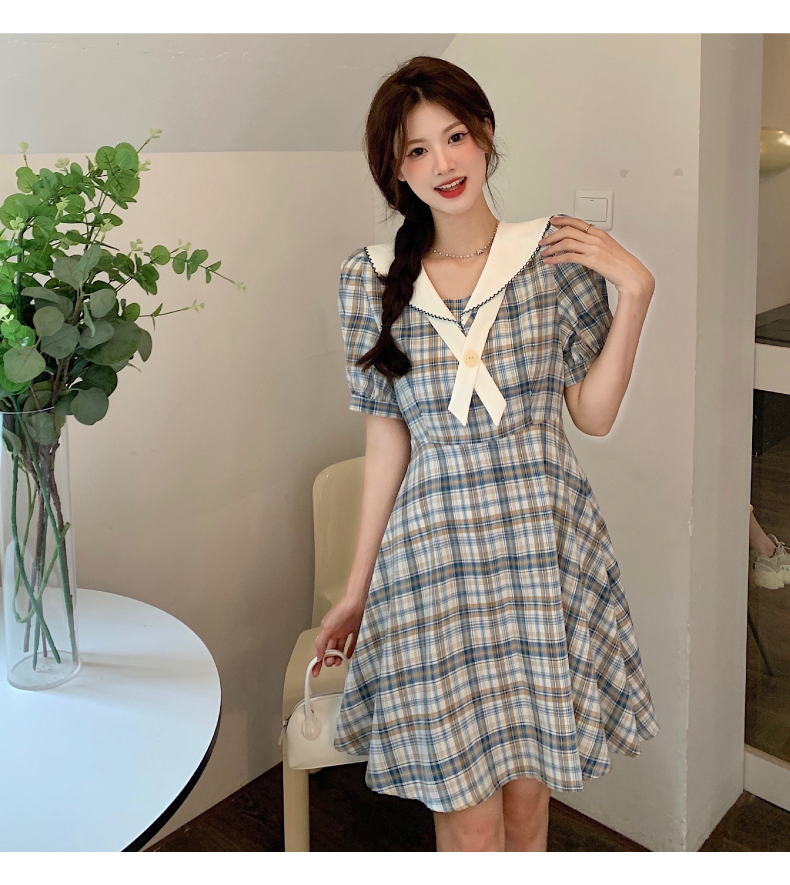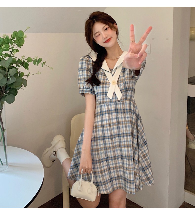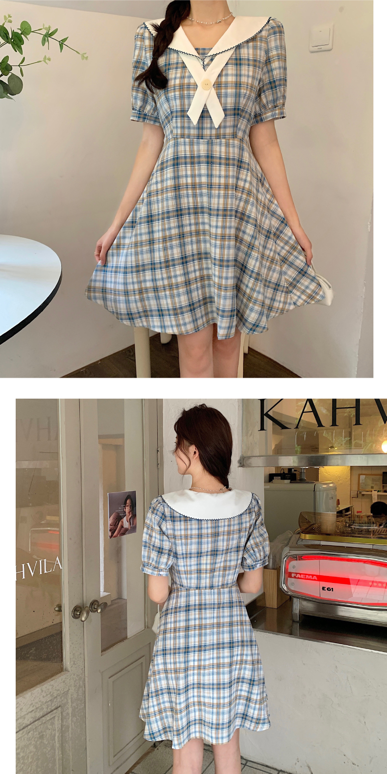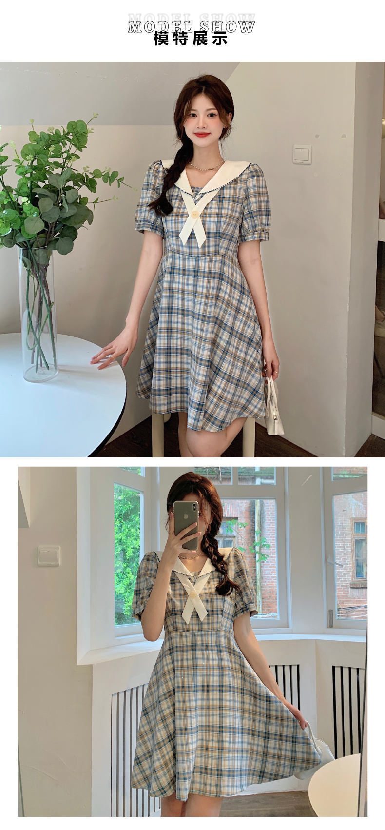 P&X设计师女装 2022夏季新款 梭织连衣短裙通勤黄蓝格 822208811B