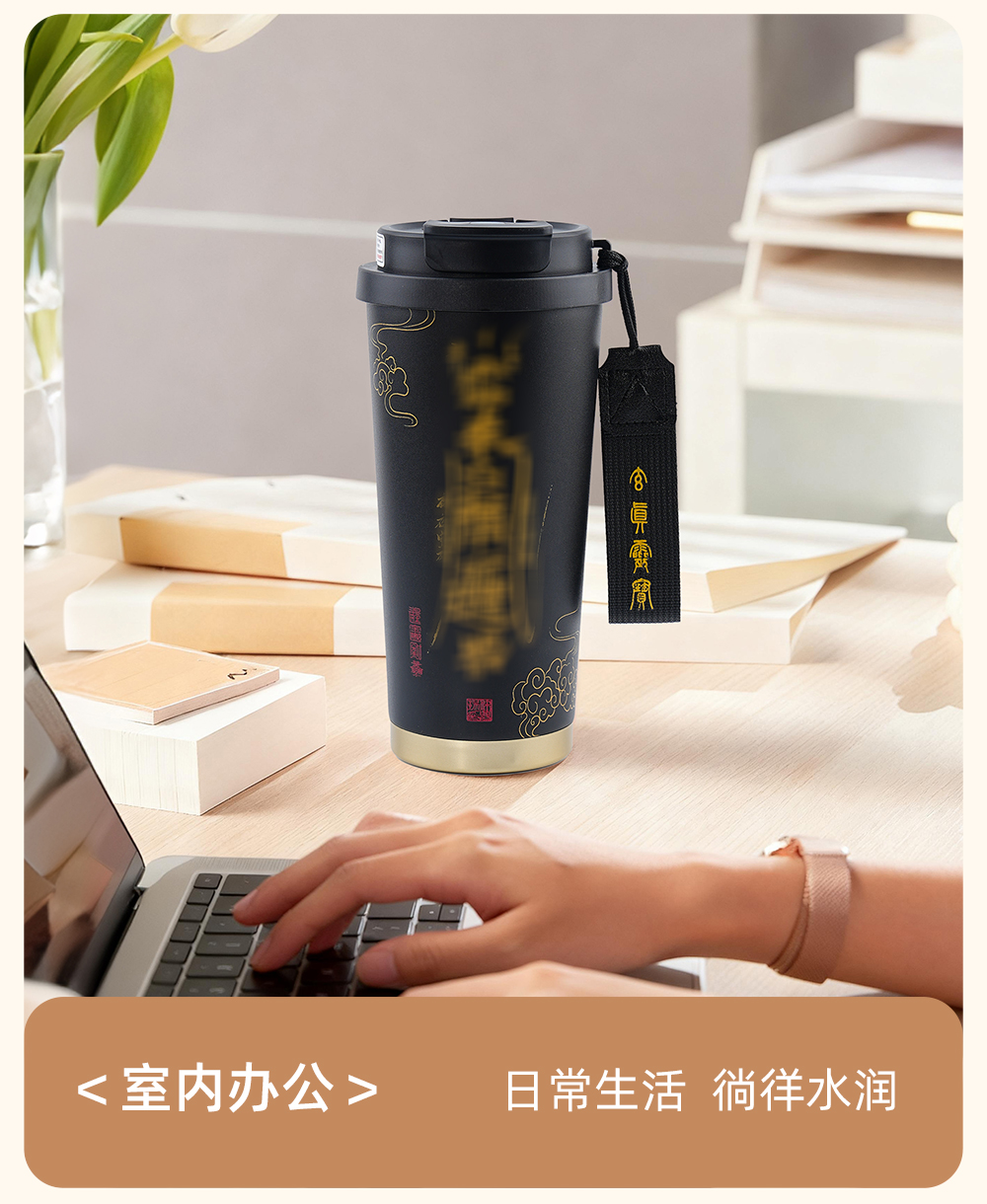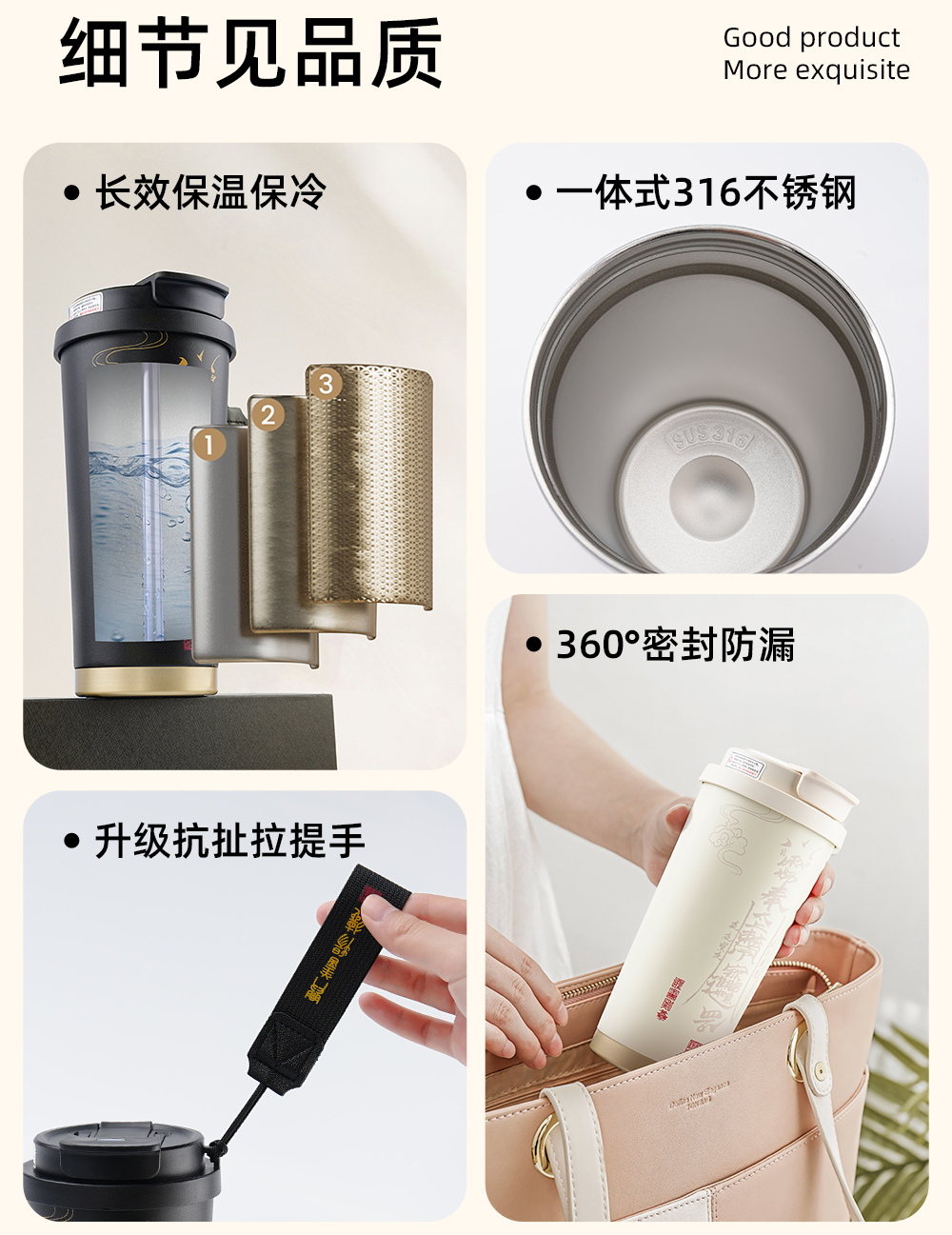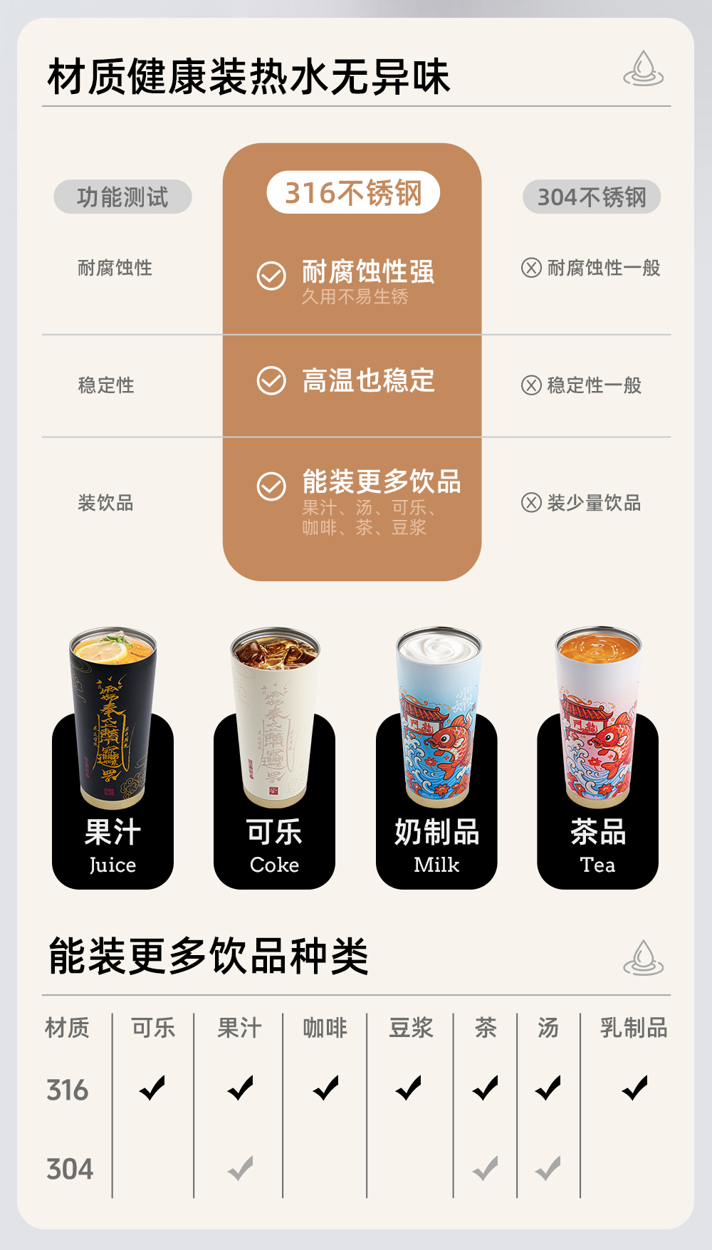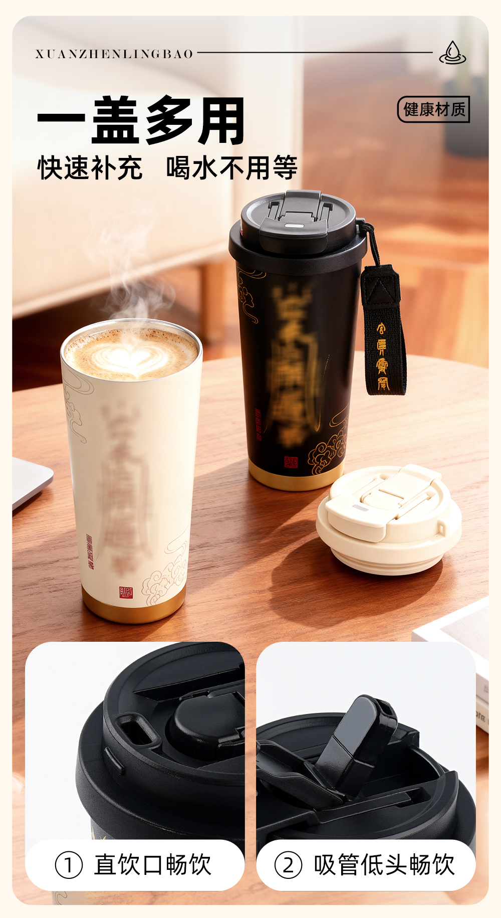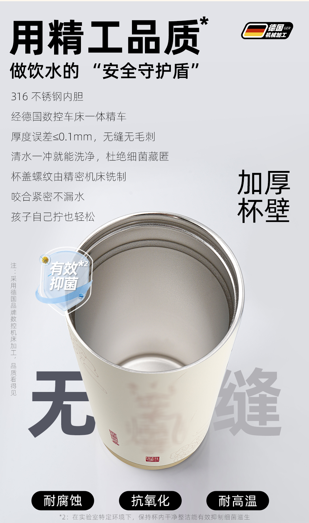 原创蝌蚪文保温杯S316食品级不锈钢茶杯咖啡杯吸管水杯子