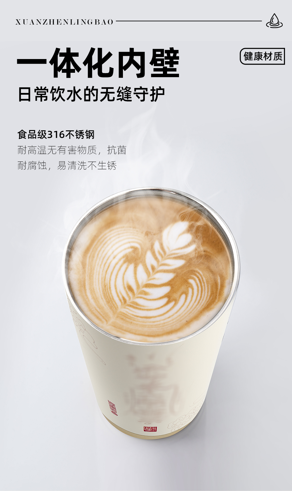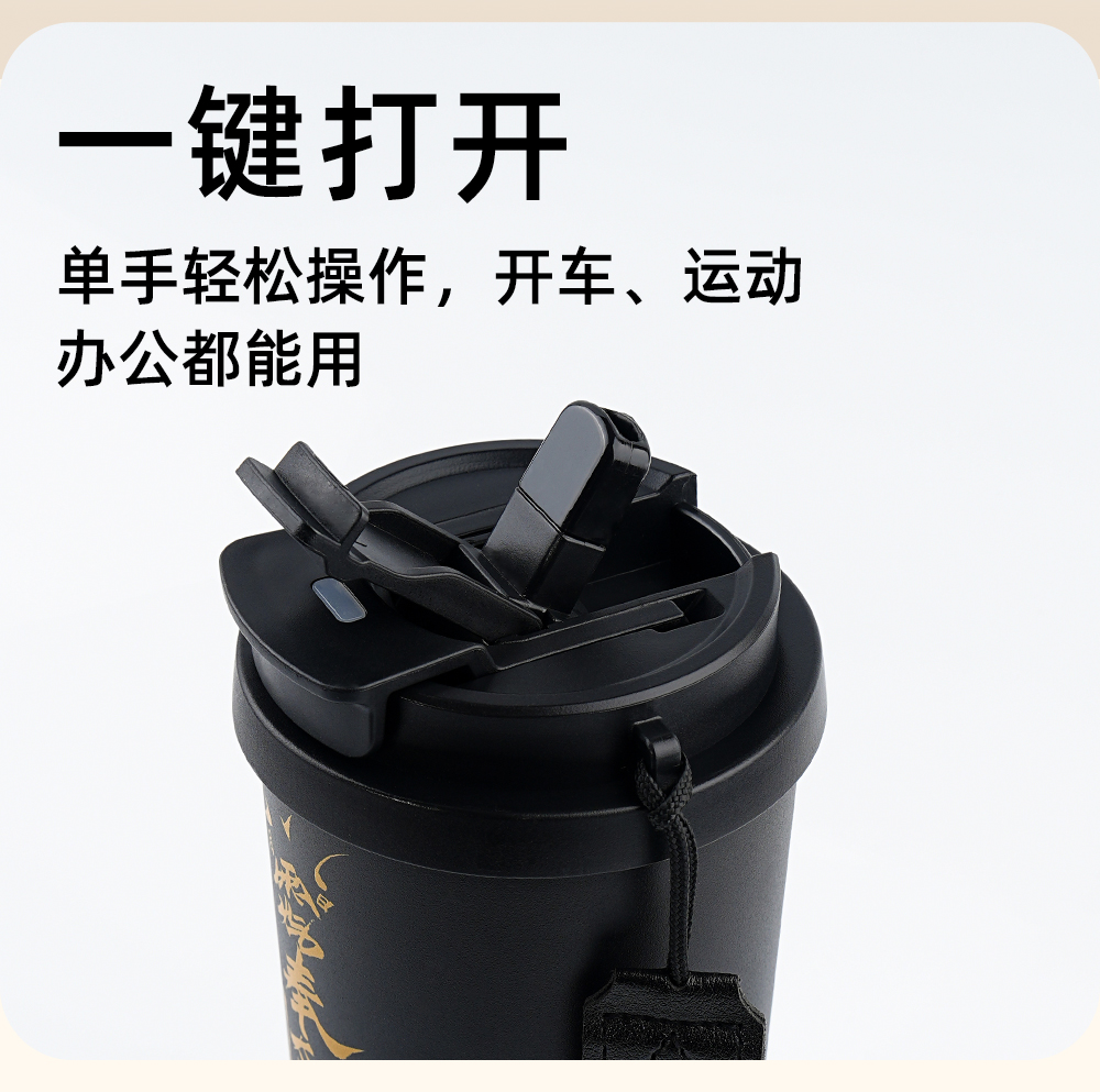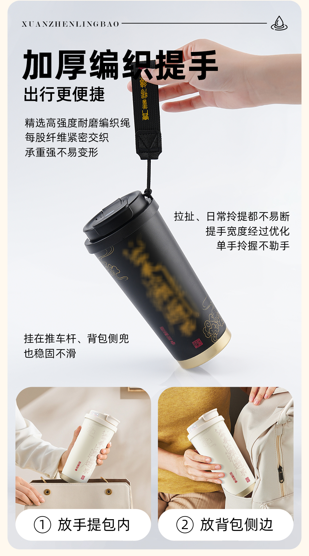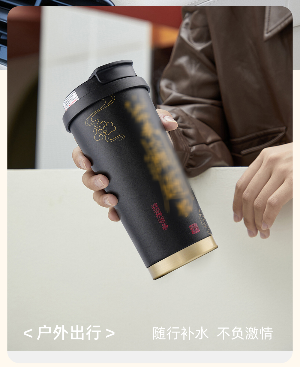 原创蝌蚪文保温杯S316食品级不锈钢茶杯咖啡杯吸管水杯子