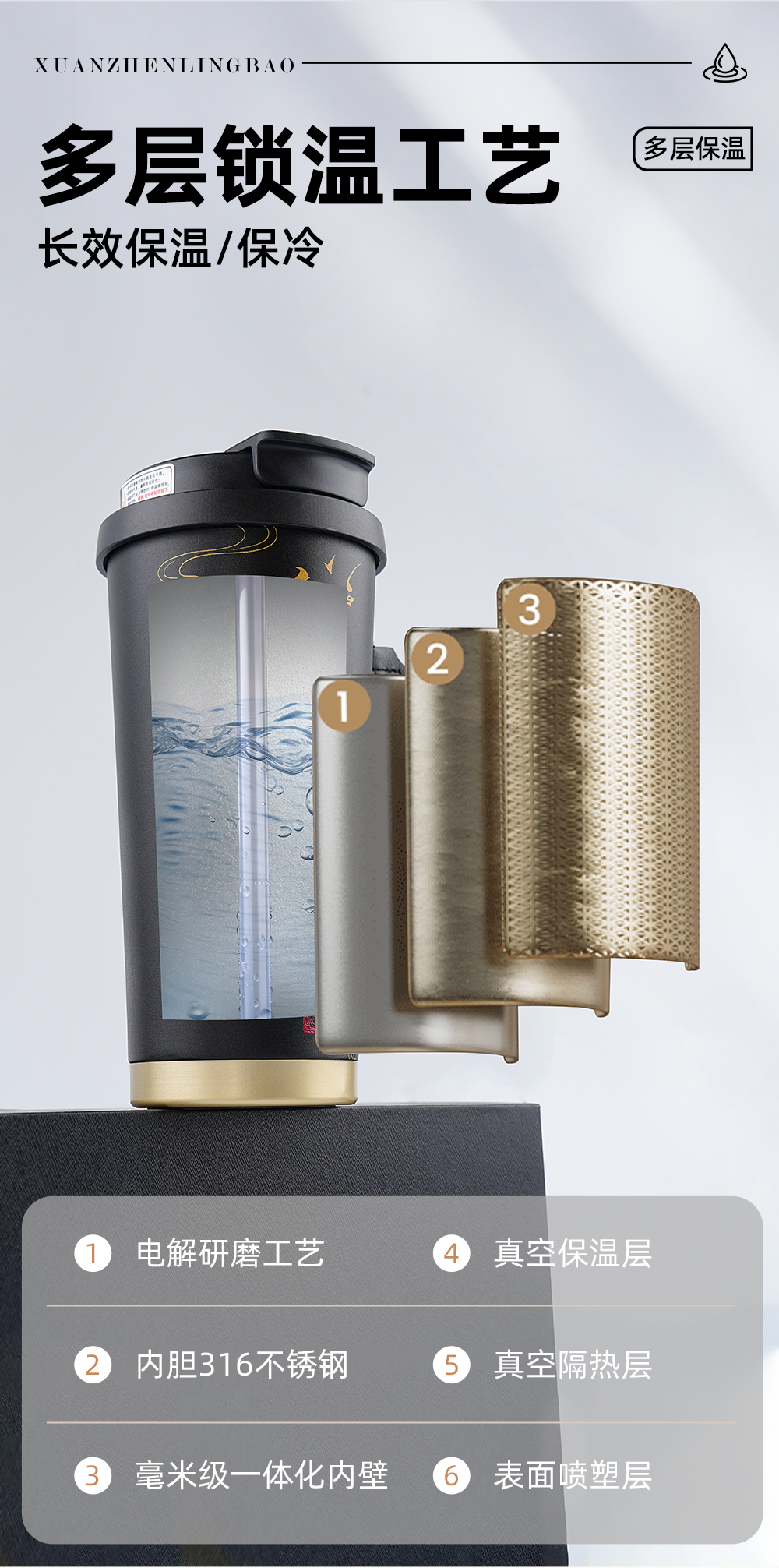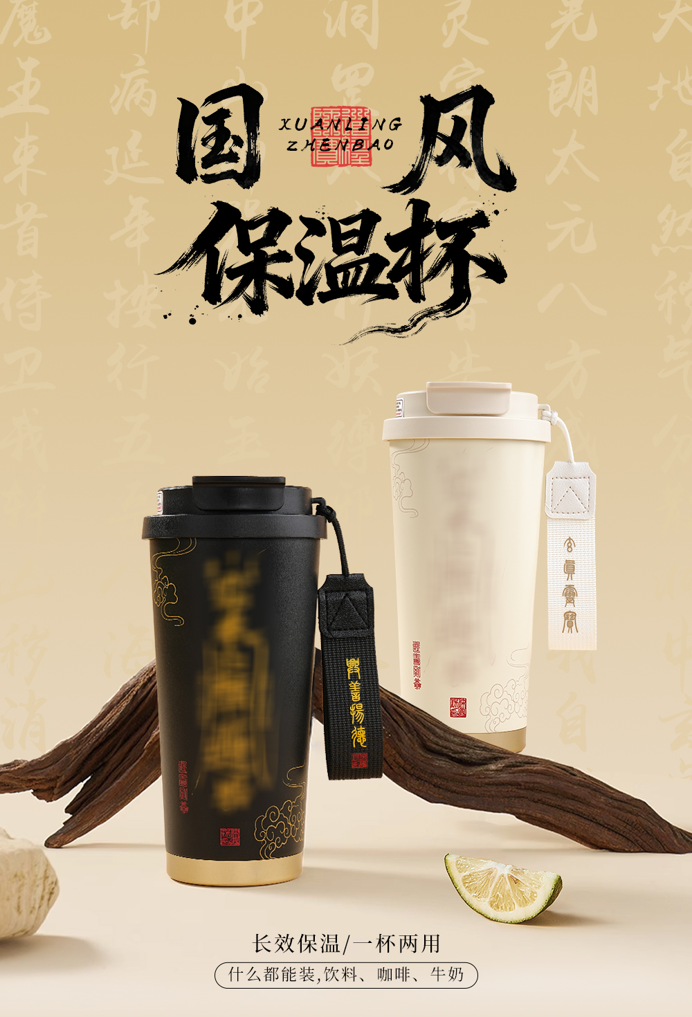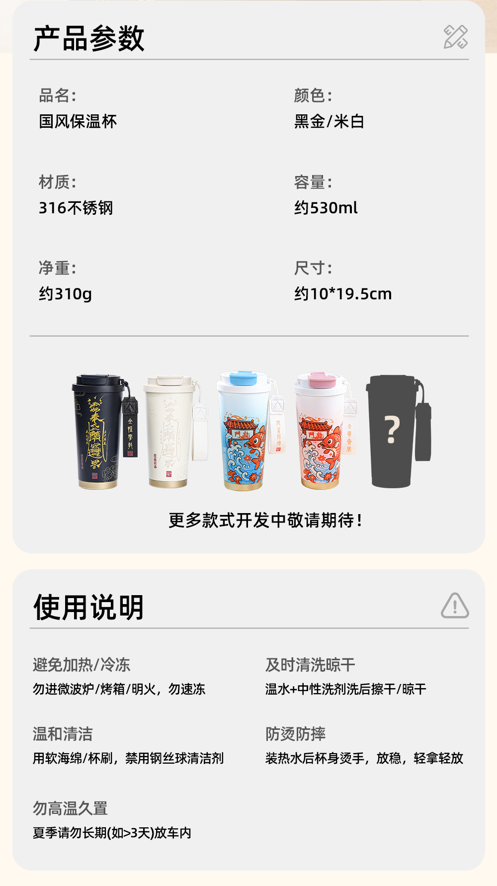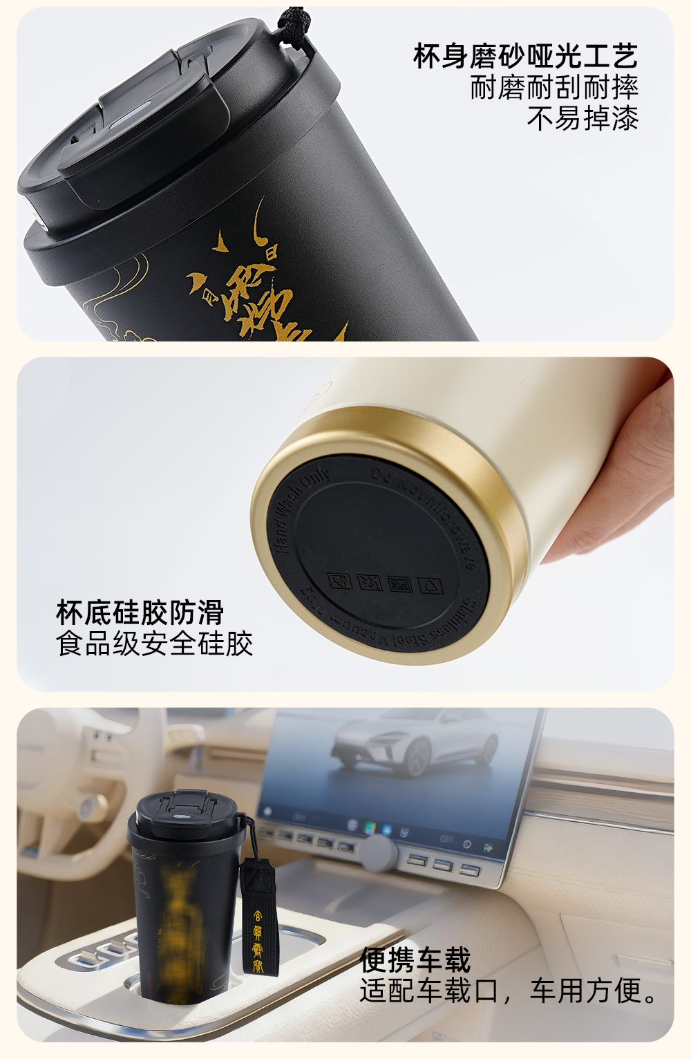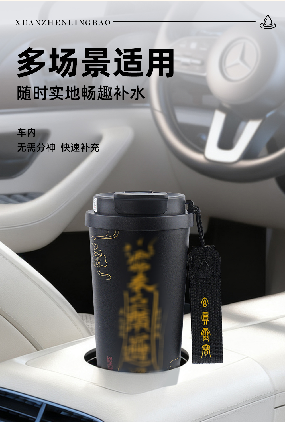原创蝌蚪文保温杯S316食品级不锈钢茶杯咖啡杯吸管水杯子