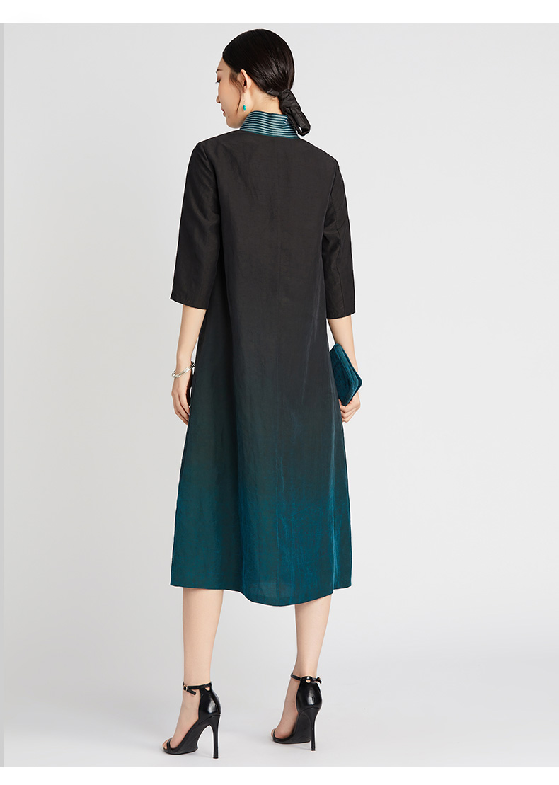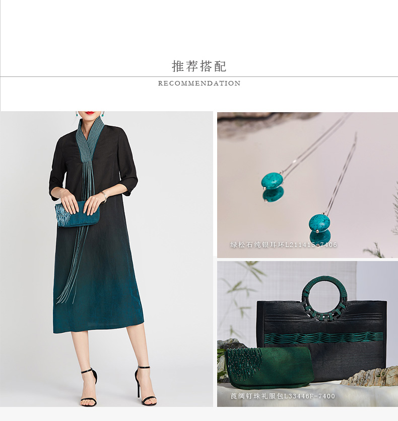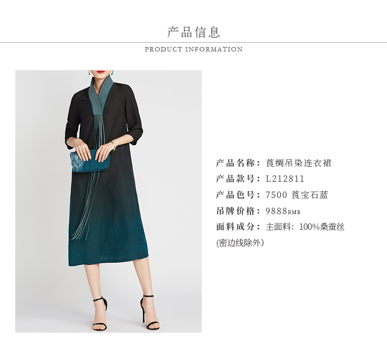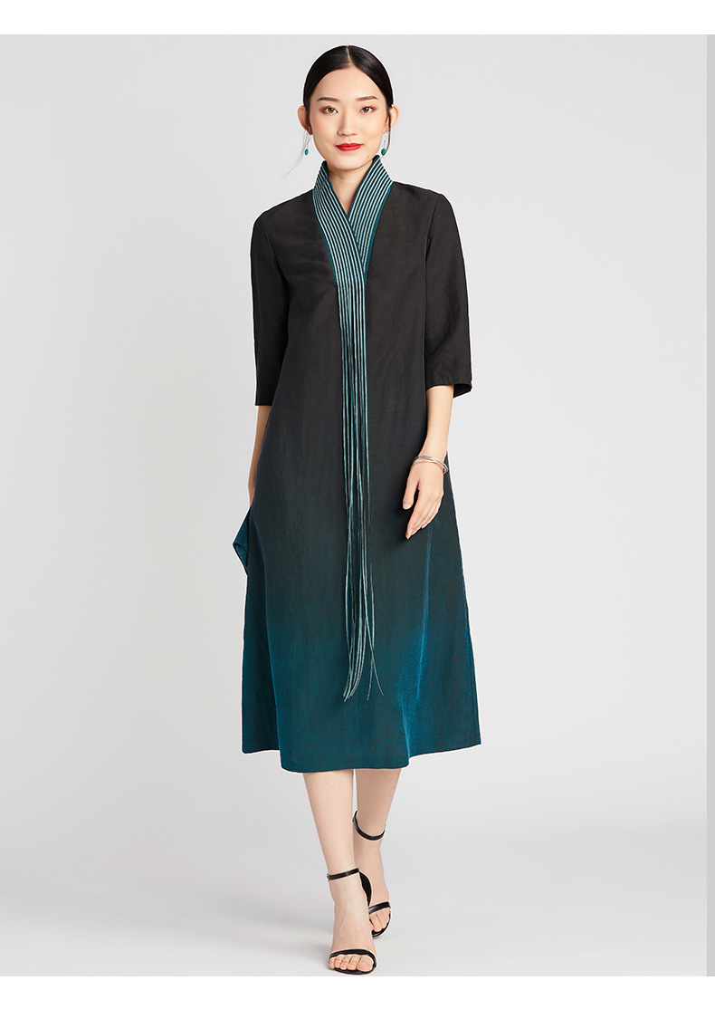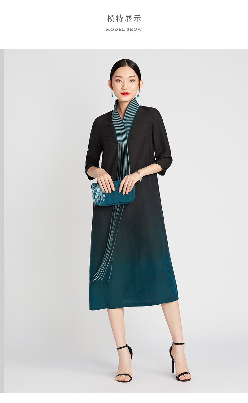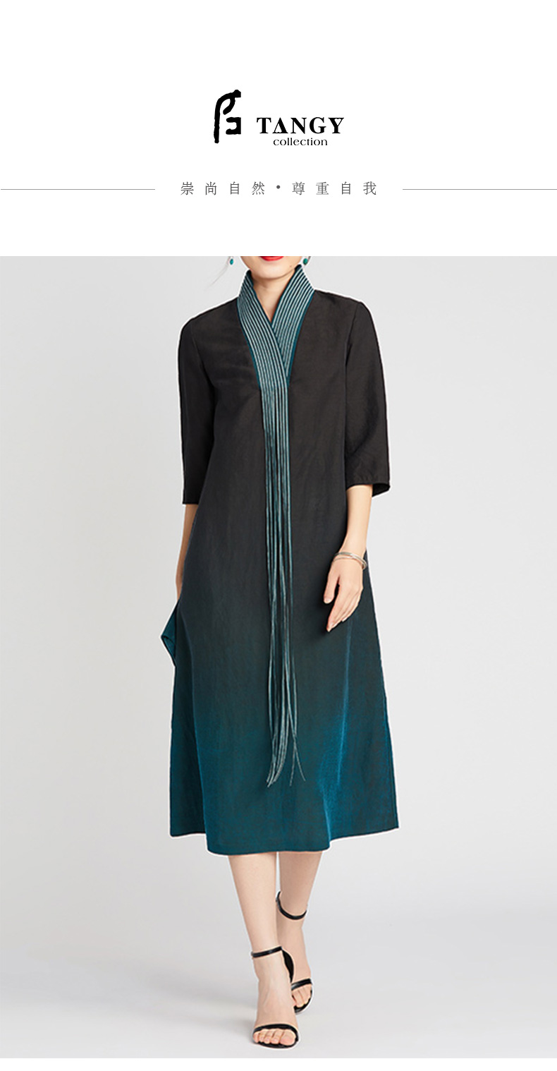 TANGY Collection/天意精品2021年夏季新品真丝流苏吊染莨绸连衣裙