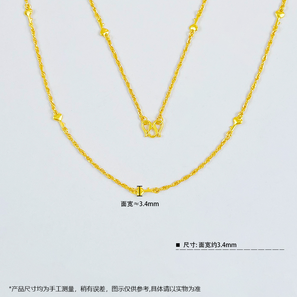 足金999.9 绞丝链间心形钥匙配件间款项链杂花链(AF010XL00041)补差价)补差价)预售产品下单后不退款不退货不换货不补差价