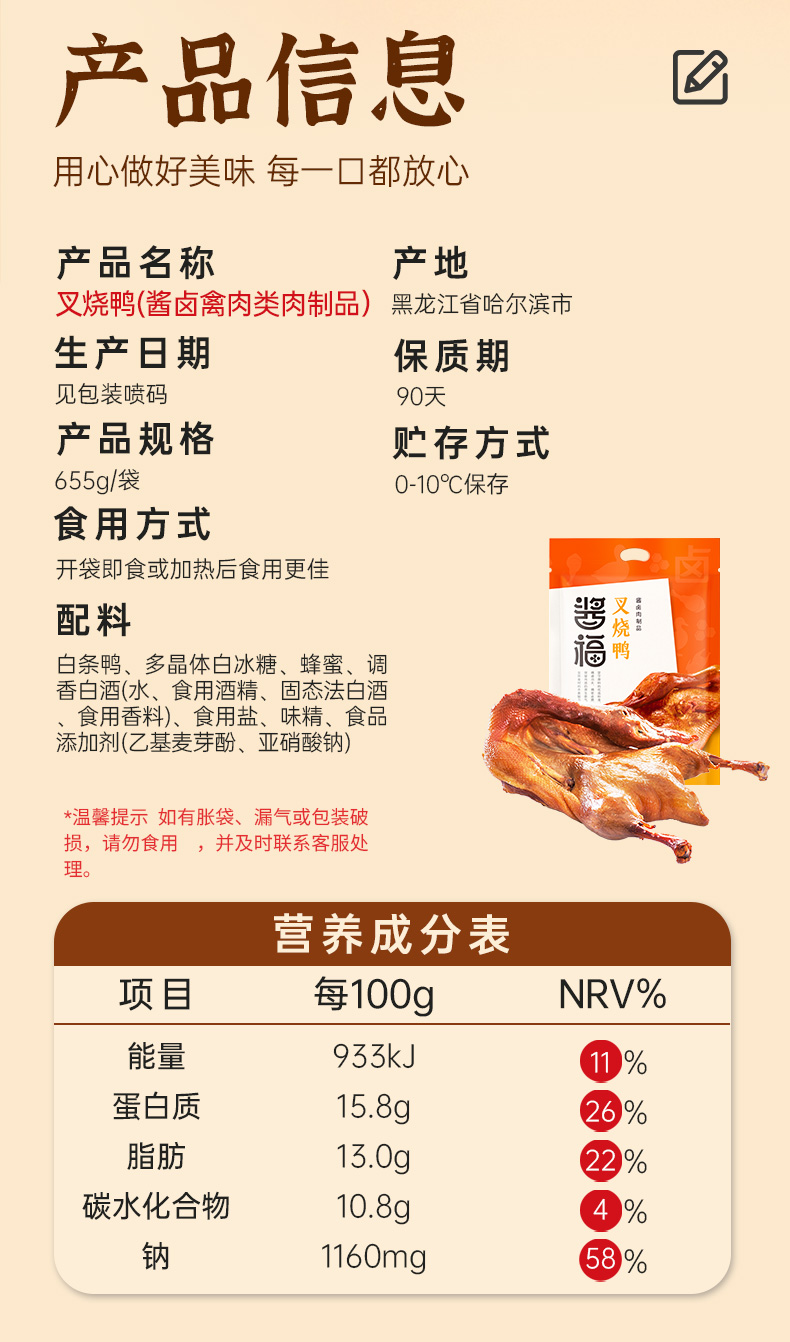 秋林里道斯酱福叉烧鸭655g