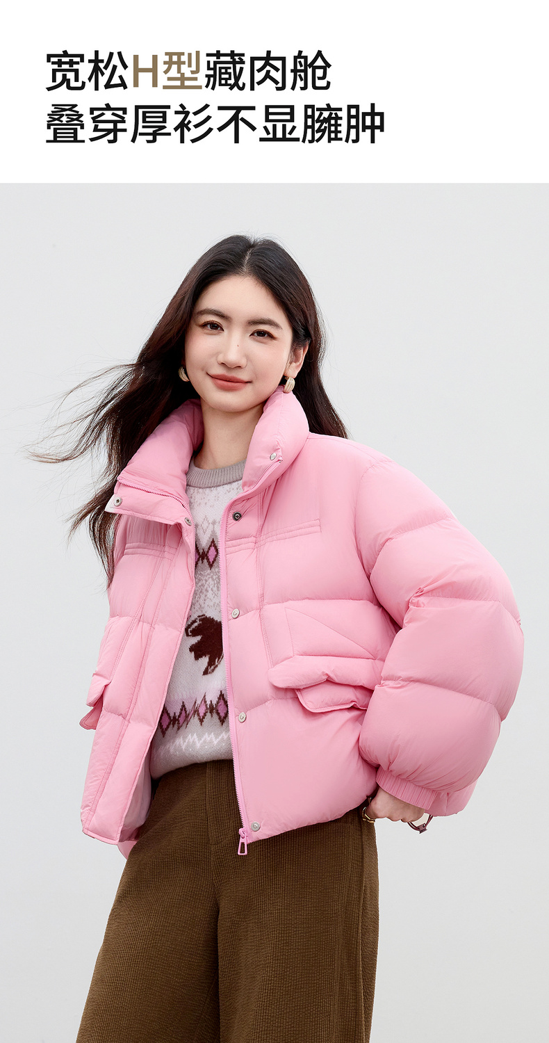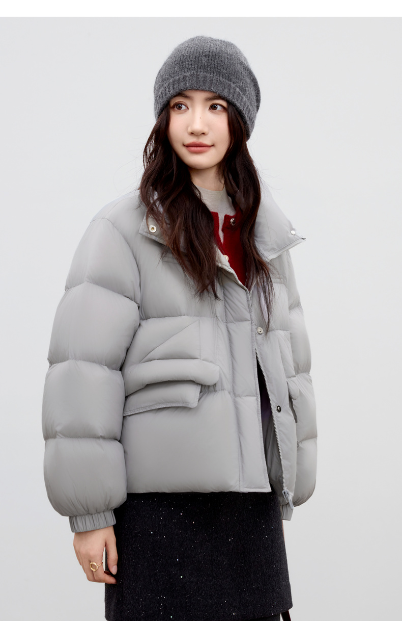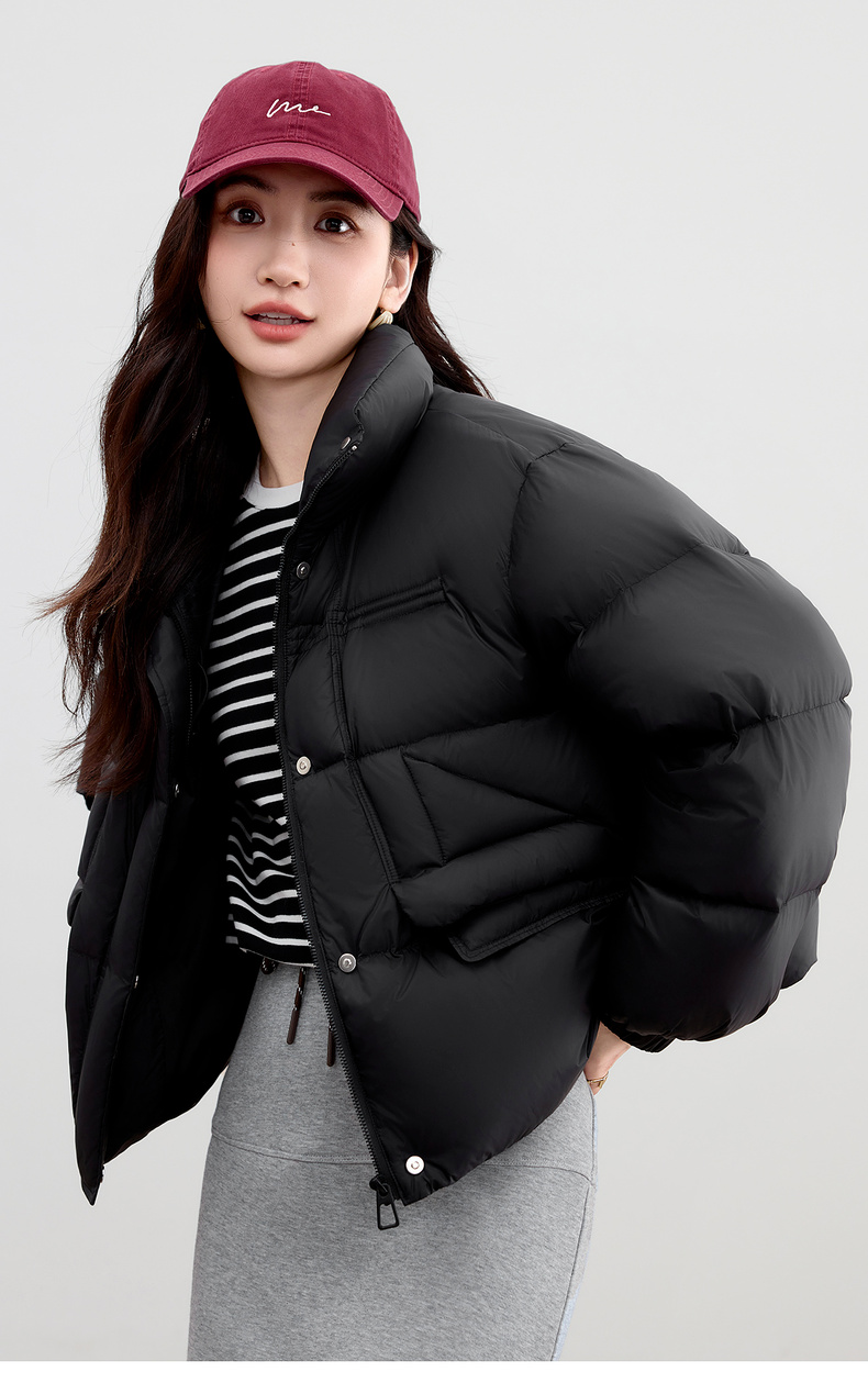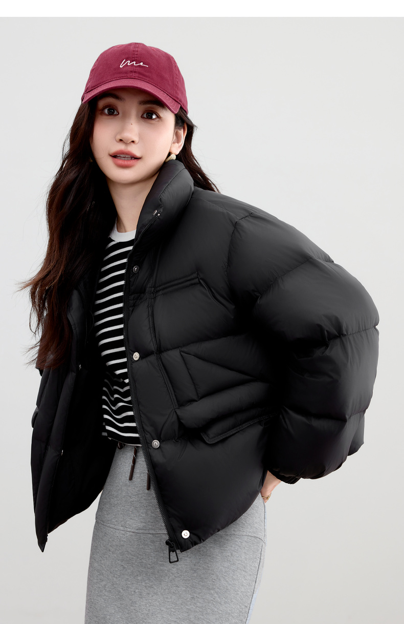 【内购】【90%白鸭绒】小个子通勤高立领拉链宽松蓬松保暖不臃肿短羽绒服-W54YC2158