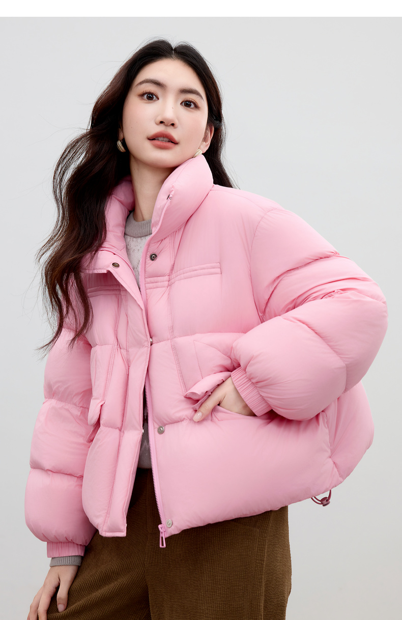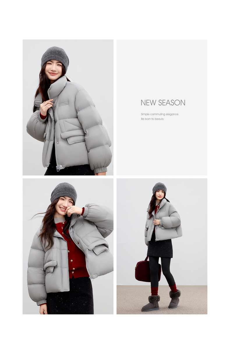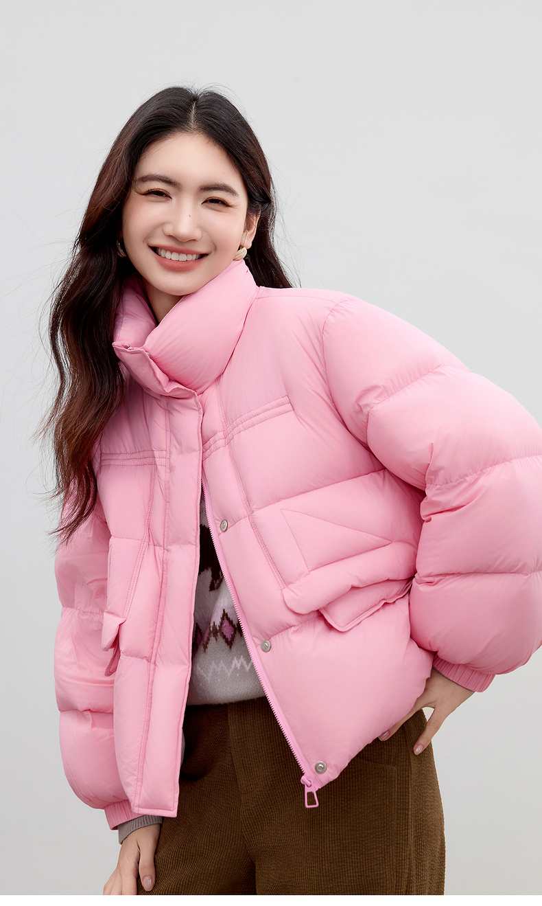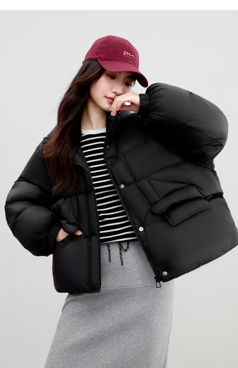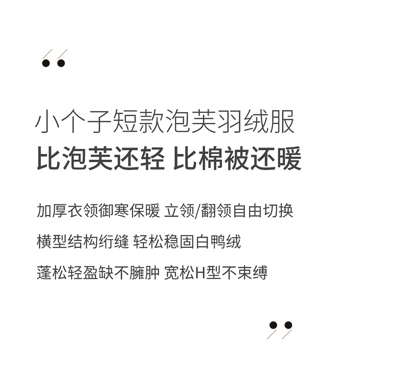 【内购】【90%白鸭绒】小个子通勤高立领拉链宽松蓬松保暖不臃肿短羽绒服-W54YC2158