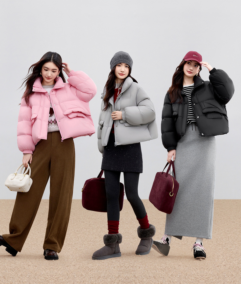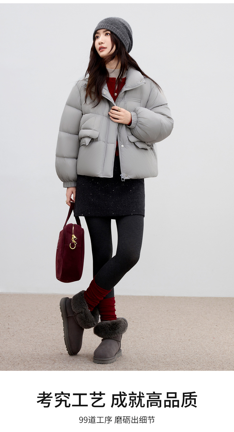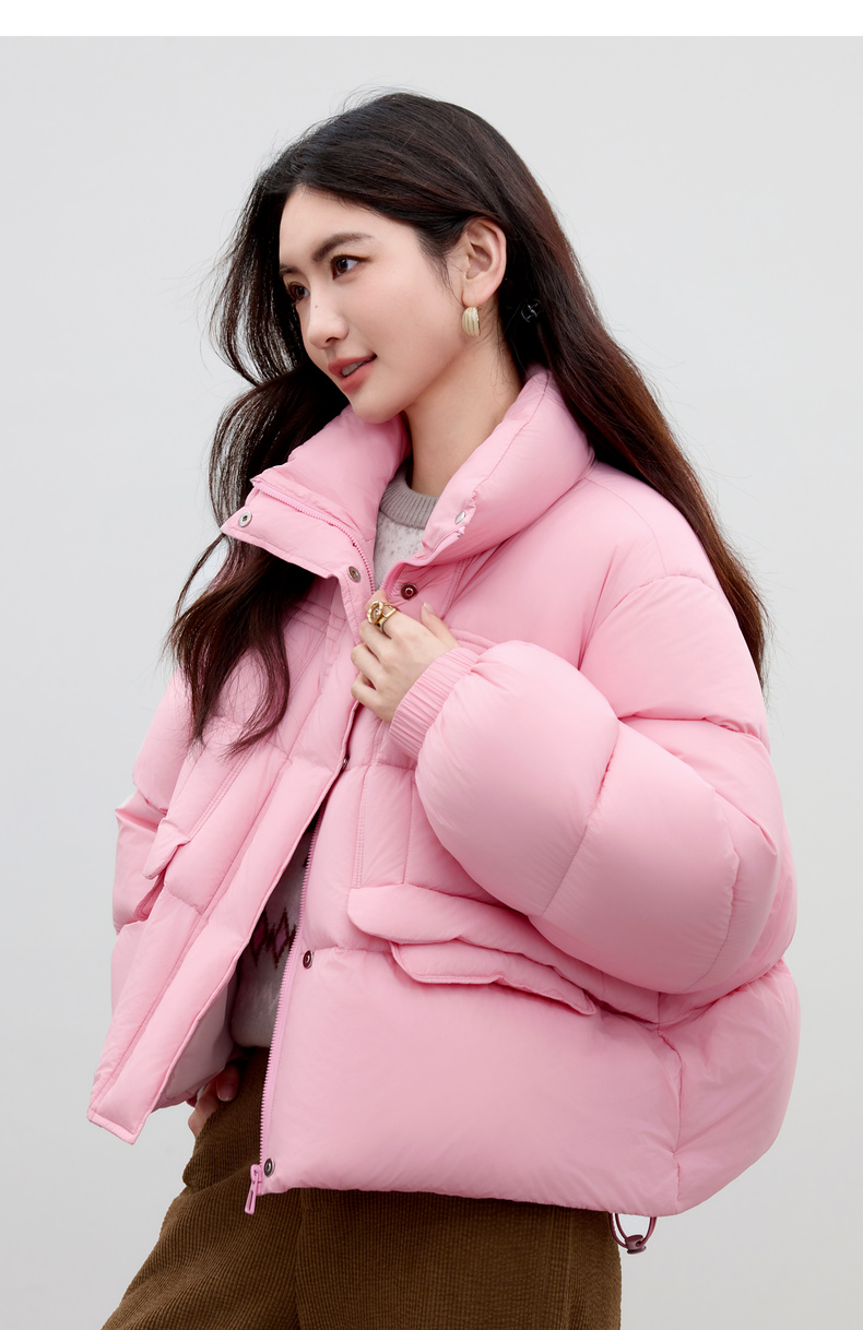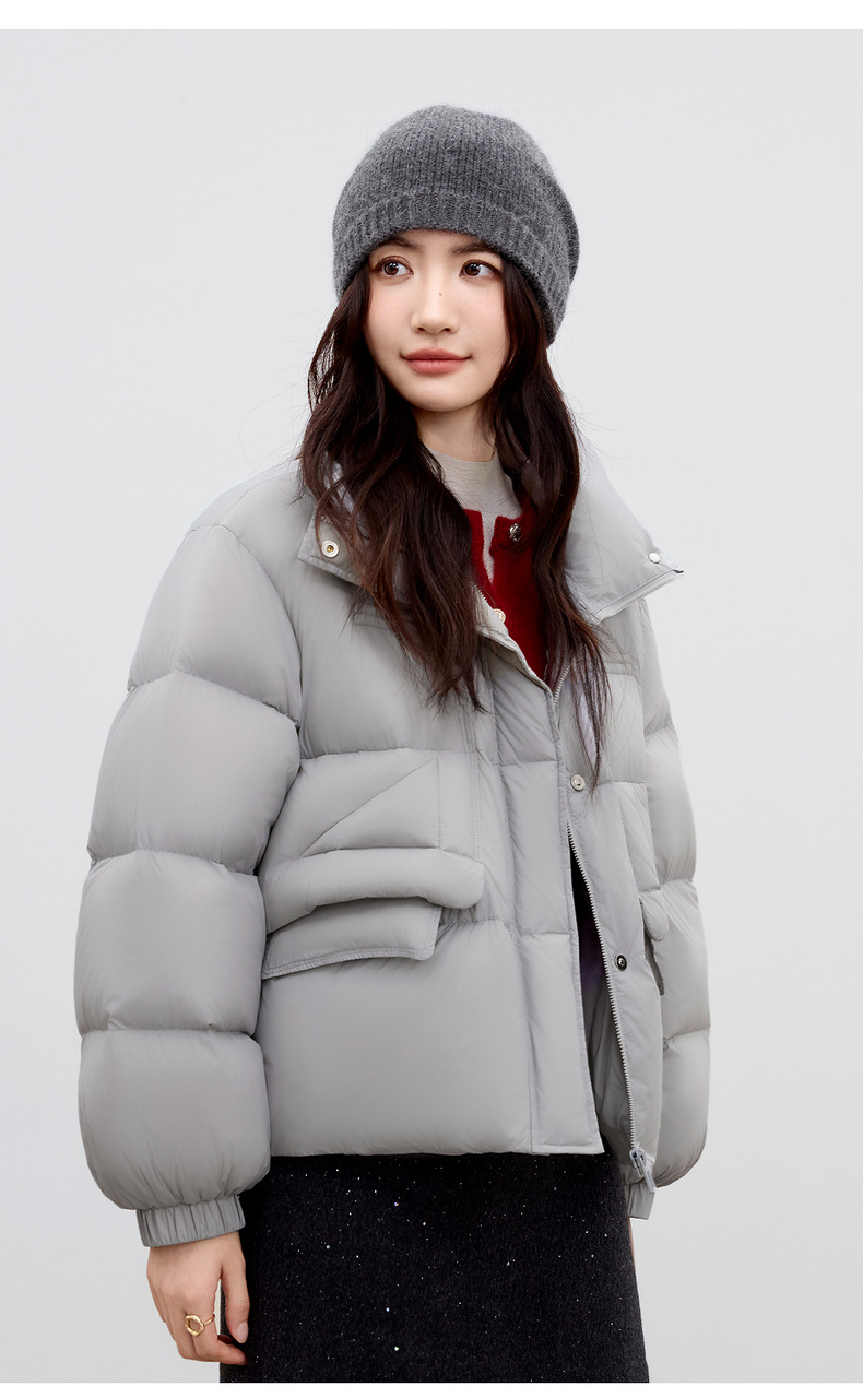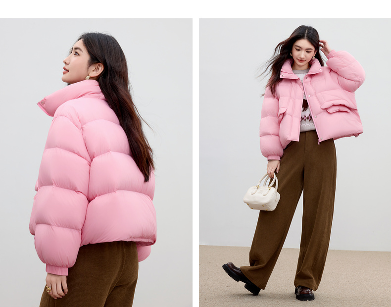 【内购】【90%白鸭绒】小个子通勤高立领拉链宽松蓬松保暖不臃肿短羽绒服-W54YC2158
