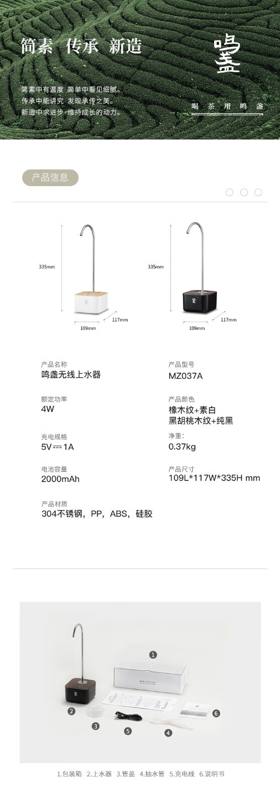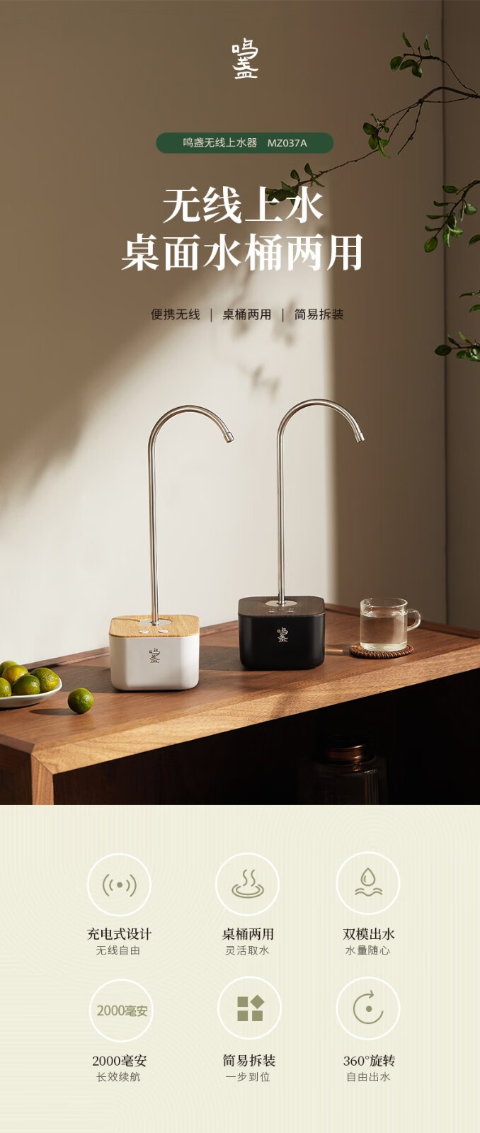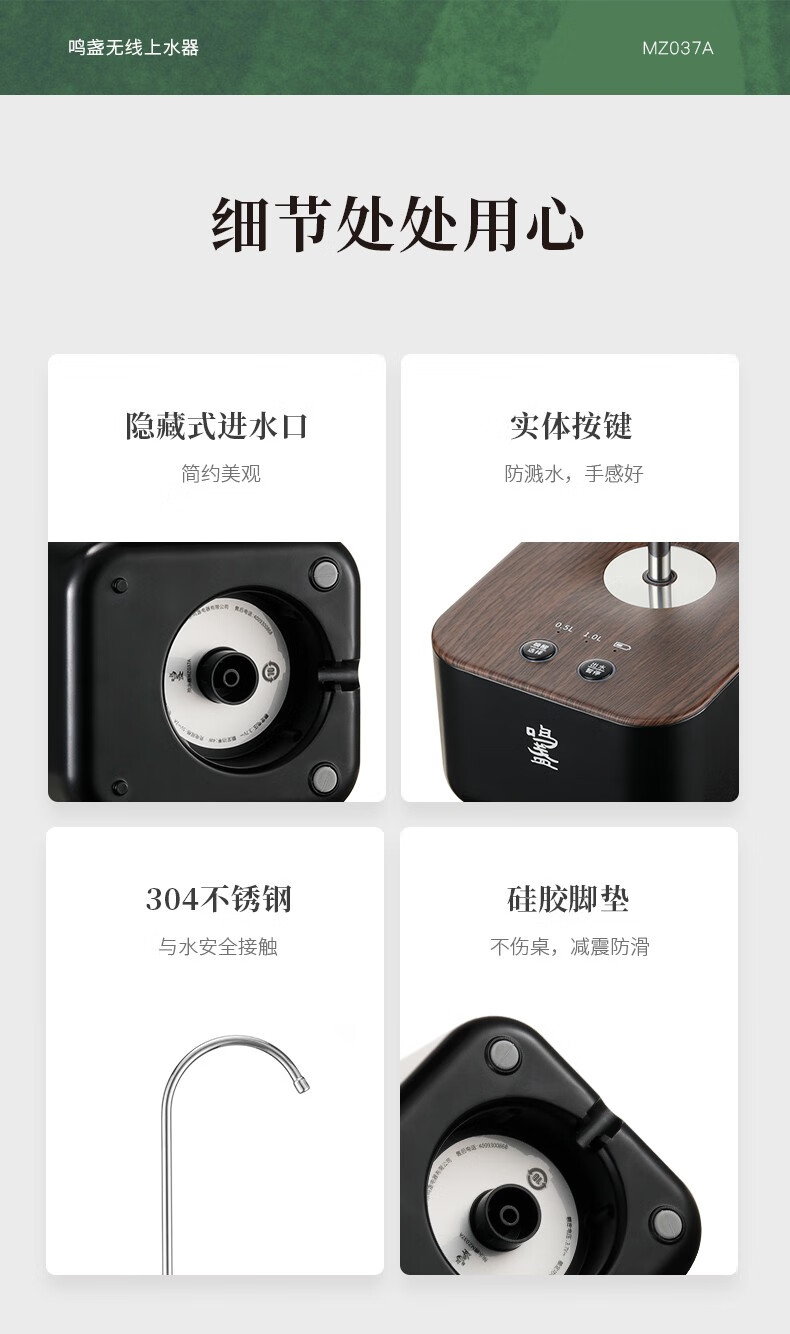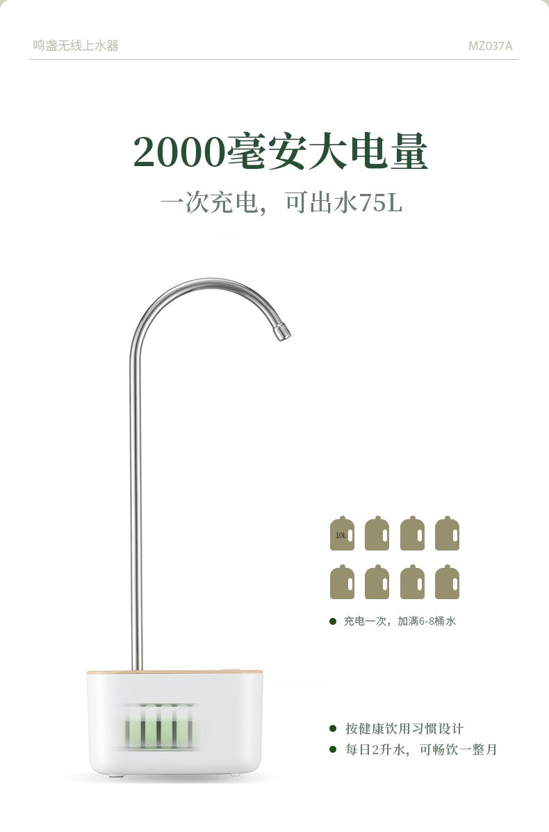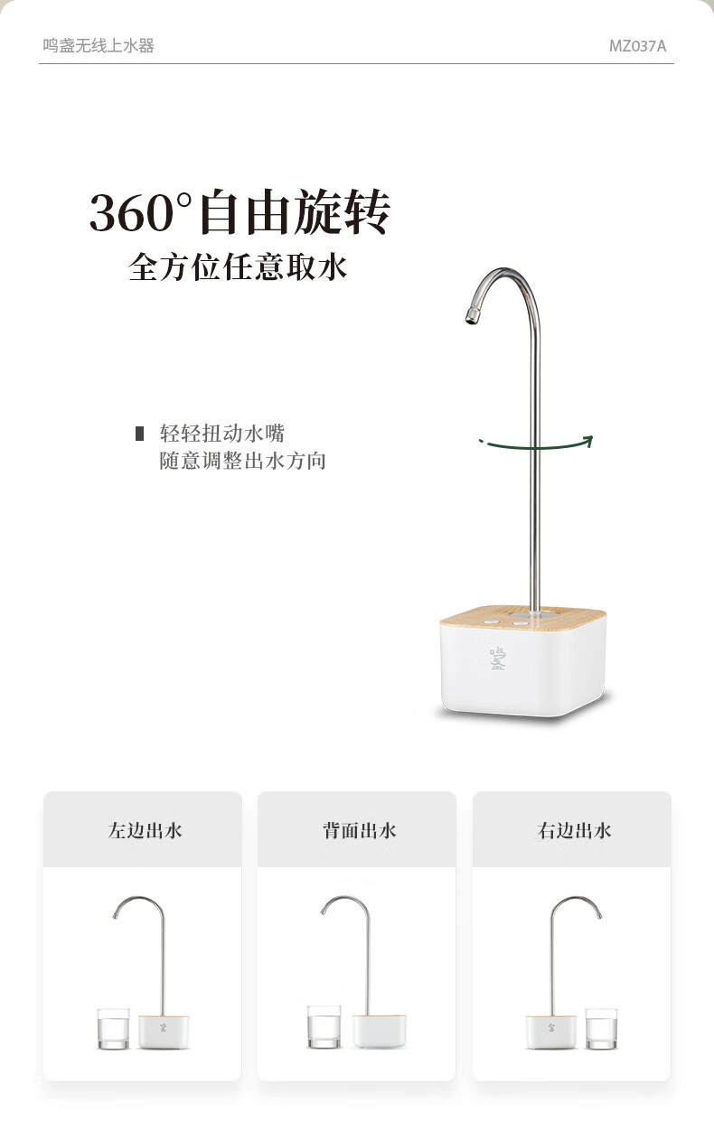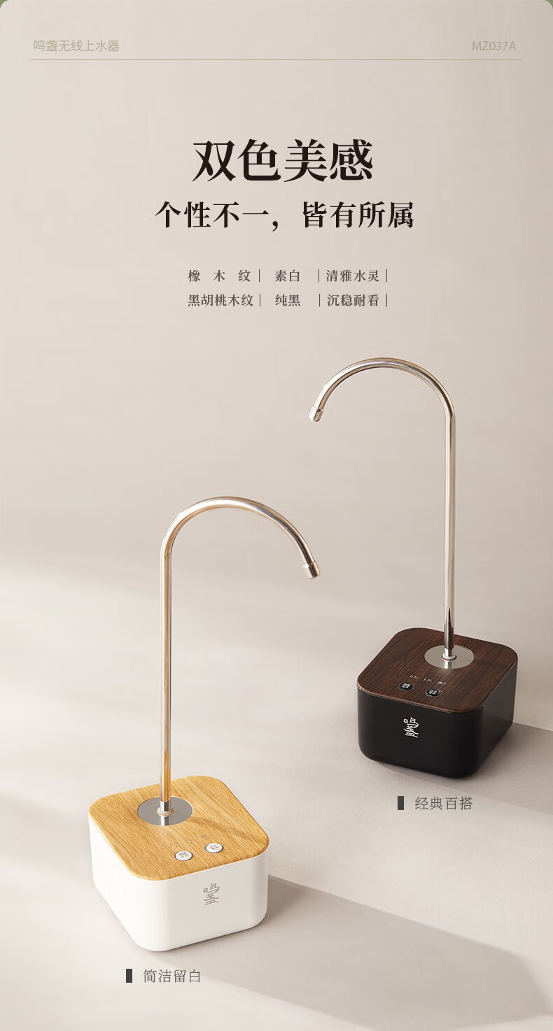 鸣盏|上水器 桶装水电动抽水器 MZ-037A【可搭配MZ-072T和MZ-1151电水壶使用】 MZ-037A黑色
