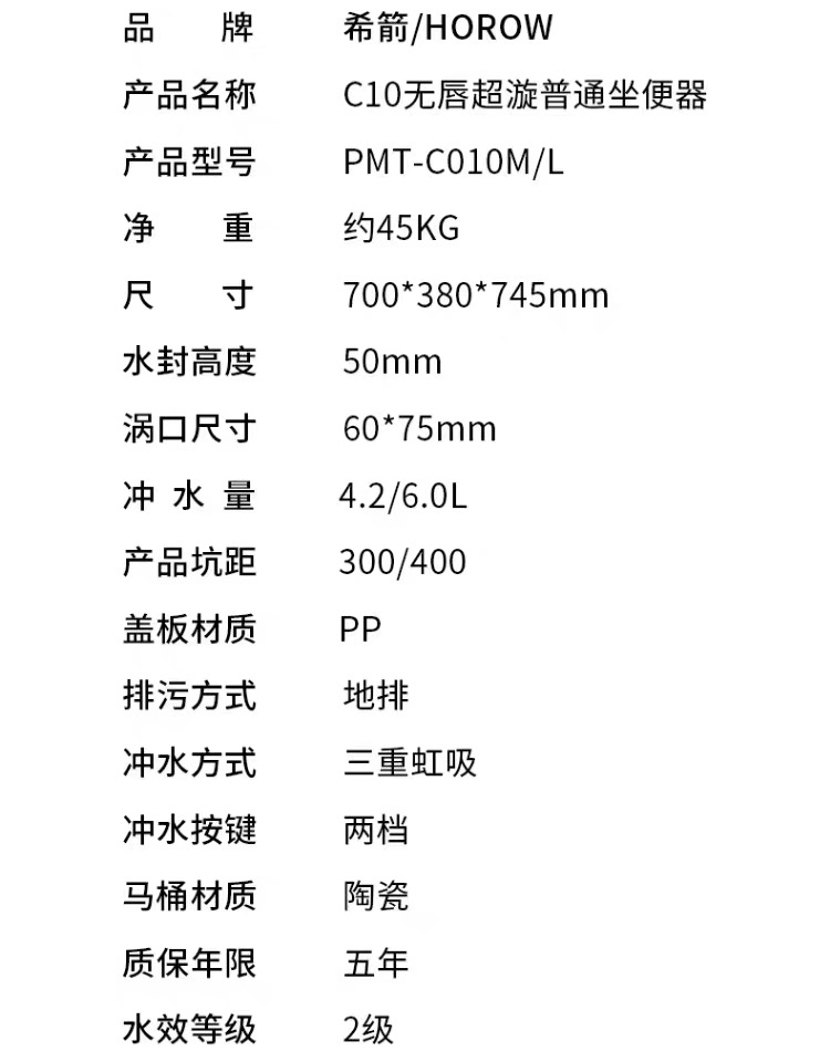 【北京】【希箭】C10 无唇超漩普通坐便器大冲力马桶