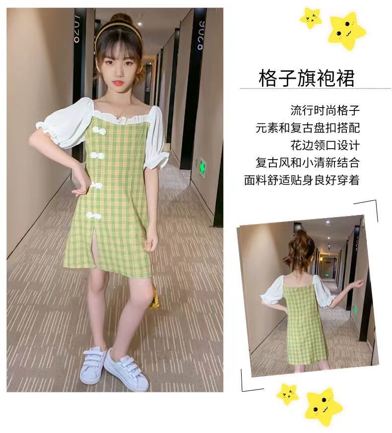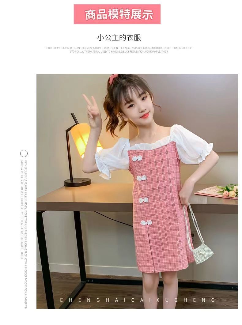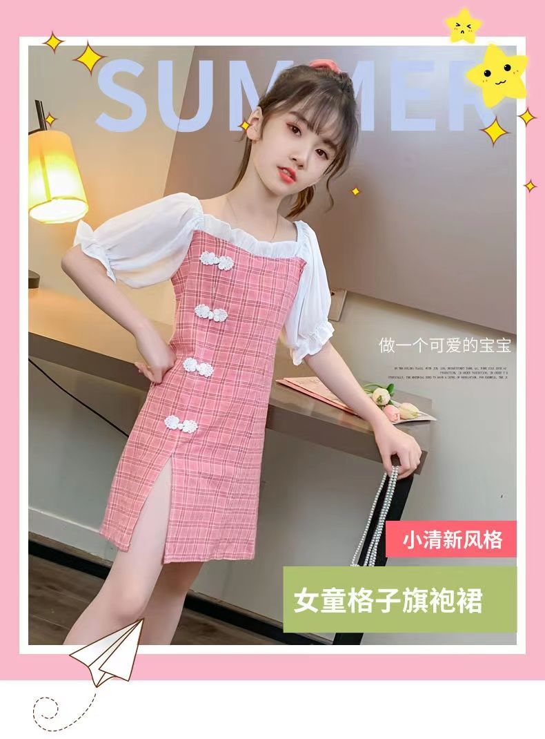 黛唯梵 女童直筒连衣裙2022新款夏装小女孩旗袍洋气公主裙儿童辣妹裙超仙国庆出游