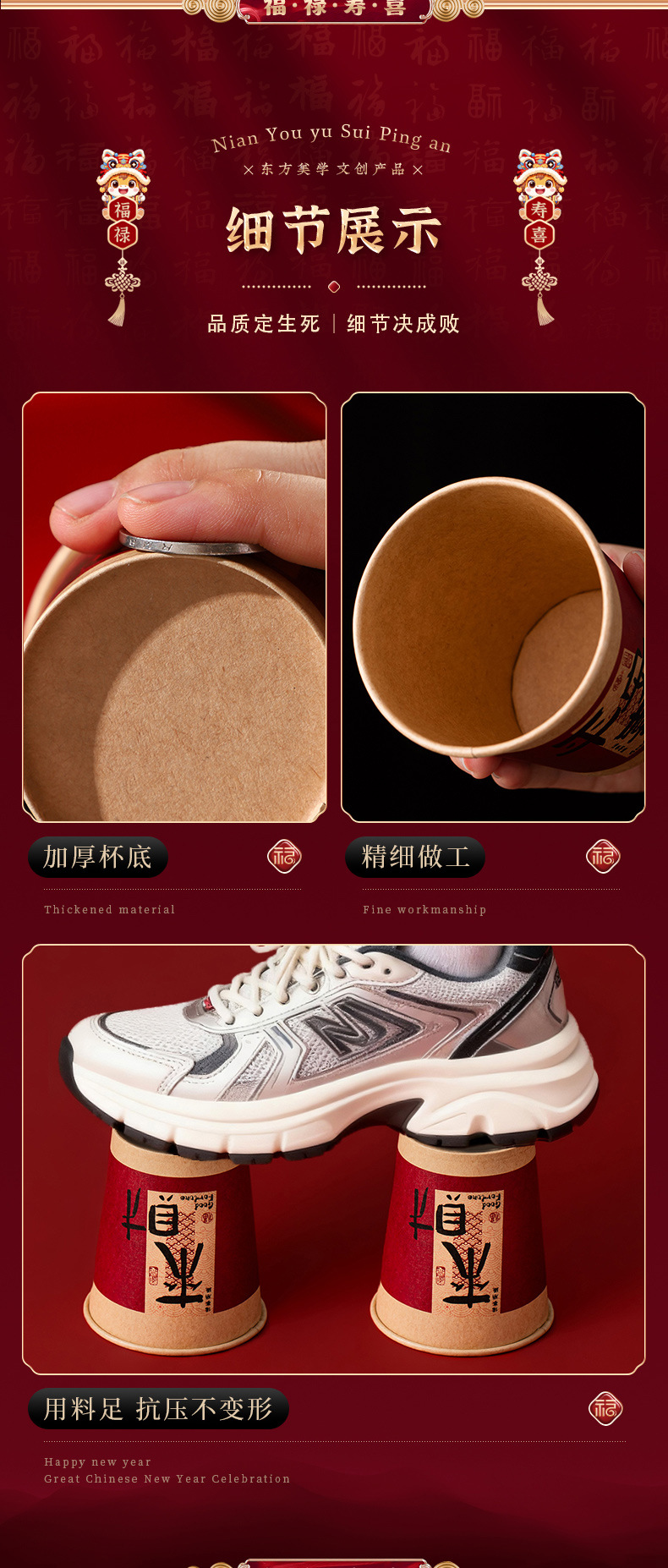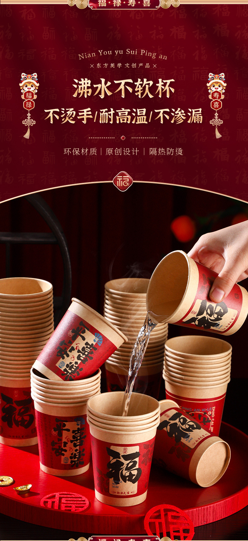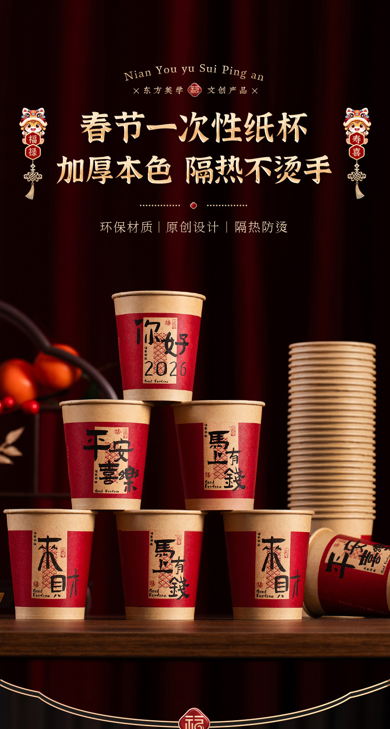 【新款马年一次性纸杯】加厚家用红色喝水杯 新年过年春节喜庆用品