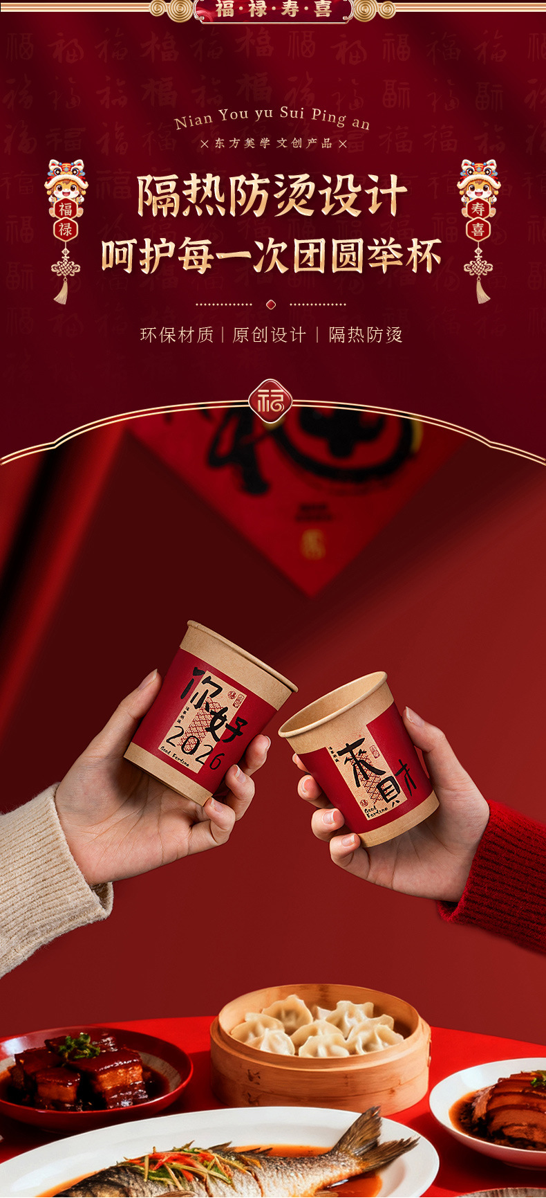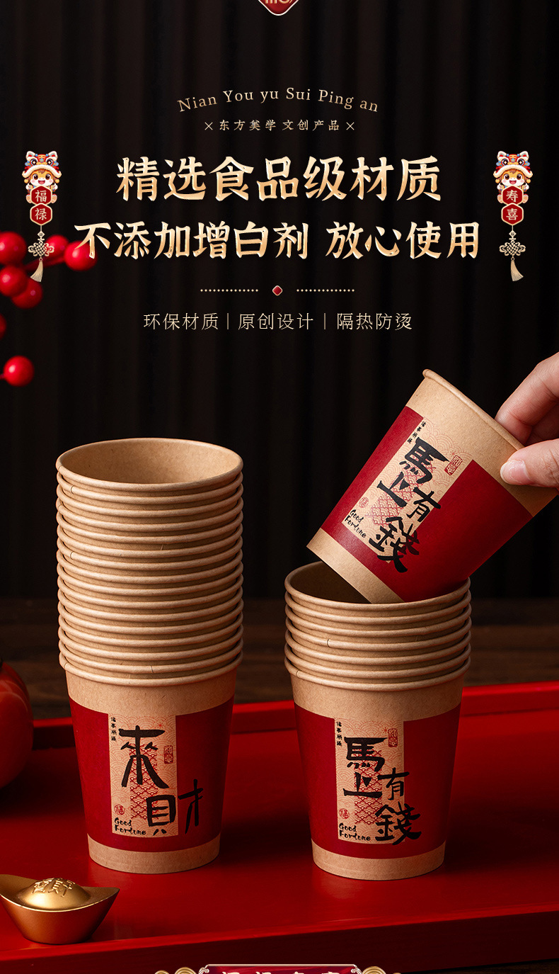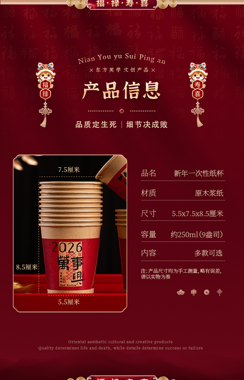 【新款马年一次性纸杯】加厚家用红色喝水杯 新年过年春节喜庆用品