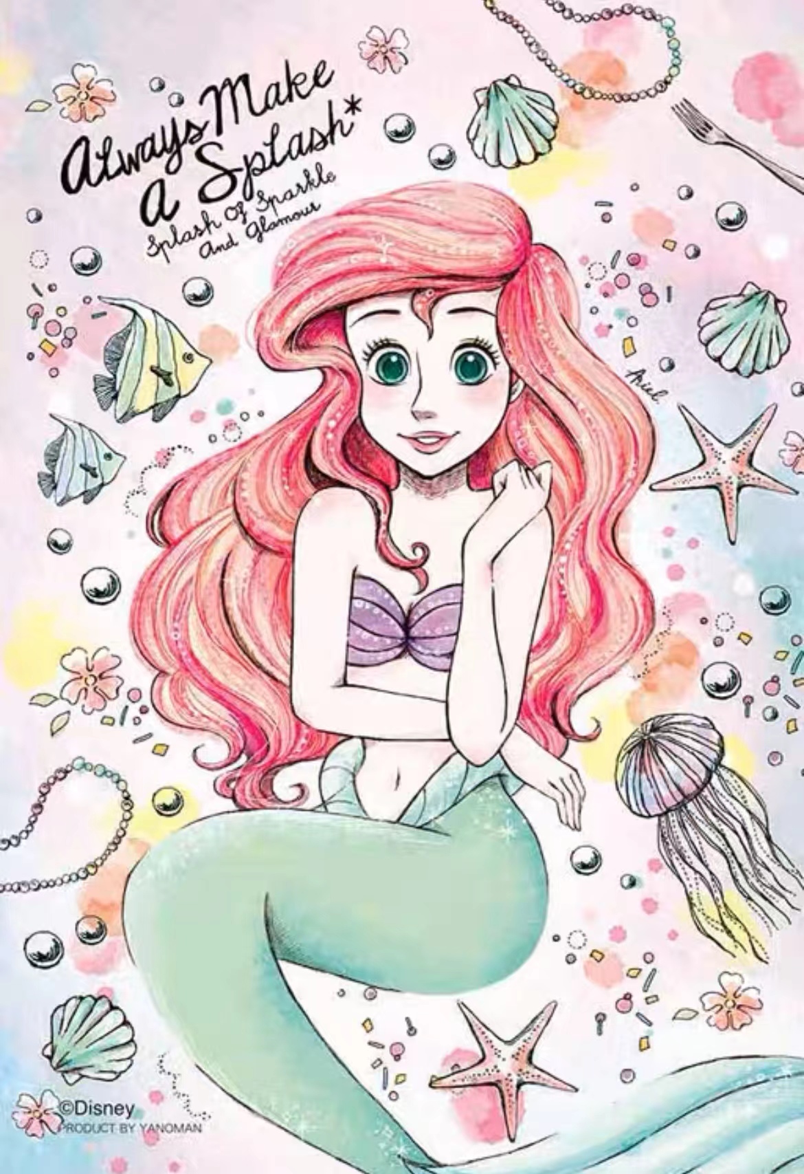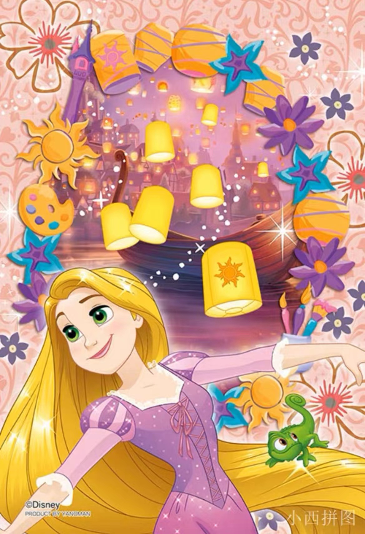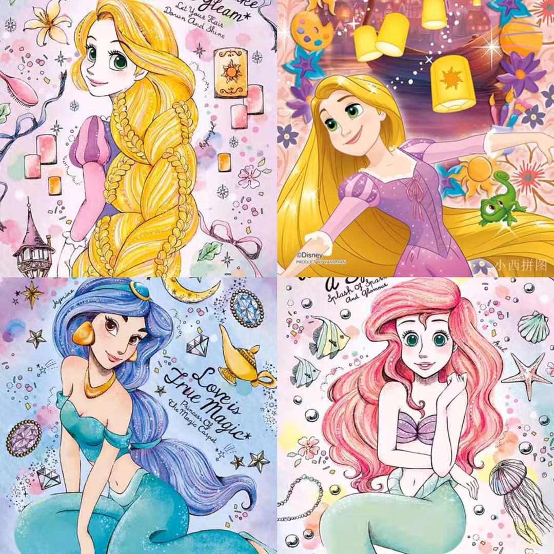 日本进口/Yanoman/透明拼图/70片/迪士尼公主/艾莎/长发/爱丽儿/贝儿/冰雪奇缘