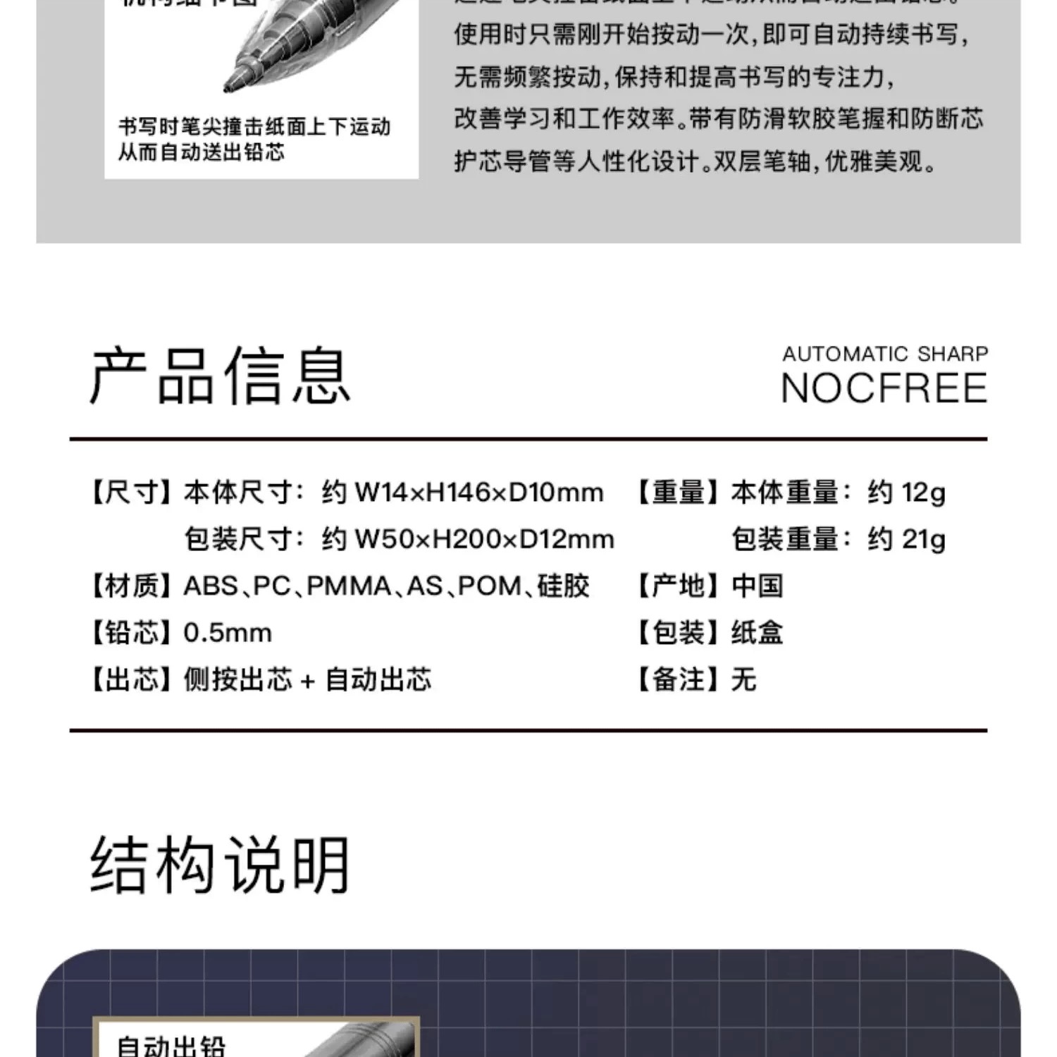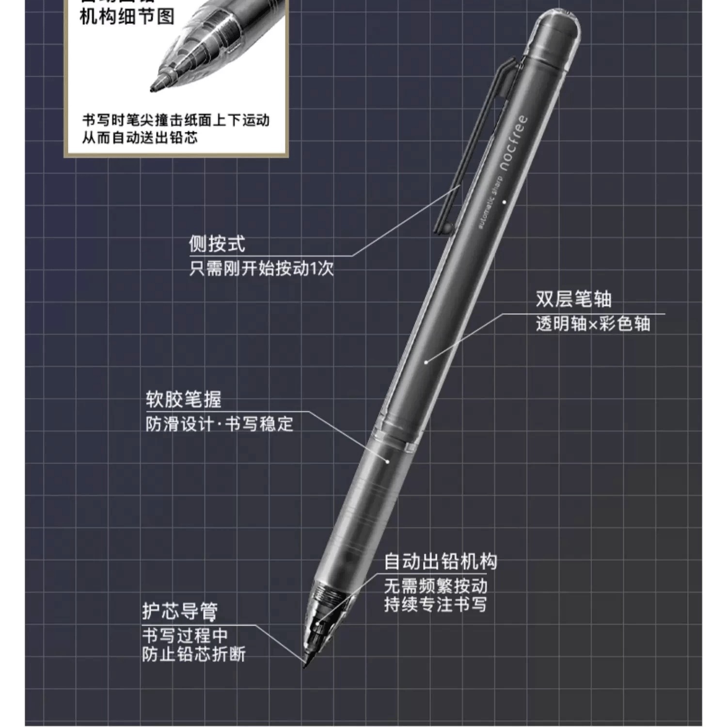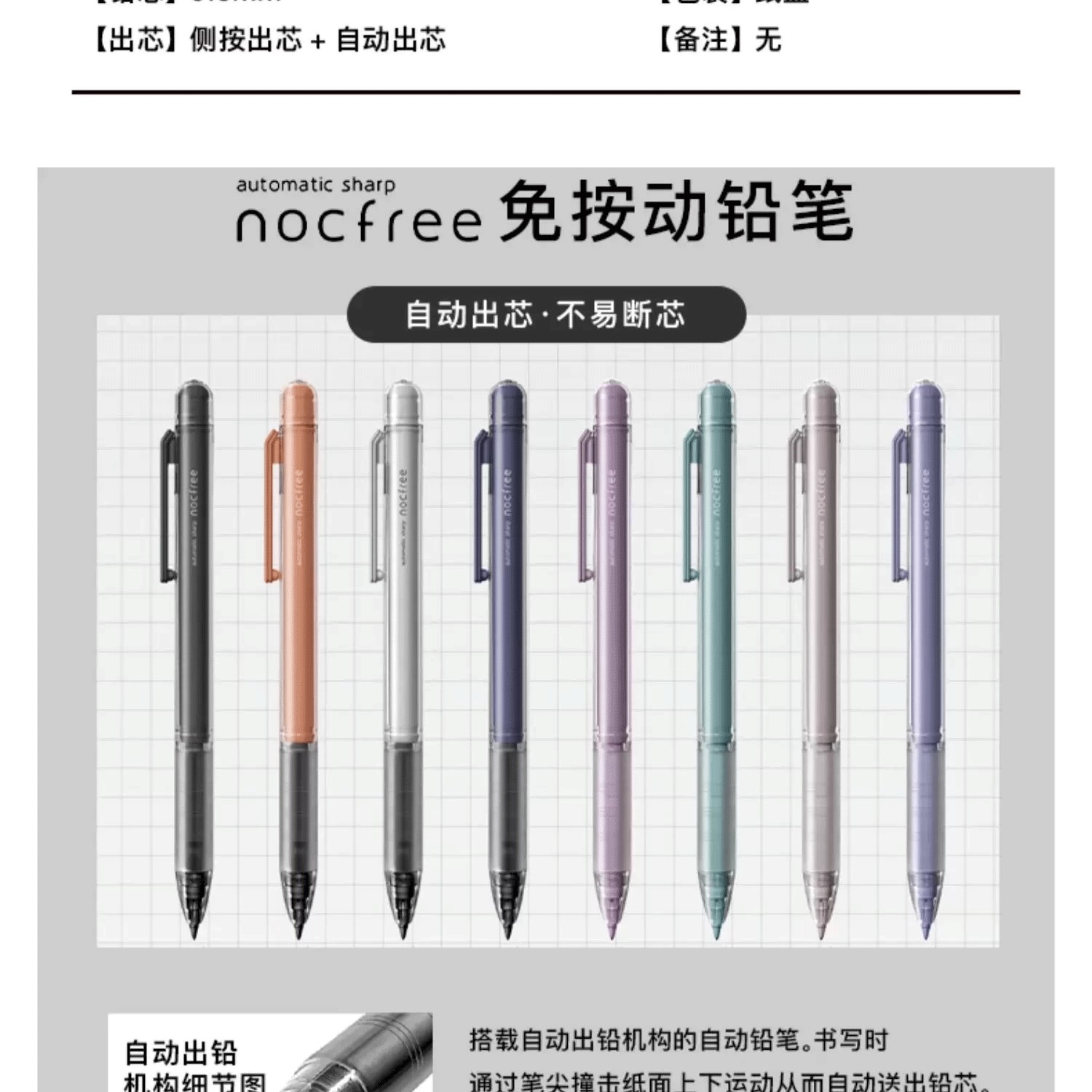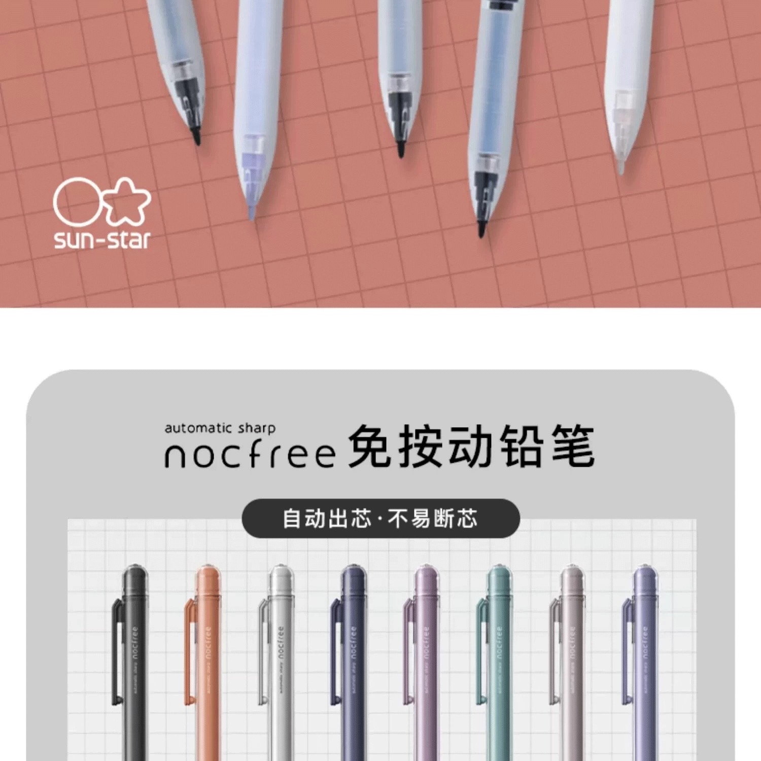 日本SUN-STAR太阳星NOCFREE免按动自动出铅自动铅笔0.5mm