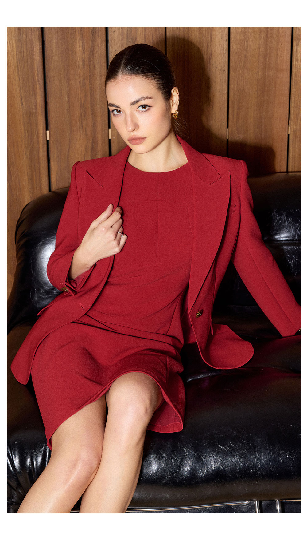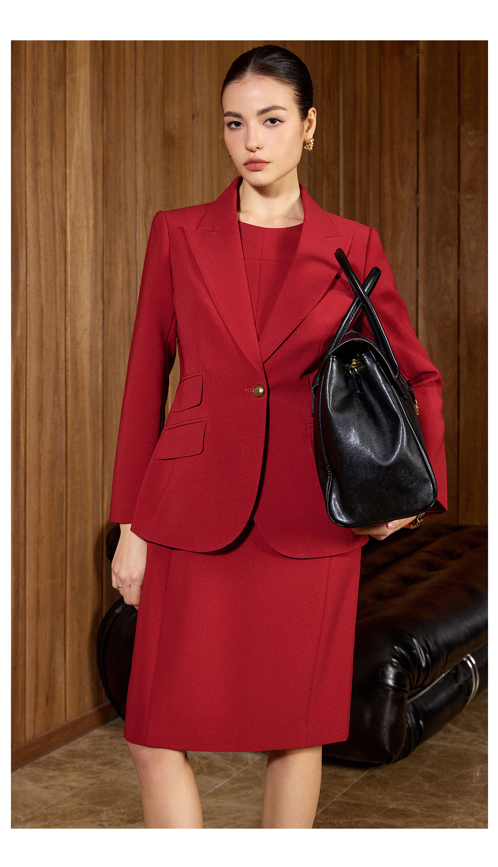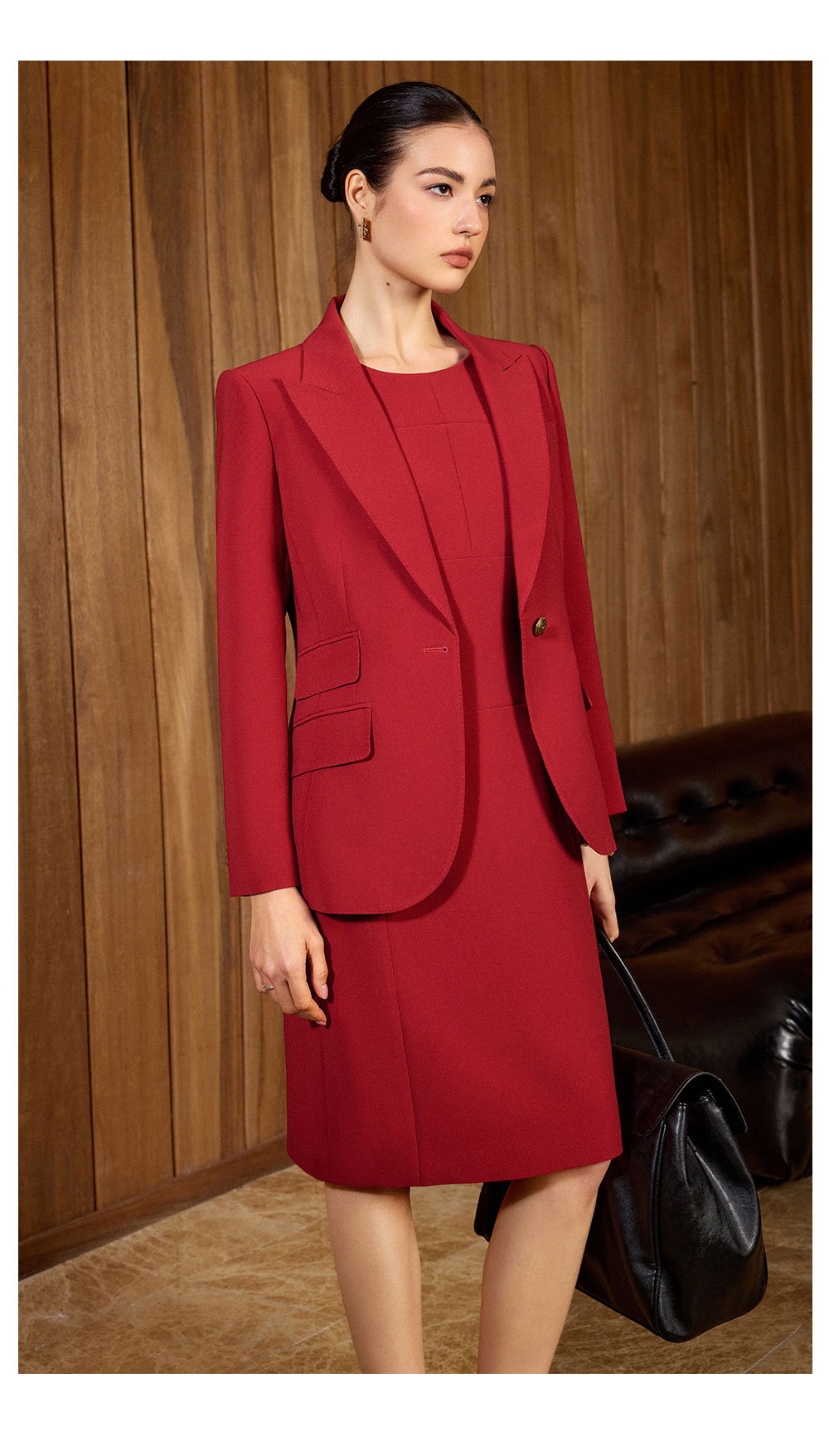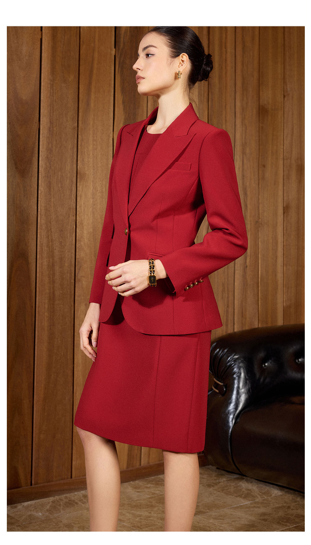IWY/高端职业装气质女神范职场套装新年红色年会宴会连衣裙两件套C2565+Q1501