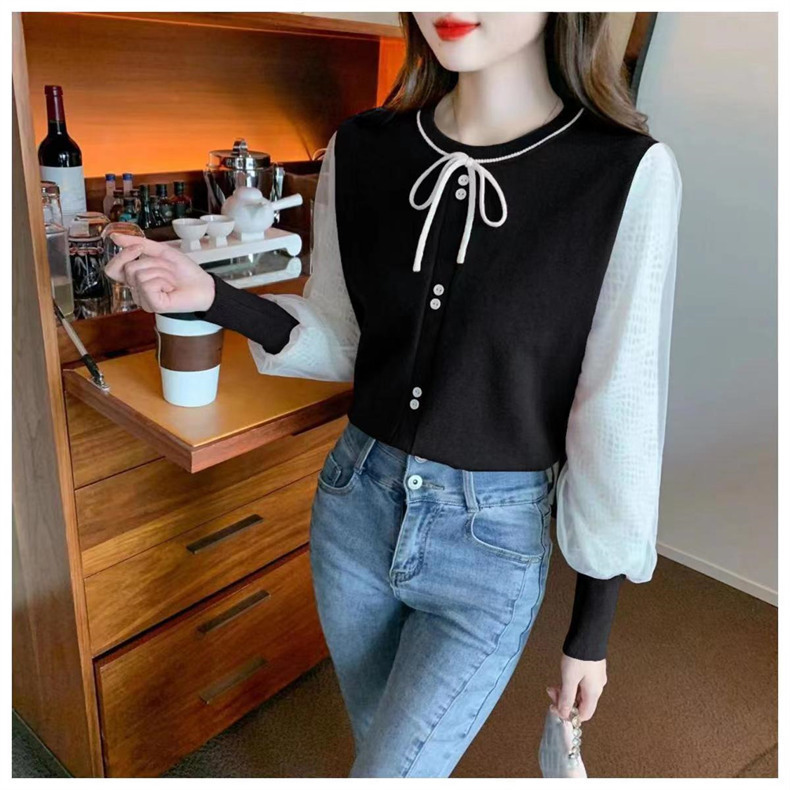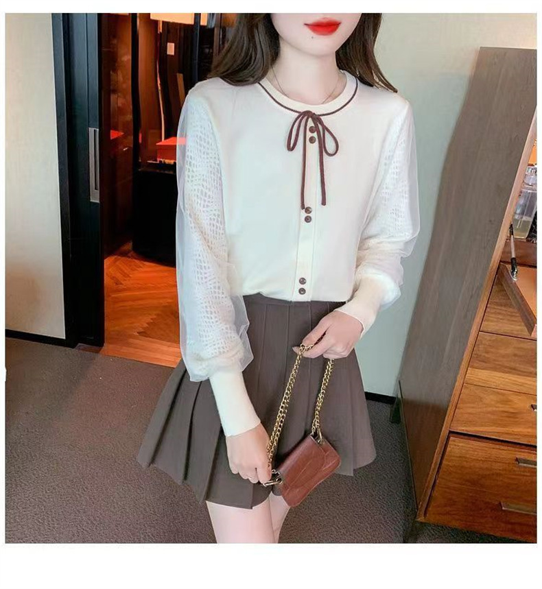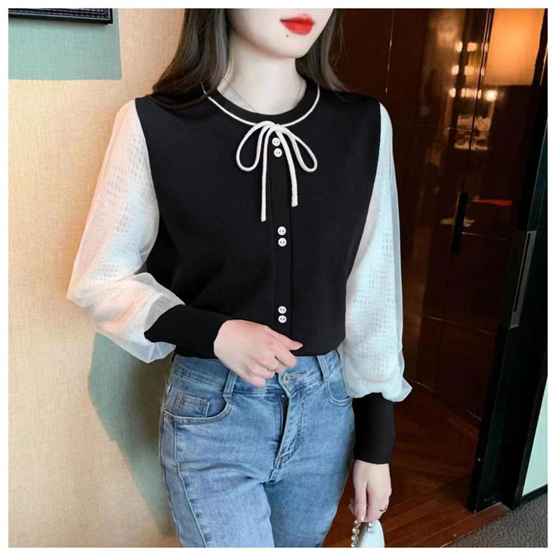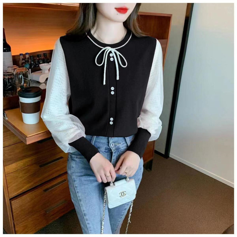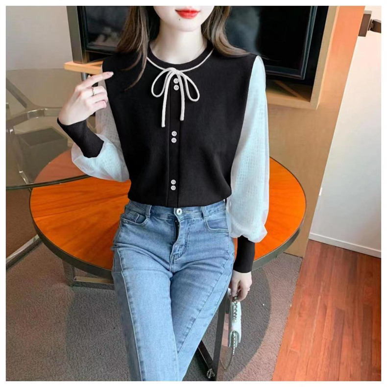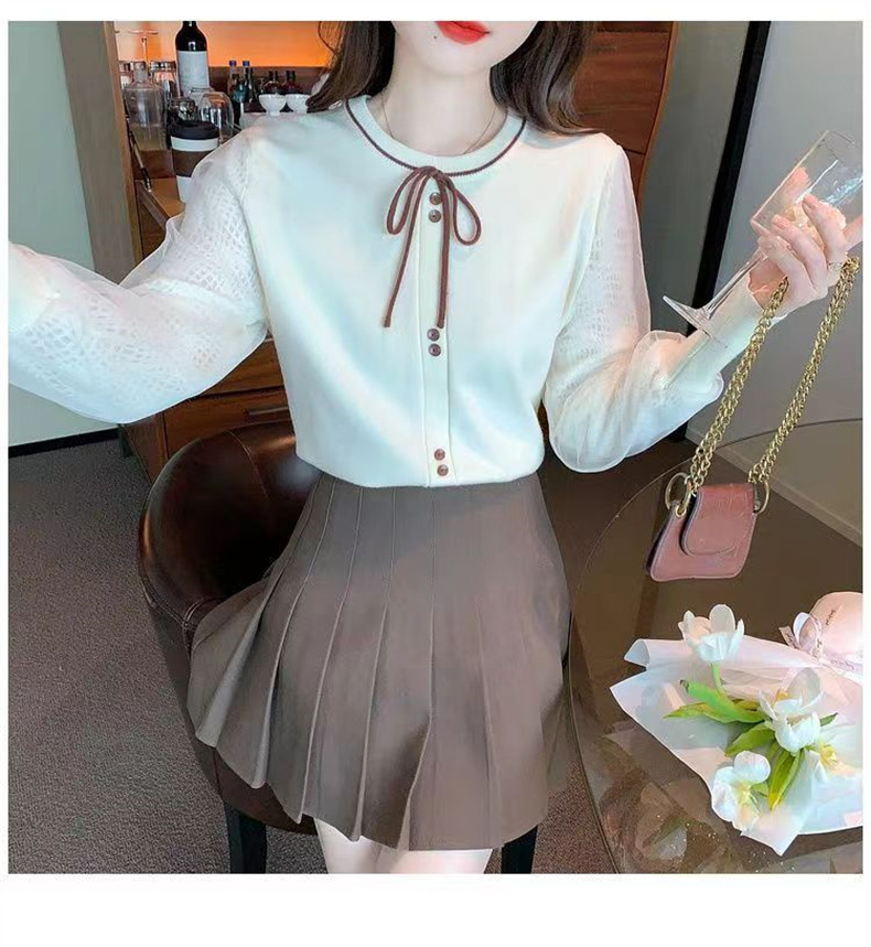 【系带蝴蝶结针织打底衫】春秋装 小香风气质内搭上衣潮流 时尚与优雅结合