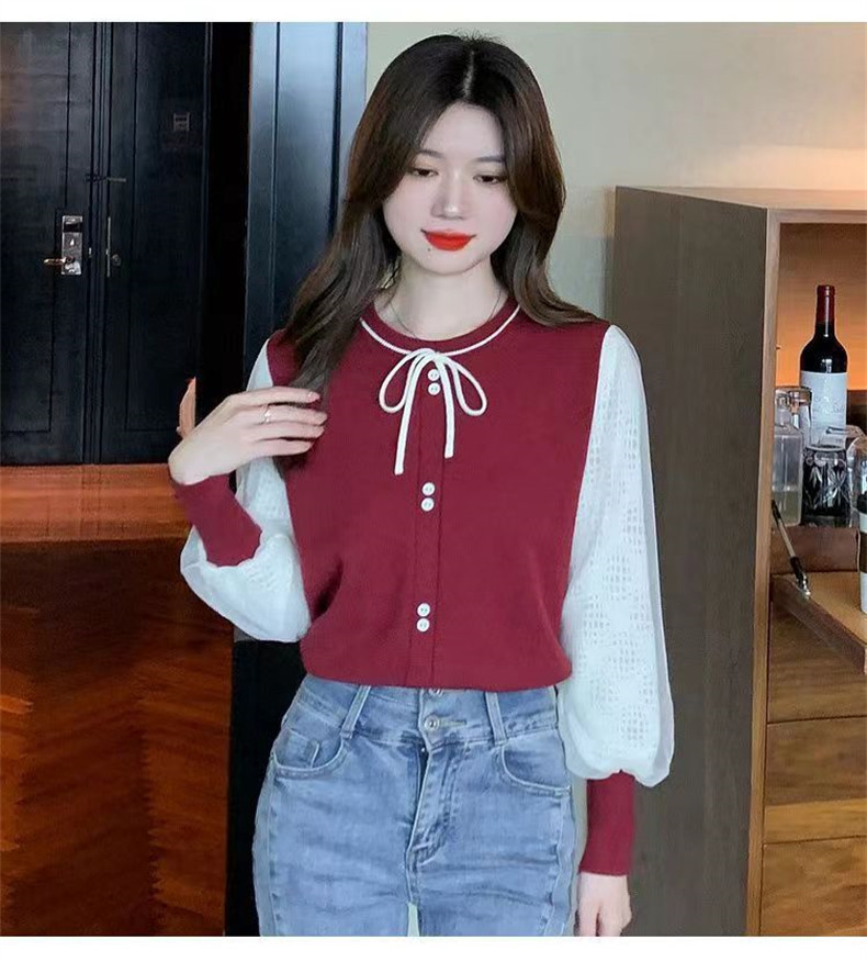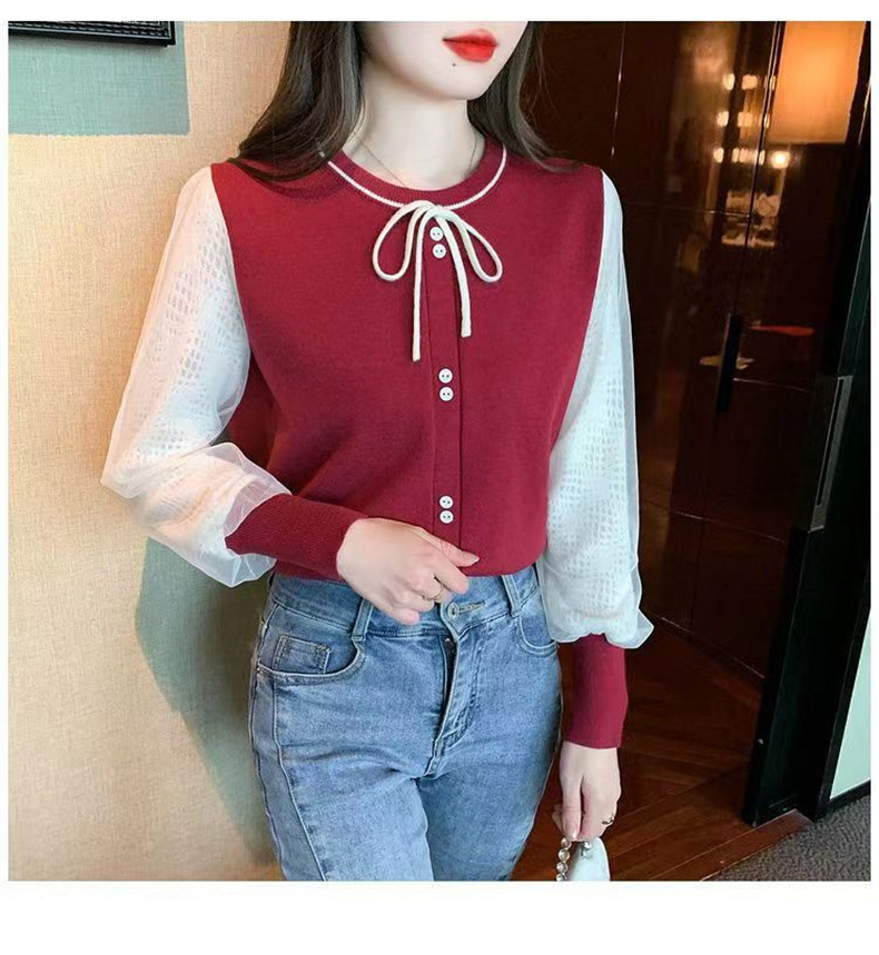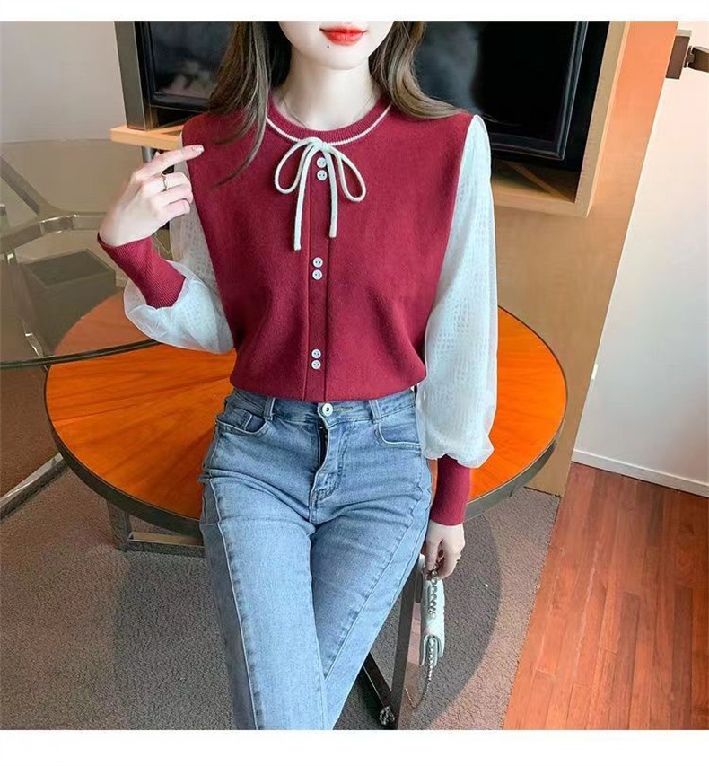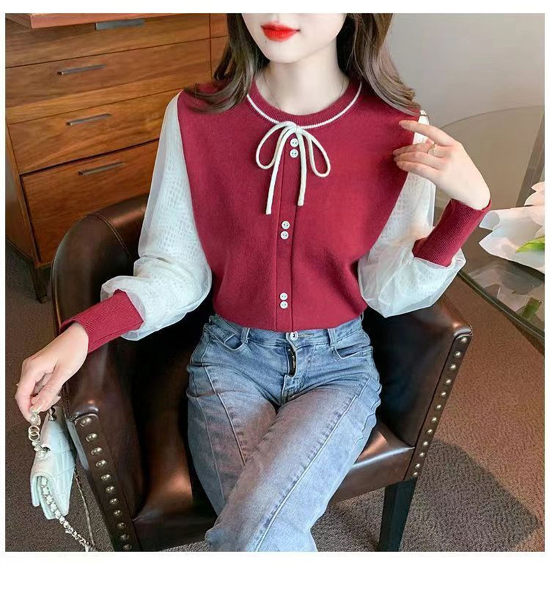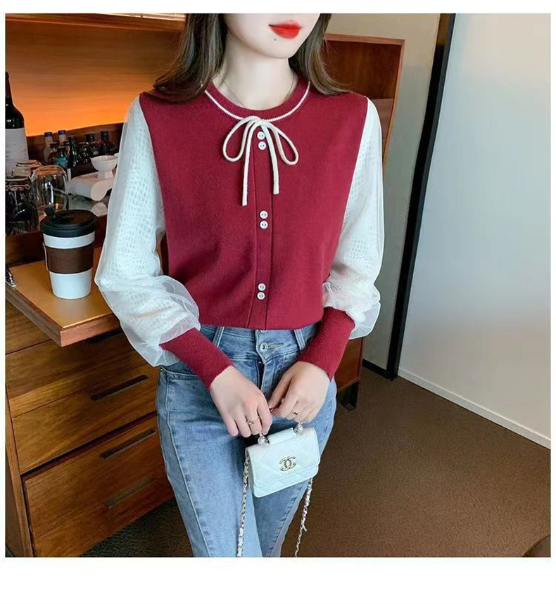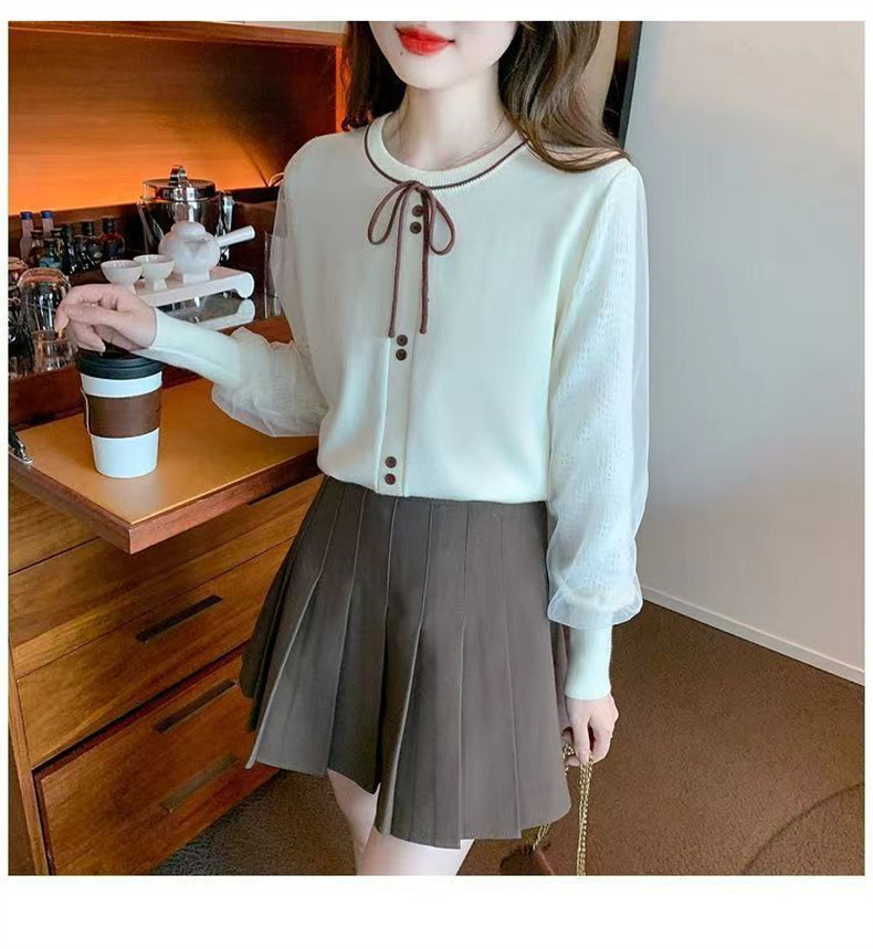【系带蝴蝶结针织打底衫】春秋装 小香风气质内搭上衣潮流 时尚与优雅结合