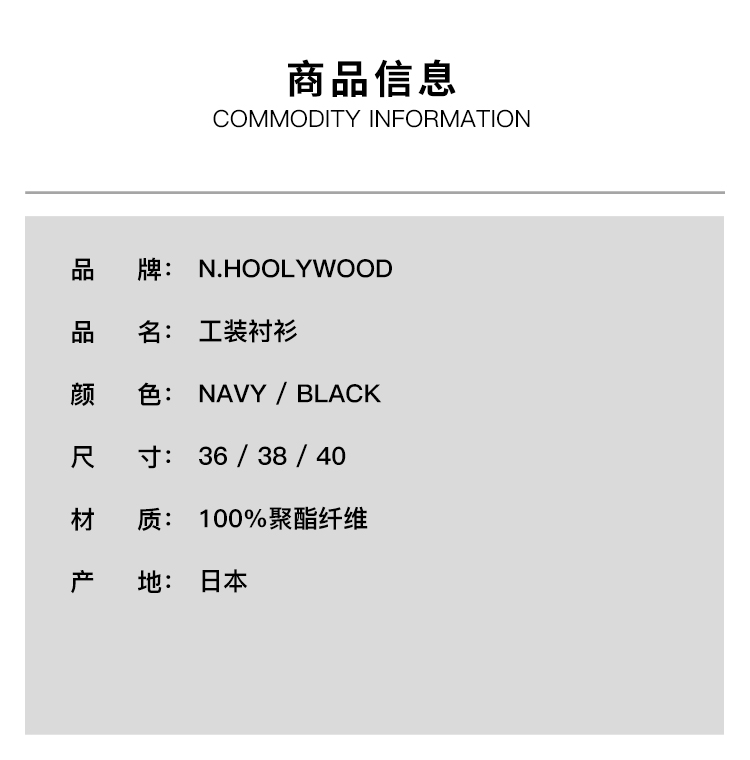 N.HOOLYWOOD CPO SHIRT 男装军事系列超轻量工装长袖衬衫
