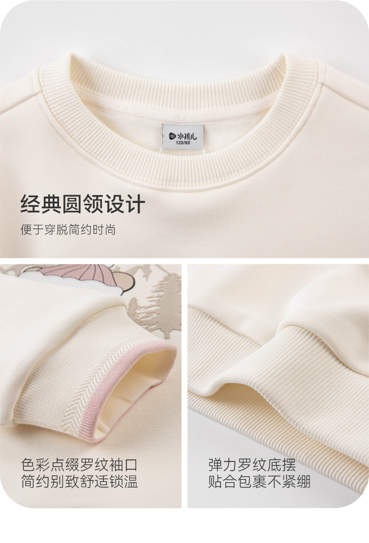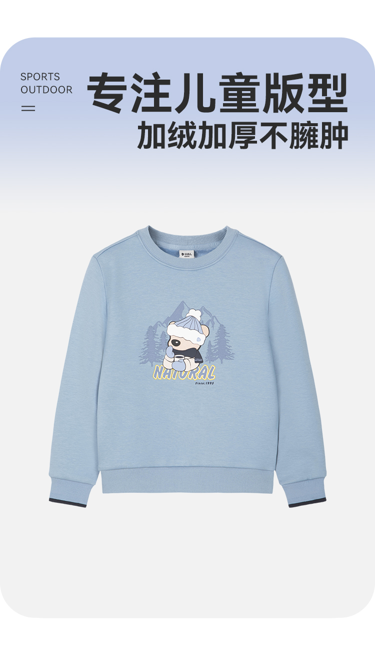 水孩儿童装秋冬新款儿童加绒卫衣男童简约套头上衣女童卡通保暖圆领衫