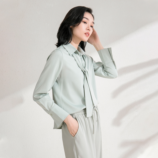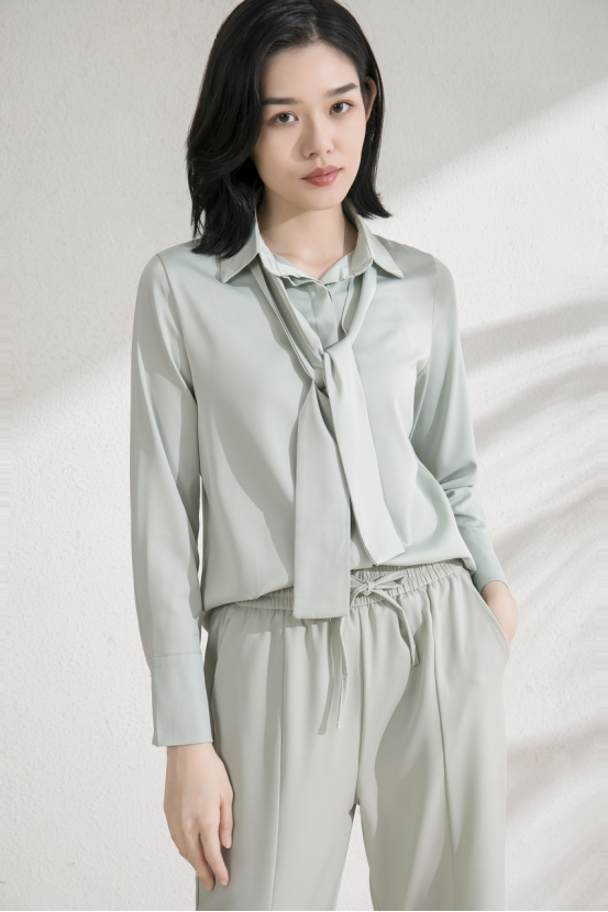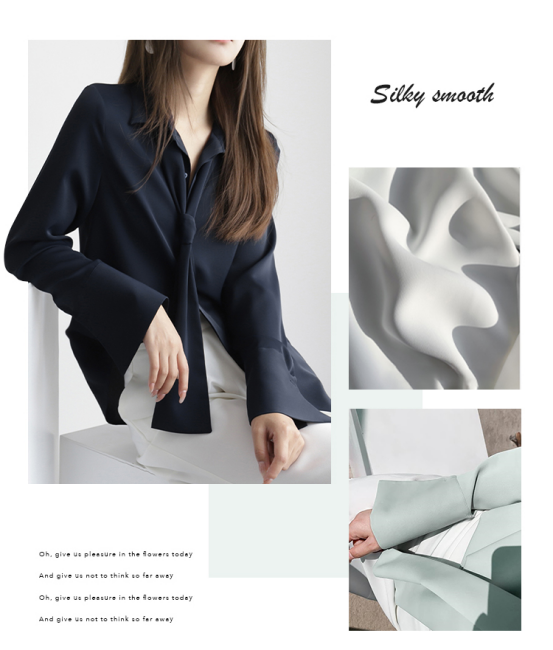 4、独特的喇叭袖型简约飘逸又适合于日常通勤,双层隐藏纽扣设计美观又时尚高级~