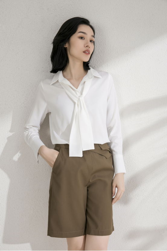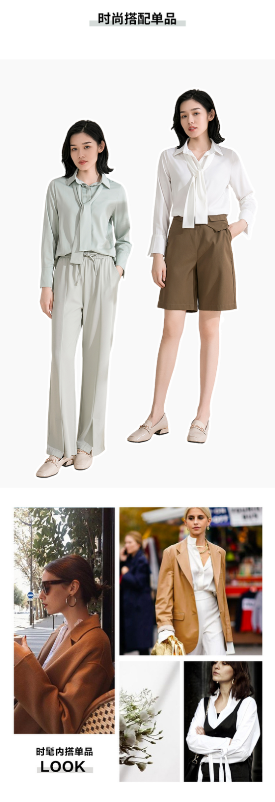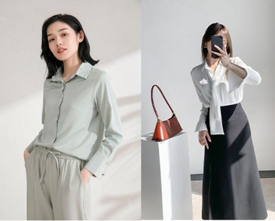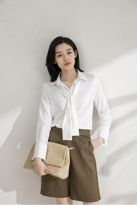 1、微松的法式衬衫,随性的“简”式优雅,简洁的剪裁,但也透露出高级感,也是着装永不过时的最终精髓~