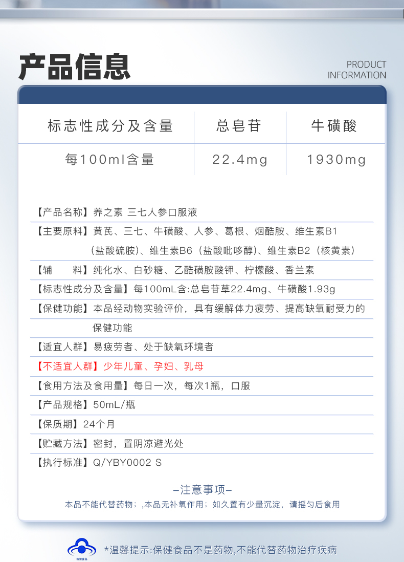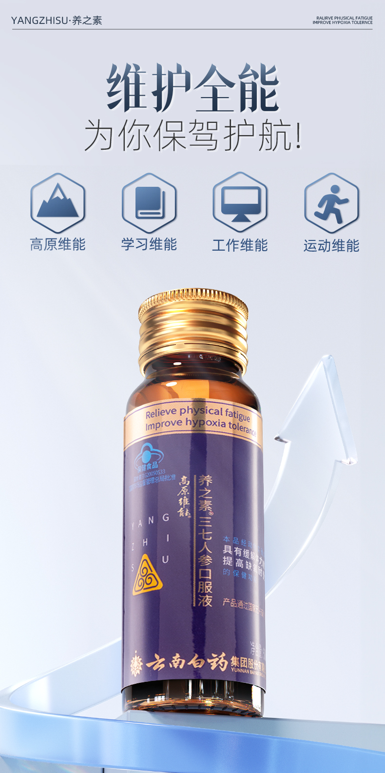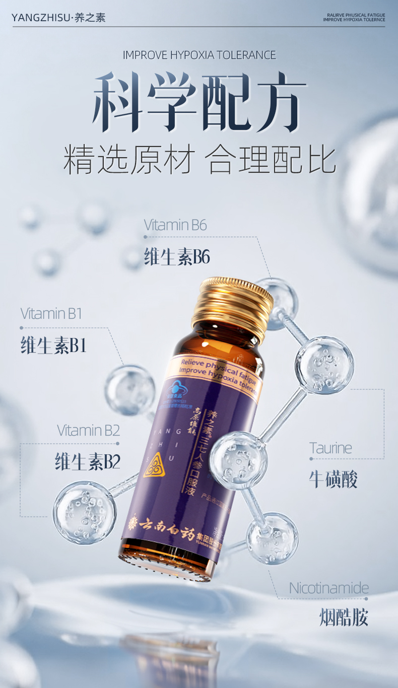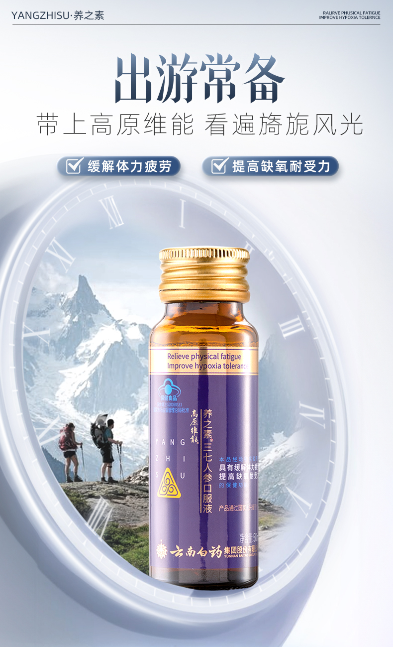 【官方正品】云南白药养之素三七人参口服液50ml高原维能口服液西藏旅游缺氧备用缓解体力疲劳含三七黄芪葛根牛磺酸