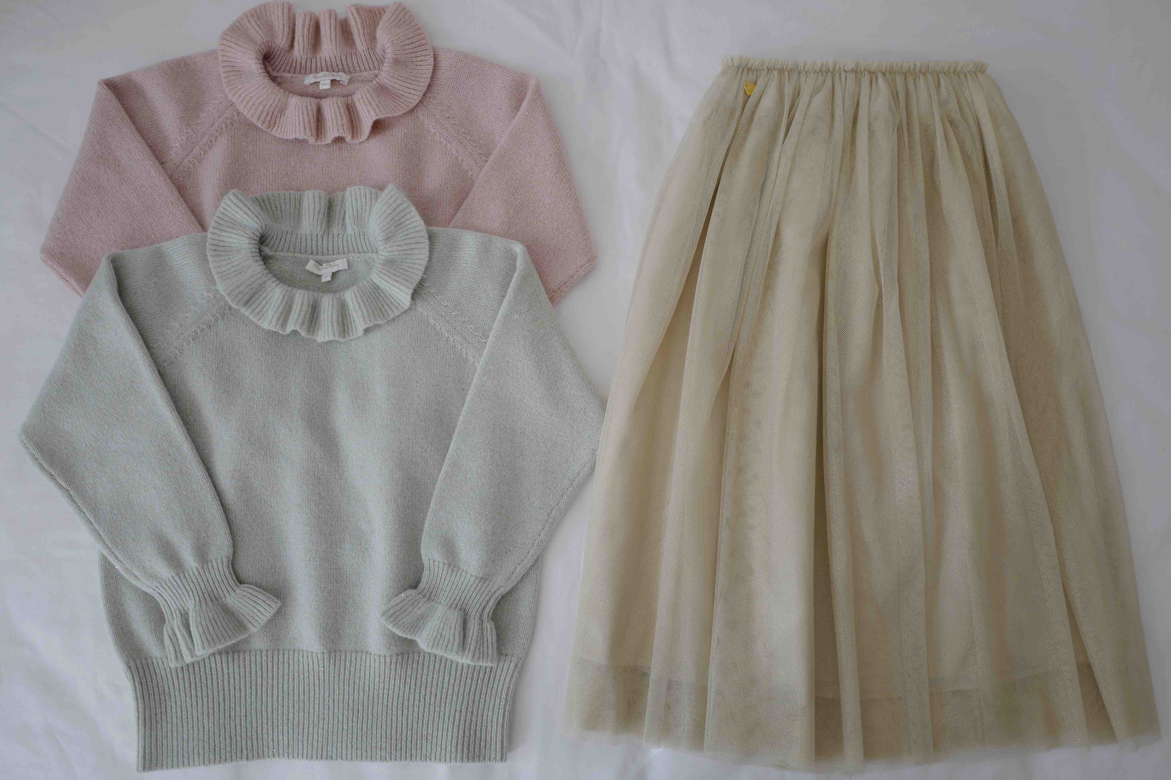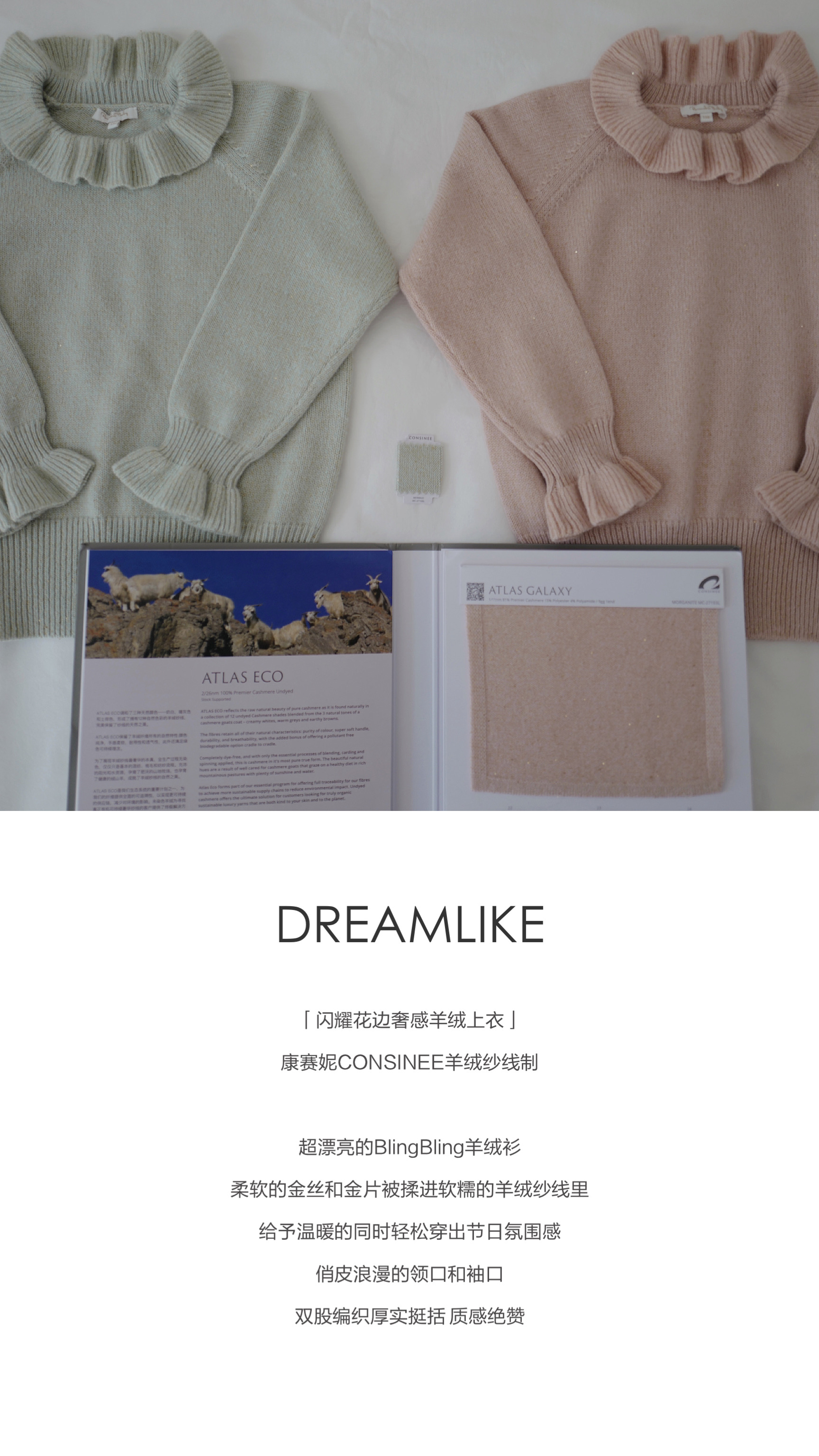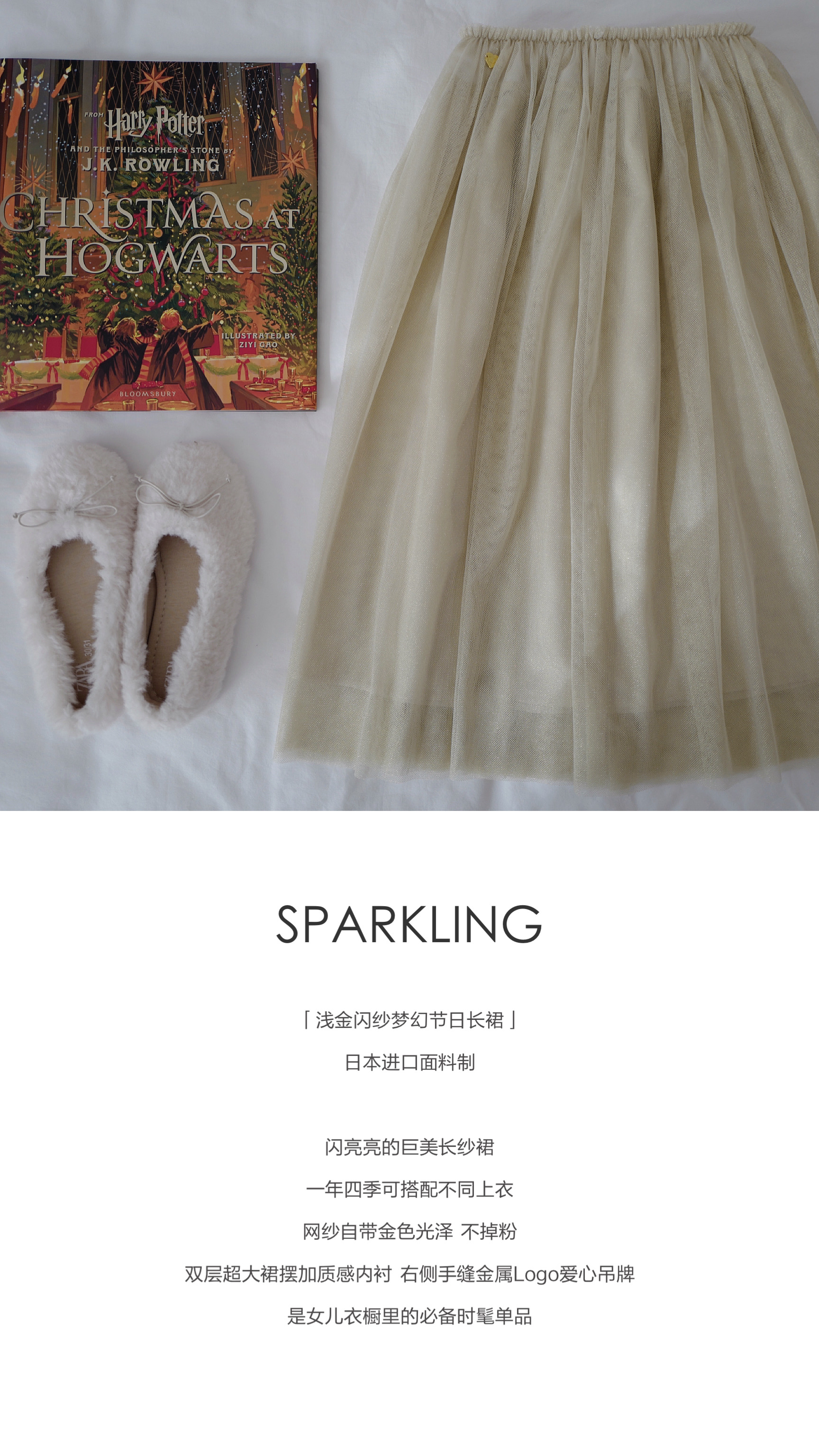 现货 / DREAMLIKE&SPARKLING | 康赛妮闪耀花边奢感羊绒上衣 浅金闪纱梦幻节日长裙