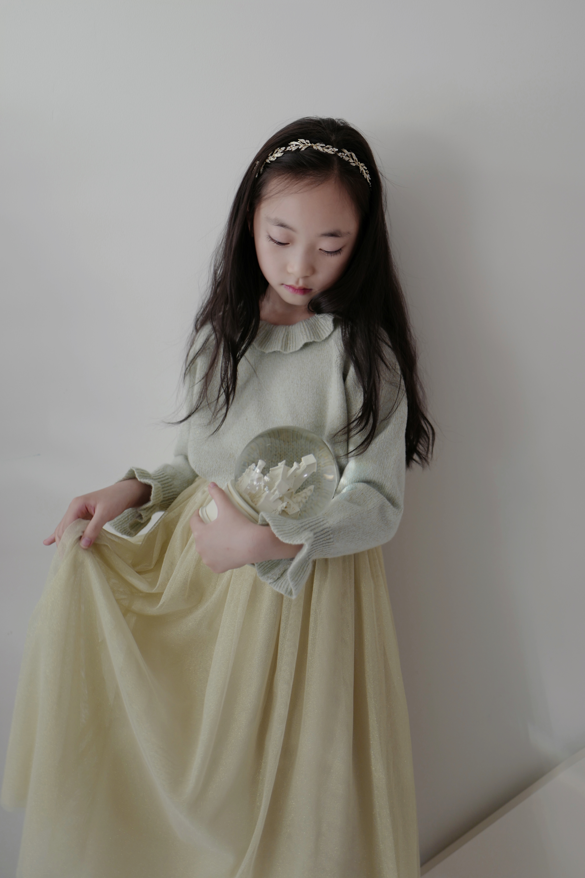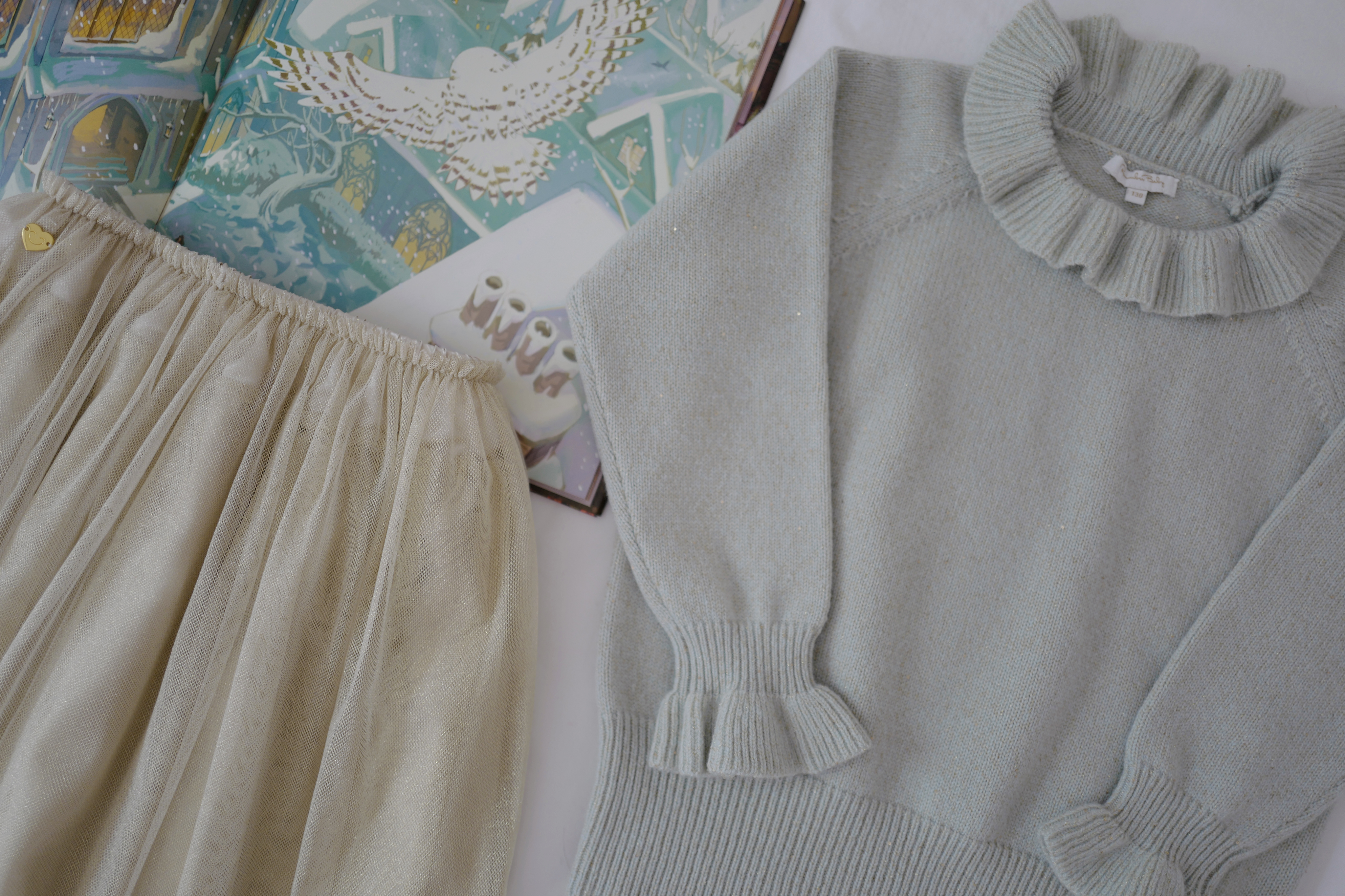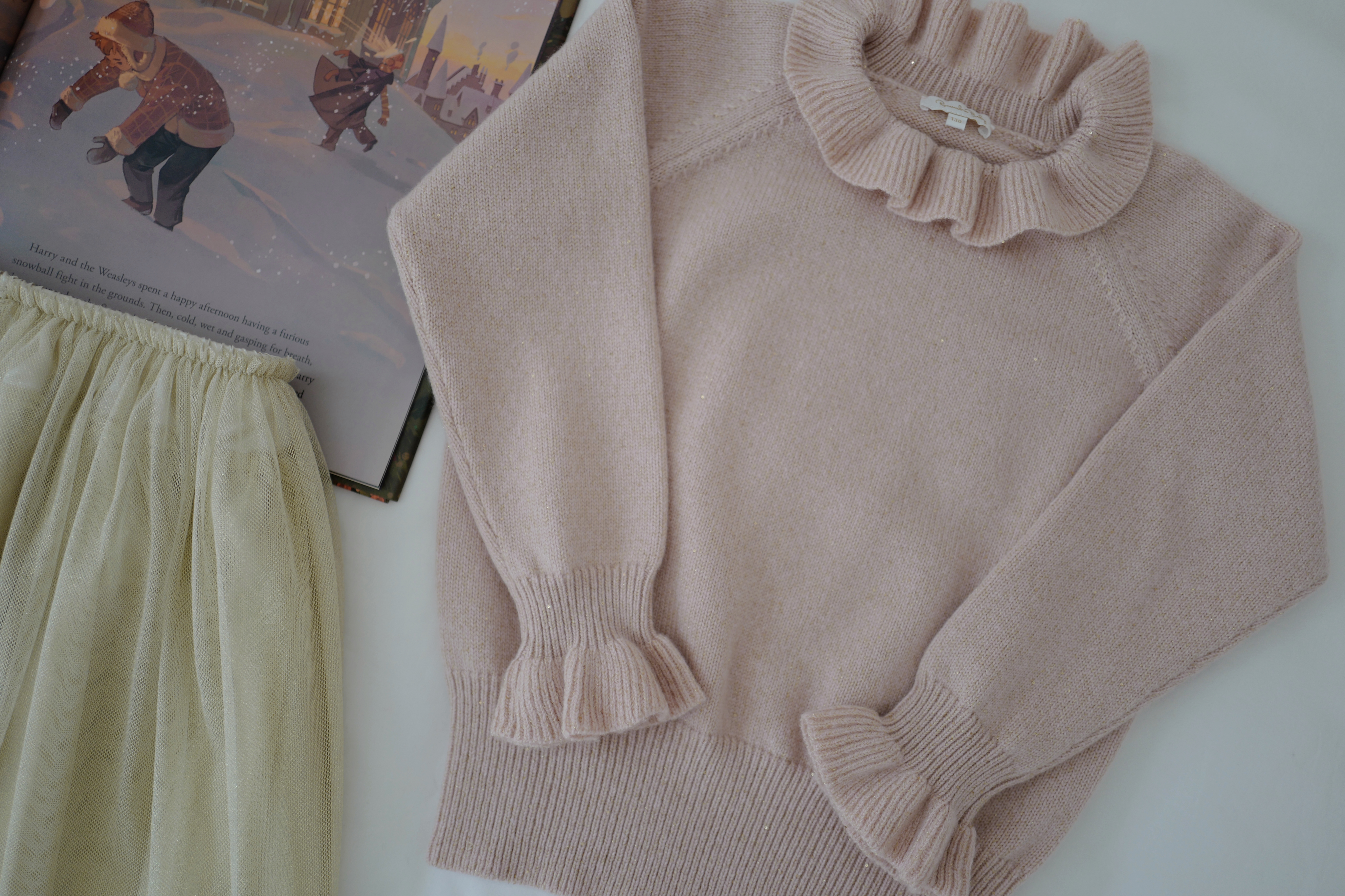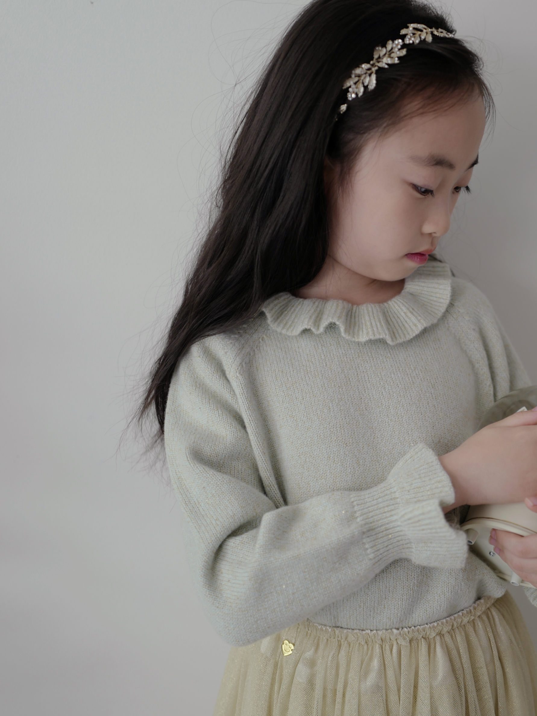 现货 / DREAMLIKE&SPARKLING | 康赛妮闪耀花边奢感羊绒上衣 浅金闪纱梦幻节日长裙
