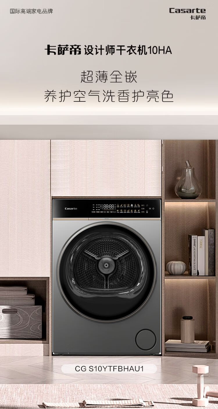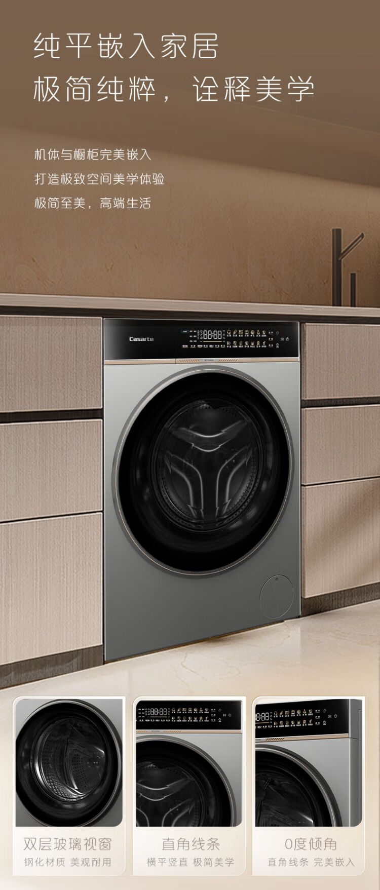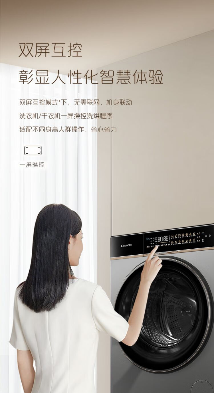 卡萨帝(Casarte)新品 致境系列10公斤洗烘套装精华洗+3D透视烘干+养护空气洗CE B10LWDBHAU1+CG S10YTFBHAU1 博卡灰10HA