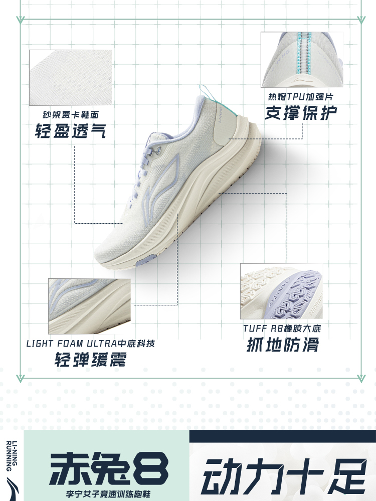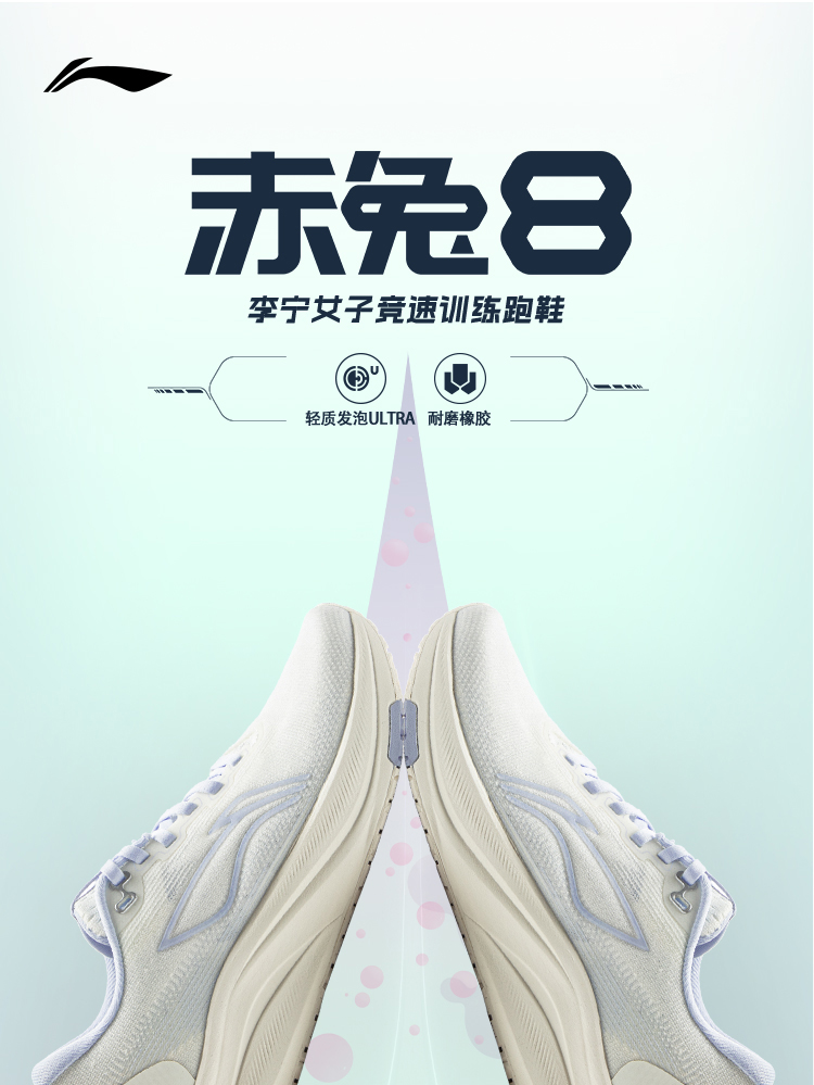 李宁 赤兔8 女款2025春季新款竞速轻量低帮训练运动跑步鞋